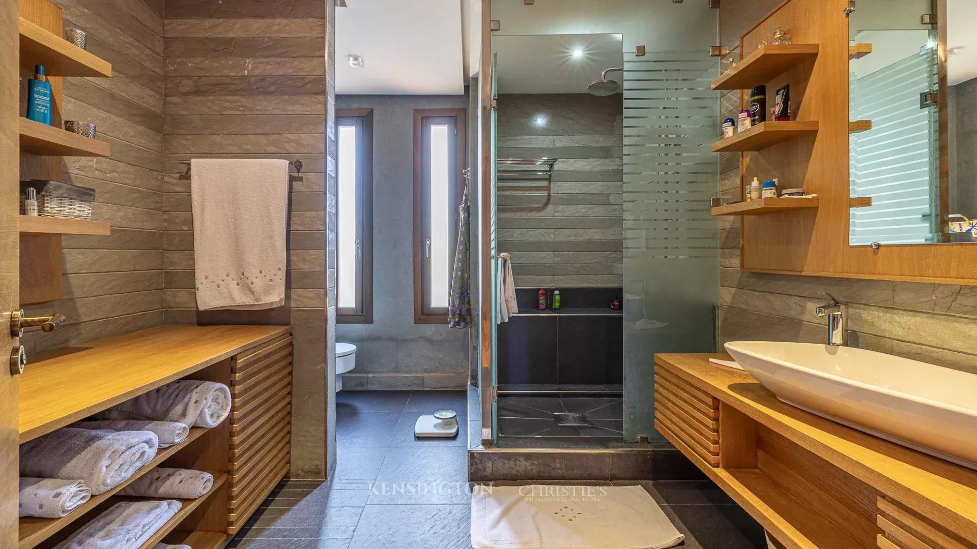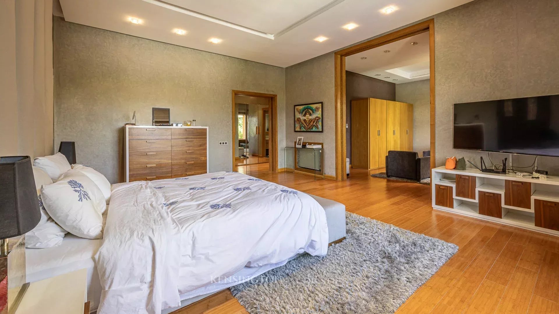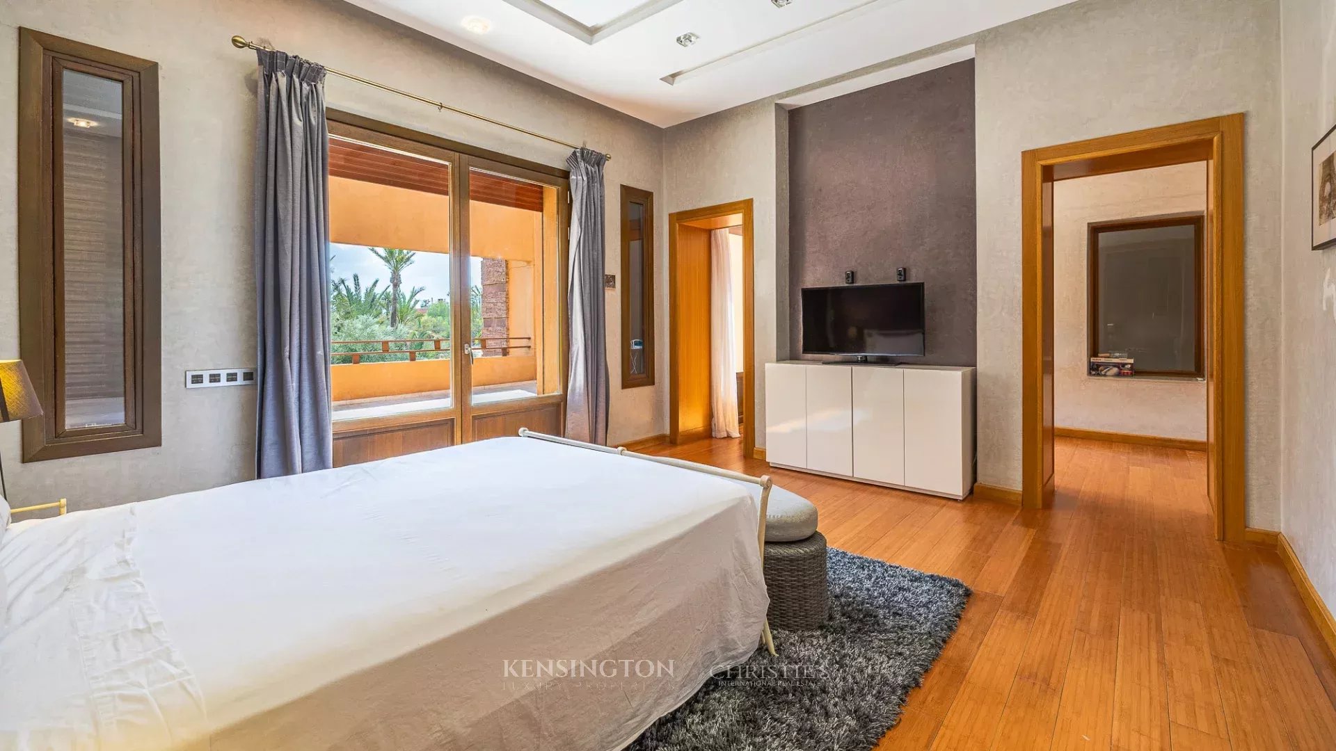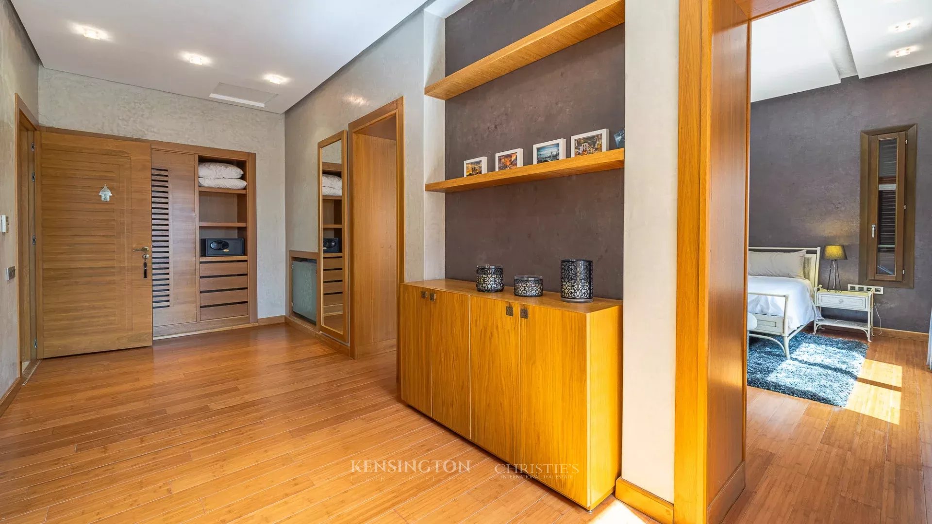 In the heart of the Palmeraie, this combined modern and traditional style villa will seduce you with its 7 en-suite bedrooms, reception room and further 4 living rooms and a cinema room.