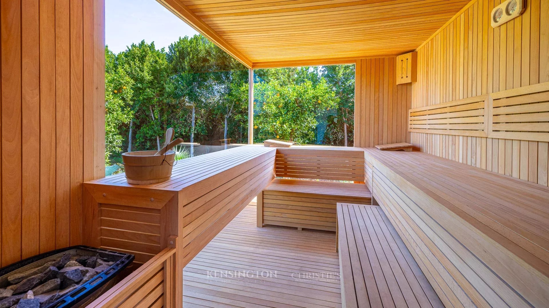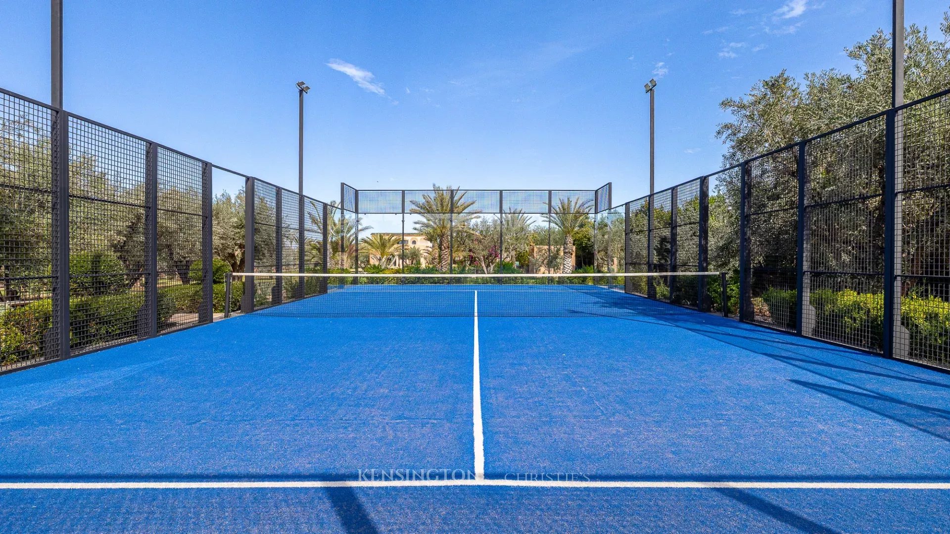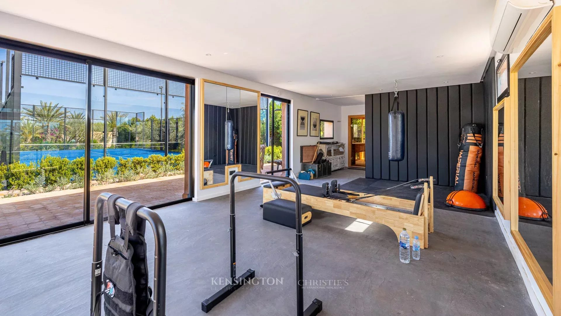 The property has a large 21-meter heated saltwater swimming pool, ideal in all seasons, with unobstructed views of the Atlas Mountains. A wellness area with a sauna and fully equipped gym enhances the experience. Leisure facilities also include a padel court, a mini grass soccer field (five-a-side), a pétanque court, a ping-pong table, and an outdoor fire pit, creating a setting perfectly suited for family vacations, wellness retreats, or private events.
