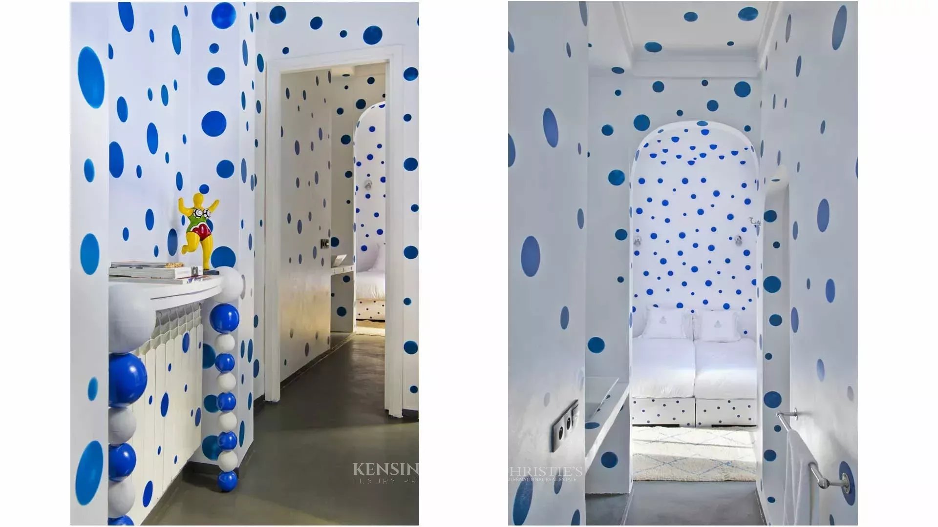 The style blends valuable antiques and original works of art with an unexpectedly eclectic contemporary touch.