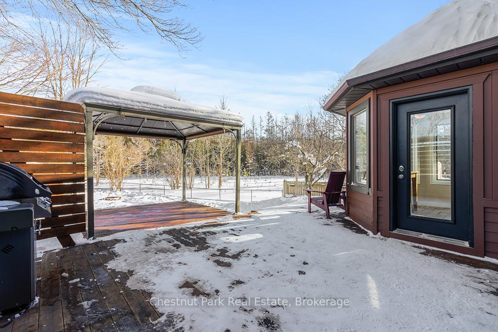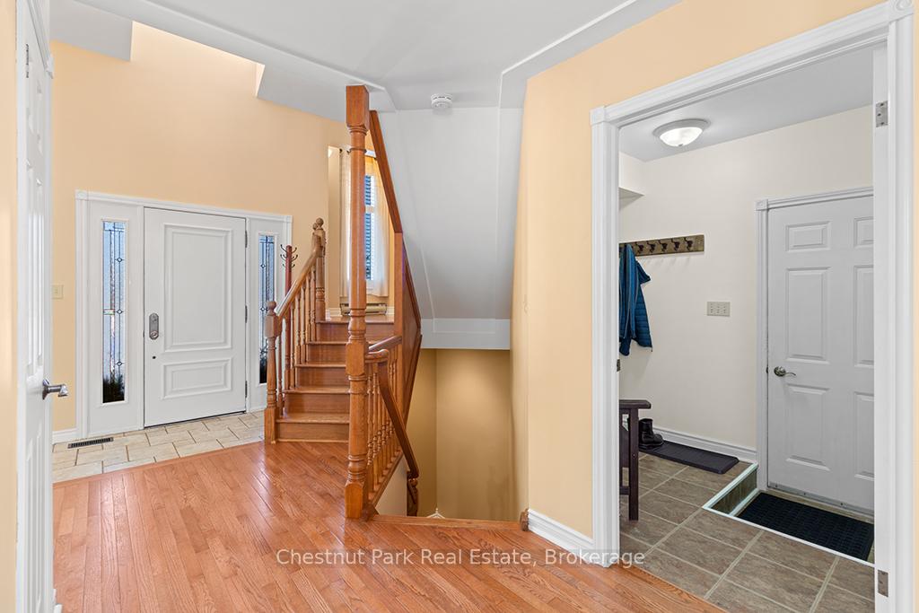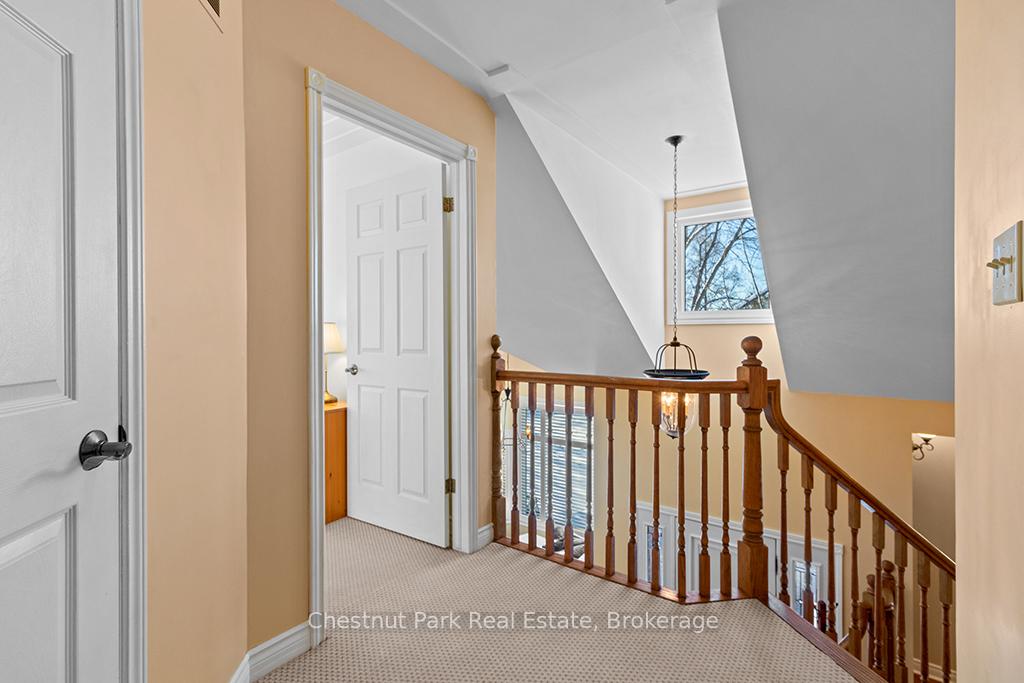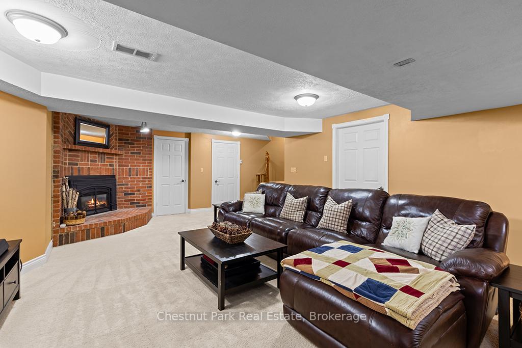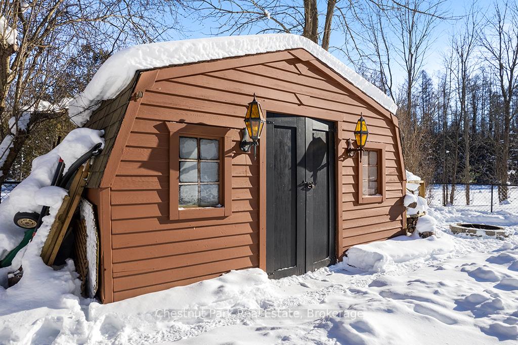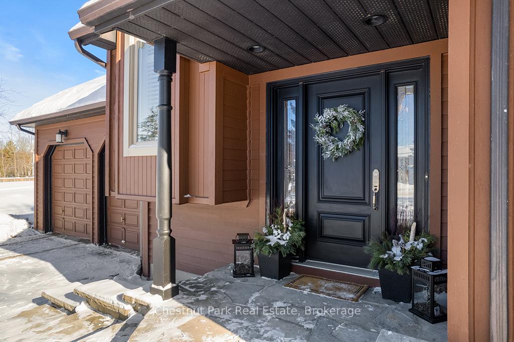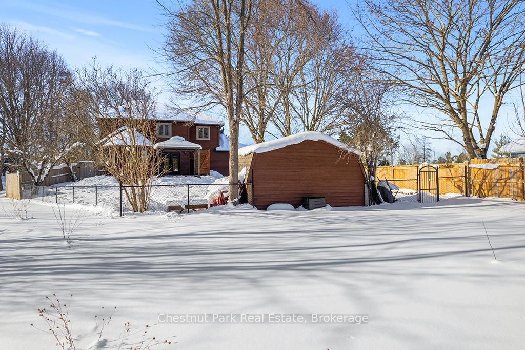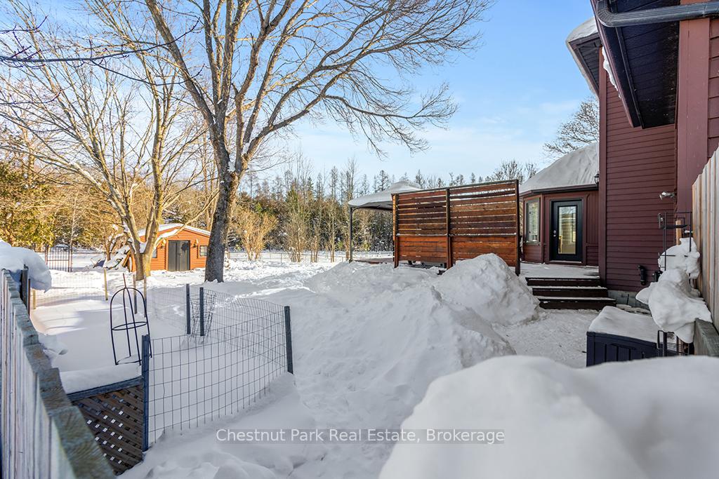 Welcome to this well-appointed and beautifully maintained two-storey home offering privacy, functionality and a serene natural setting across the road from Georgian Bay. Situated on a landscaped lot with a fully fenced rear yard and a wooded backdrop, this property provides a peaceful vibe while benefiting from modern conveniences including natural gas, a paved driveway and a double car garage. The main floor offers a bright and practical layout featuring a living room with vaulted ceilings, a separate formal dining room ideal for entertaining and a spacious kitchen with a breakfast nook and walk-out to an oversized deck with pergola; perfect for outdoor dining and relaxation. There is a separate main floor office with a walk out to the deck. Could easily double as a main floor den. A functional mudroom with direct access to the garage enhances everyday convenience. The second level includes three good-sized bedrooms, highlighted by a primary bedroom with a 4-piece ensuite bathroom. A recently updated guest bathroom completes the upper floor, providing comfort for family and guests. The partially finished lower level extends the living space with a welcoming rec room featuring a cozy gas fireplace, creating an ideal space for relaxation or entertaining. A combined bathroom and laundry room adds efficiency and functionality. Outdoors, the property continues to impress with a private fire pit area, garden shed and a backyard bordered by mature woods. An unopened road allowance located across the road offers convenient public access to the water, adding to the home's lifestyle appeal. Walk your kayak to Georgian Bay! This home is thoughtfully designed for relaxed living, entertaining and enjoying the natural surroundings. Just on the outskirts of Owen Sound, mins to Hibou Conservation area with trails and a sandy beach. A truly special property offering space, privacy and lifestyle all in one exceptional package. REFRIGERATOR, STOVE, DISHWASHER, MICROWAVE, WASHER, DRYER, ALL WINDOW COVERINGS, ALL INTERIOR & EXTERIOR LIGHT FIXTURES, BATHROOM MIRRORS AND FIXTURES, HOT WATER HEATER, CENTRAL VACUUM & ACCESSORIES, GARAGE DOOR OPENER(S) WITH REMOTE(S), SHED, PERGOLA
