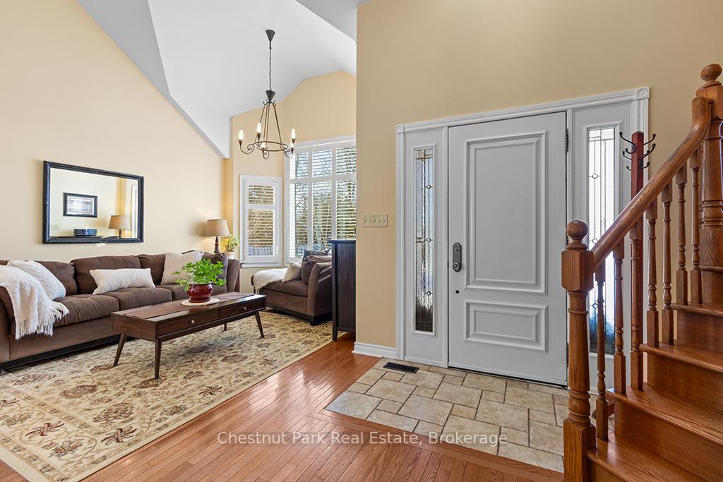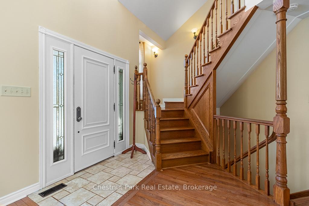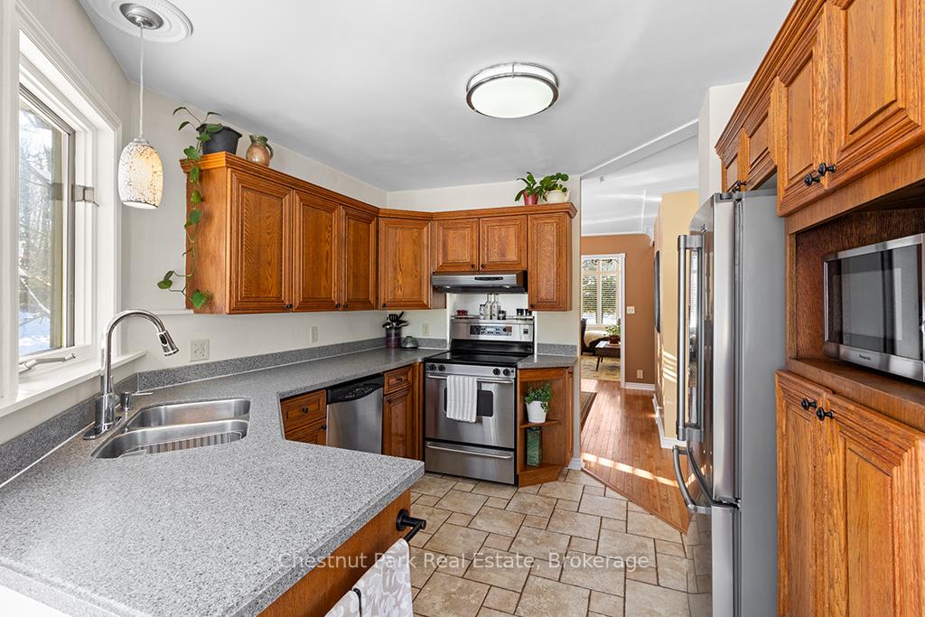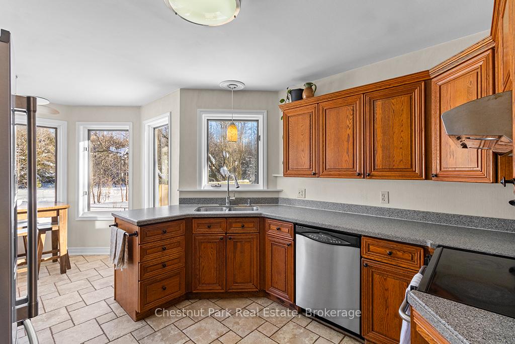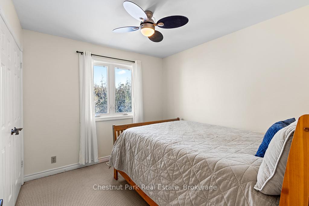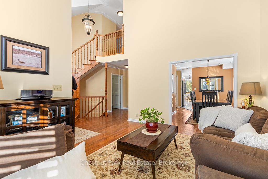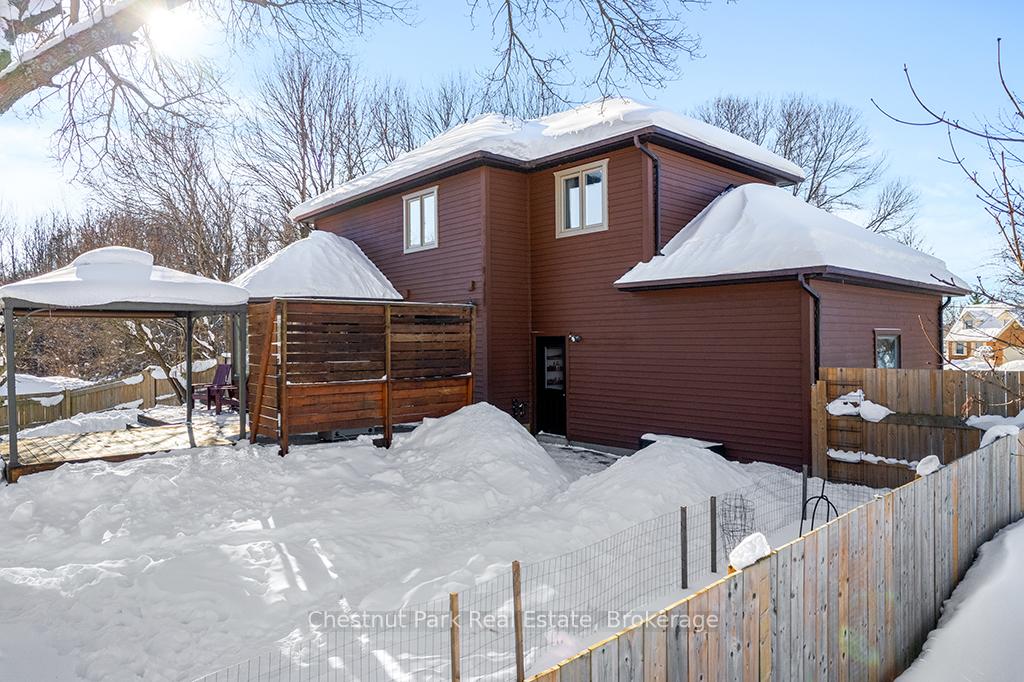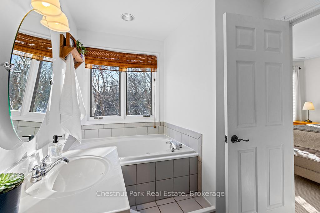 Welcome to this well-appointed and beautifully maintained two-storey home offering privacy, functionality and a serene natural setting across the road from Georgian Bay. Situated on a landscaped lot with a fully fenced rear yard and a wooded backdrop, this property provides a peaceful vibe while benefiting from modern conveniences including natural gas, a paved driveway and a double car garage. The main floor offers a bright and practical layout featuring a living room with vaulted ceilings, a separate formal dining room ideal for entertaining and a spacious kitchen with a breakfast nook and walk-out to an oversized deck with pergola; perfect for outdoor dining and relaxation. There is a separate main floor office with a walk out to the deck. Could easily double as a main floor den. A functional mudroom with direct access to the garage enhances everyday convenience. The second level includes three good-sized bedrooms, highlighted by a primary bedroom with a 4-piece ensuite bathroom. A recently updated guest bathroom completes the upper floor, providing comfort for family and guests. The partially finished lower level extends the living space with a welcoming rec room featuring a cozy gas fireplace, creating an ideal space for relaxation or entertaining. A combined bathroom and laundry room adds efficiency and functionality. Outdoors, the property continues to impress with a private fire pit area, garden shed and a backyard bordered by mature woods. An unopened road allowance located across the road offers convenient public access to the water, adding to the home's lifestyle appeal. Walk your kayak to Georgian Bay! This home is thoughtfully designed for relaxed living, entertaining and enjoying the natural surroundings. Just on the outskirts of Owen Sound, mins to Hibou Conservation area with trails and a sandy beach. A truly special property offering space, privacy and lifestyle all in one exceptional package. REFRIGERATOR, STOVE, DISHWASHER, MICROWAVE, WASHER, DRYER, ALL WINDOW COVERINGS, ALL INTERIOR & EXTERIOR LIGHT FIXTURES, BATHROOM MIRRORS AND FIXTURES, HOT WATER HEATER, CENTRAL VACUUM & ACCESSORIES, GARAGE DOOR OPENER(S) WITH REMOTE(S), SHED, PERGOLA