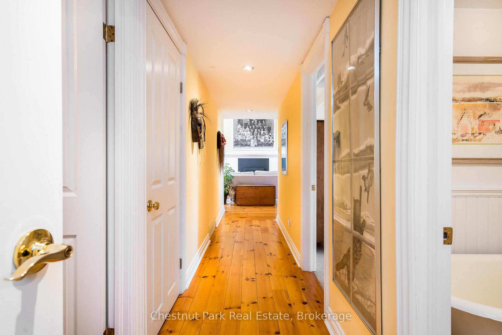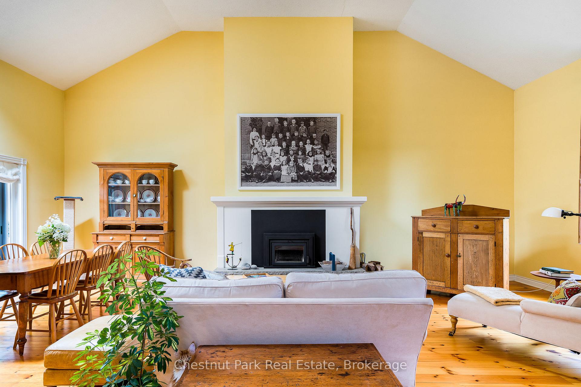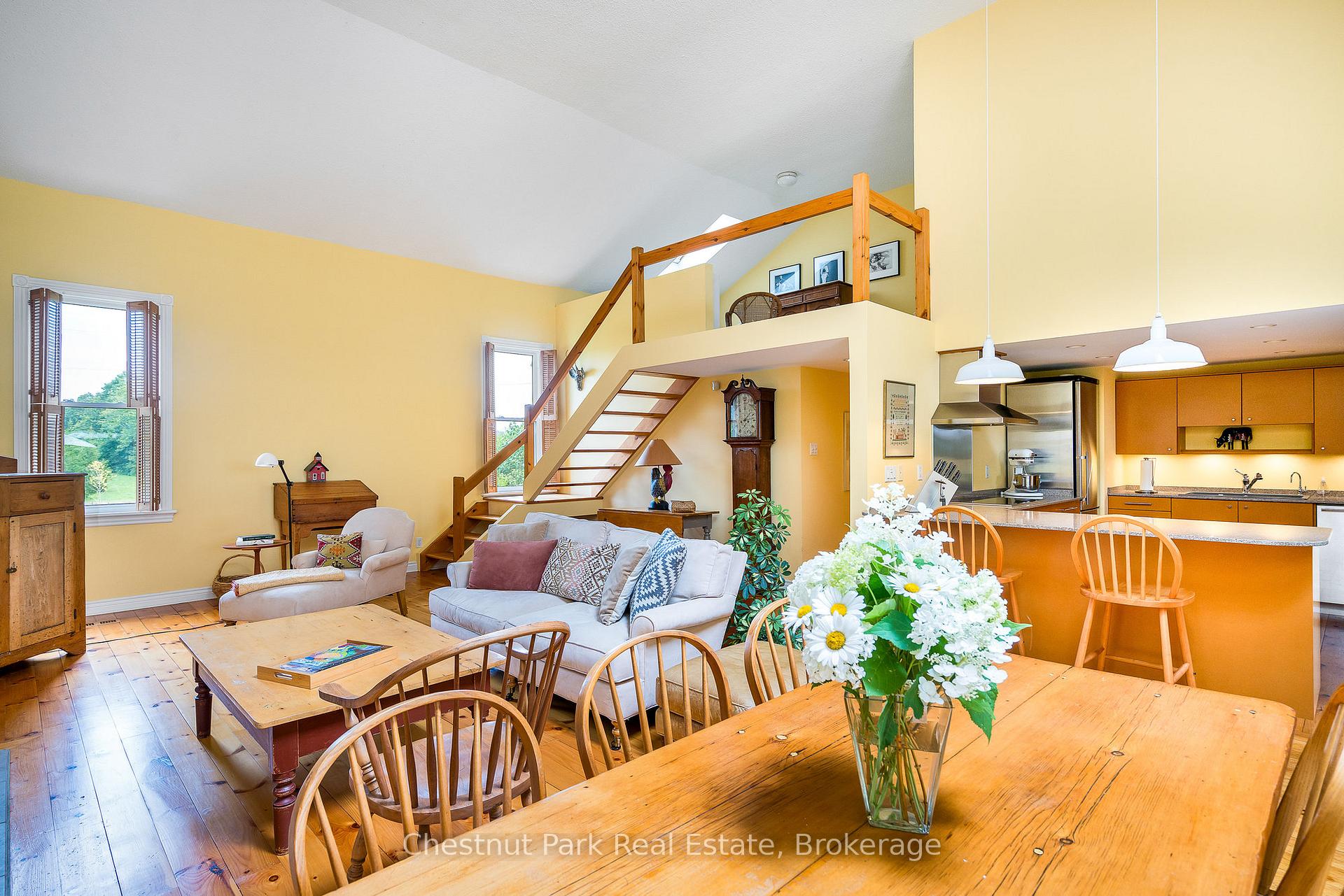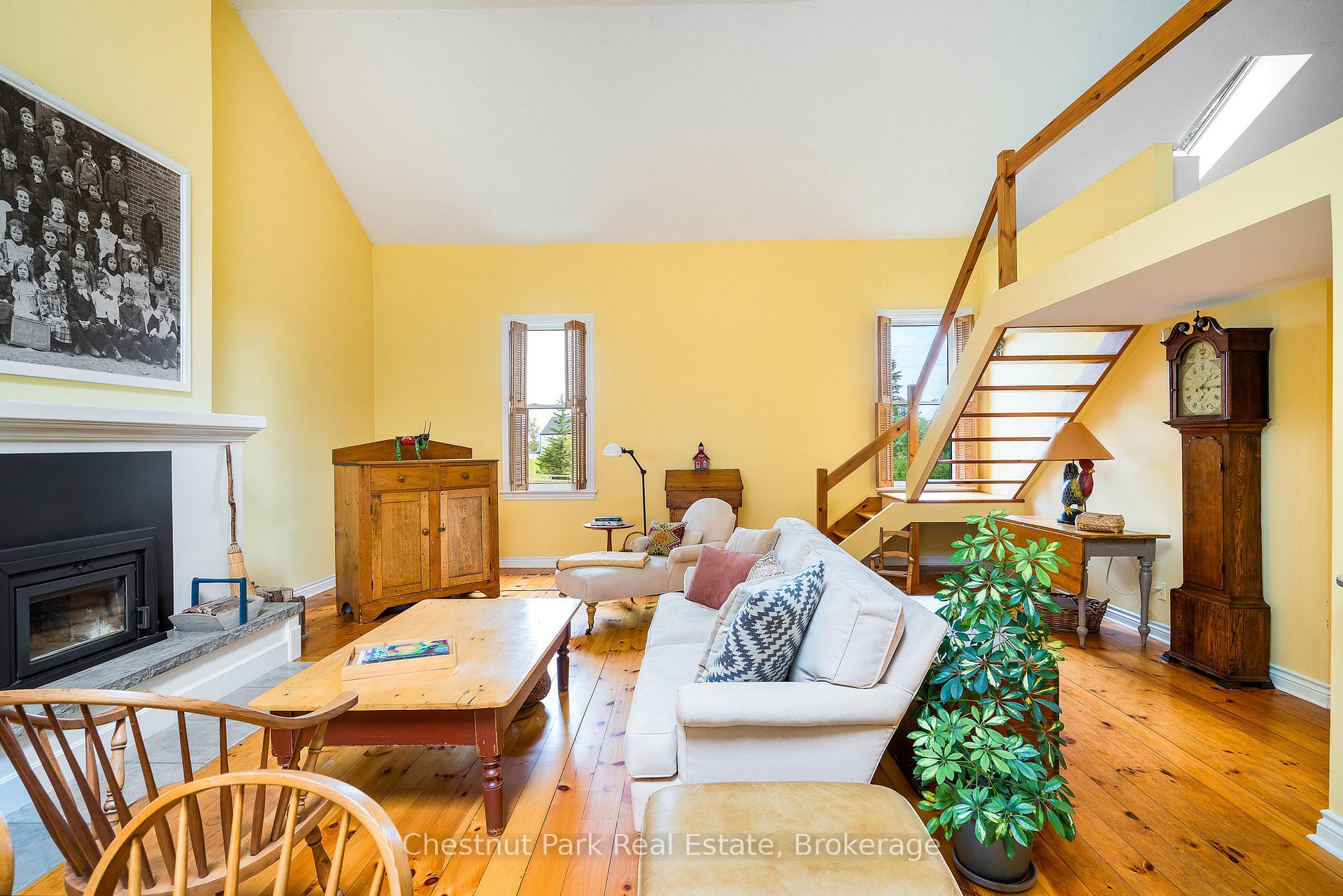 This exceptional property full of history, love, and calmness is a true paradise on Scotch Mountain. The Sellers purchase this beautiful schoolhouse property back in 1980 and moved full time to it in 2005. This perfectly maintained home has a history back to 1900 when the first class opened and the Owner discovered that her Grandmother, was actually a student in that very classroom along with other family members. So many wonderful memories have been created over the years. The extremely well-kept grounds offer gorgeous, ever changing perennial gardens, terrific vegetable garden beds, fabulous mature trees, a plethora of song birds and plenty of sunshine. The relaxed country life has provided the Owners, with privacy, serenity and pure joy for many years. The Schoolhouse itself has so much character and a wonderful flow. Filled with light, high ceilings, an open concept, with a well-appointed functional kitchen with stainless appliances and breakfast counter is right off the expansive dining and living room with the high ceilings on the main floor. A lovely bedroom, full bathroom, large entrance foyer, butler's pantry, plenty of storage and closet space complete the main floor. The living area displays a large fireplace to snuggle up in front of. Off the dining area is a very private deck where you can relax and take in all the beauty so perfectly surrounding the home. Upstairs is a loft overlooking the living/dining area, the private primary bedroom, ensuite bathroom plus a 3rd bedroom. The lower level is full height, dry, bright and has exceptional stone walls all around, plus an abundance of storage space. It is a palette waiting to be painted. A cozy family room with the fireplace to enjoy, perhaps an additional bedroom, office? 15 minutes to downtown, 20 min. to Owen Sound, close to ski hills, Georgian Bay, shopping, dining and a great variety of entertainment at the Meaford Hall. This amazing property could be your future oasis. All Light Fixtures, Window Coverings, Refrigerator, Stove, Dishwasher, Washer, Dryer