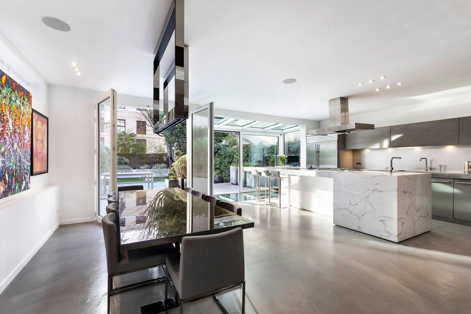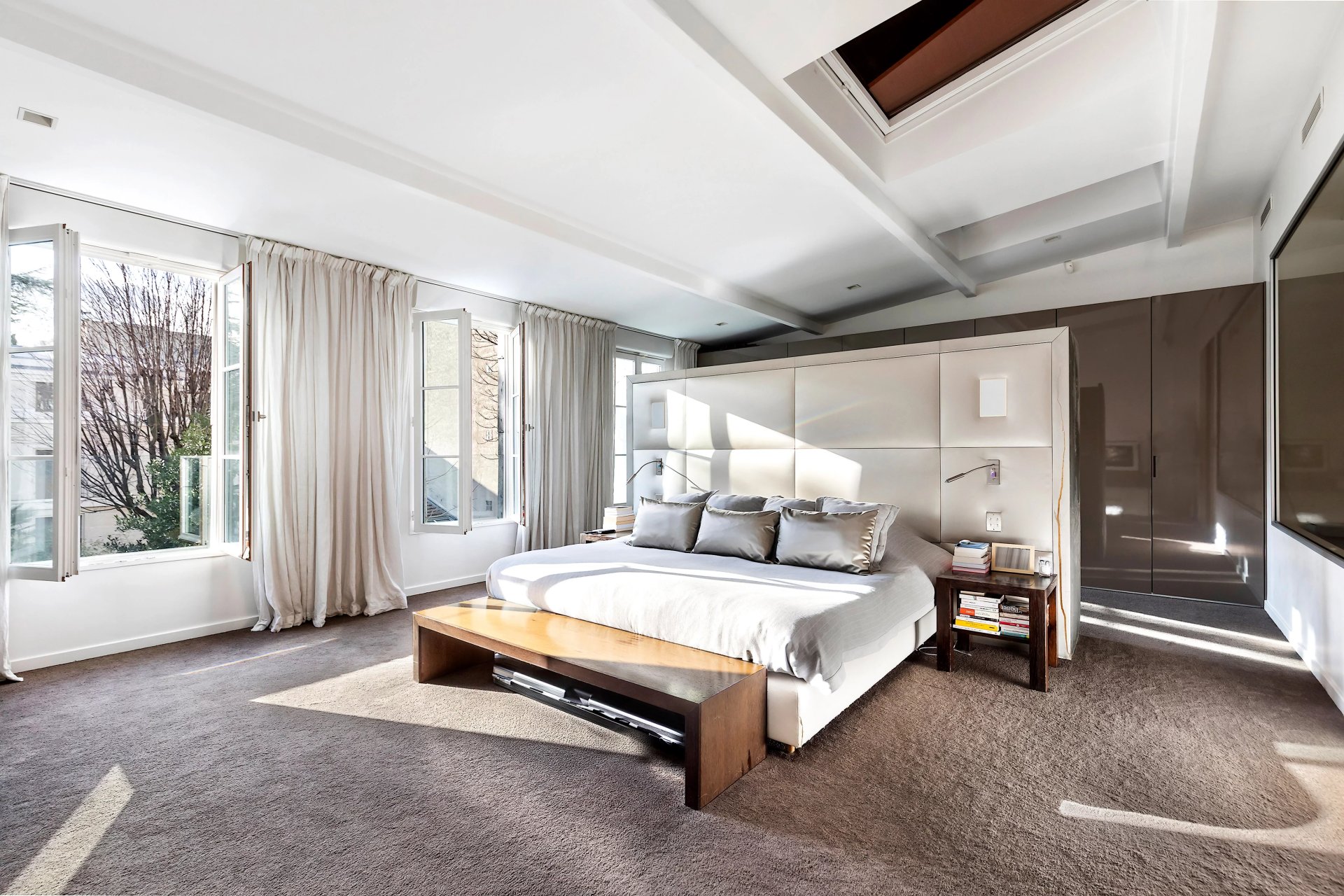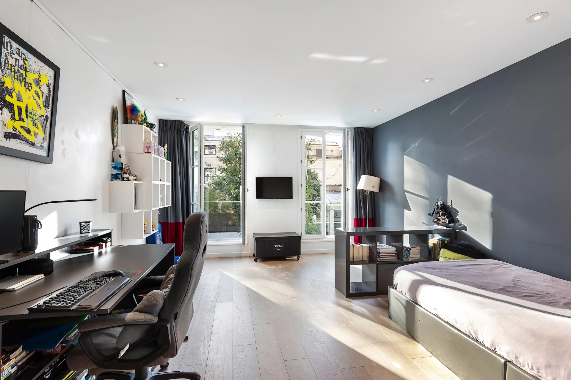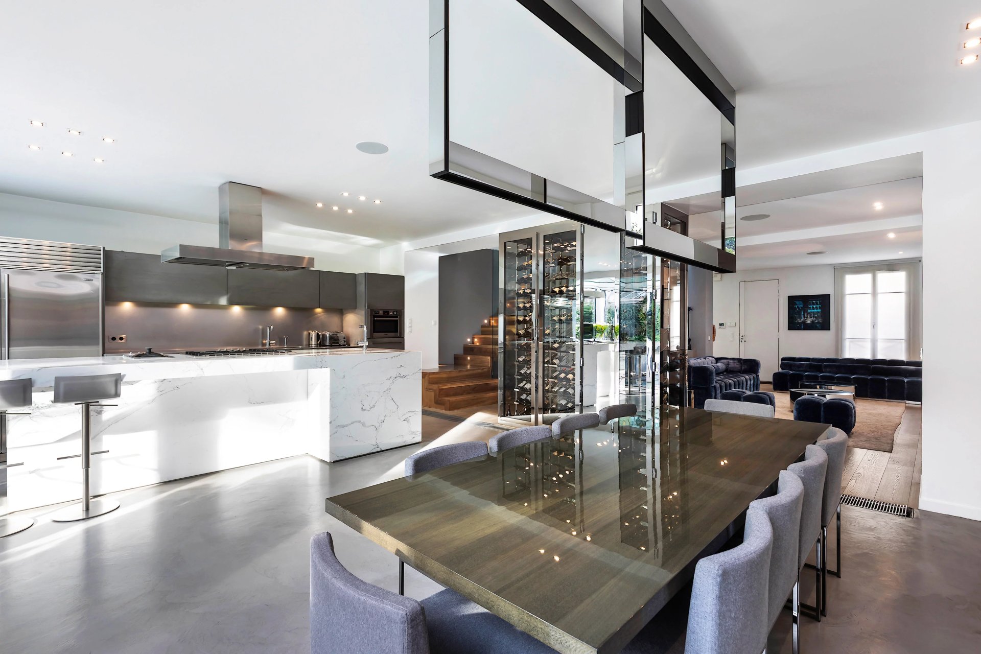 In mint condition, bathed in sunshine and benefiting from a tasteful contemporary decoration, it includes a spacious living/reception room, and a generously proportioned open-plan kitchen and dining room opening onto a terrace, the garden and the swimming pool. Upstairs are three bedrooms (two with a bathroom/wc, one with a shower room/wc). The top floor comprises a sumptuous master suite featuring high ceilings and with a study, a bathroom/wc and a dressing room.