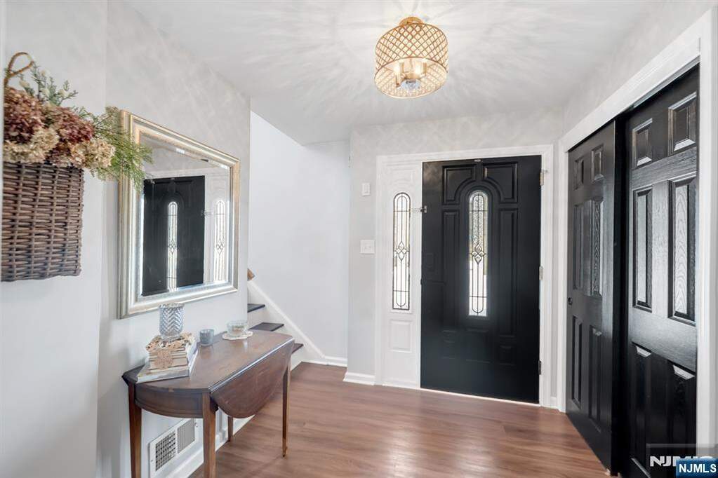 Expanded Sugar Maple split set on an incredible half-acre property, extremely rare to find a lot of this size in New Milford. Offering space, functionality, and an ideal layout for everyday living and entertaining. Entry foyer opens to an oversized family room with full bath and fourth bedroom, plus direct access to the backyard, creating a flexible space perfect for gatherings, extended living, or guest quarters. The main living level features an open, flowing layout with a large sun-filled living room, true formal dining room, and a stunning expanded eat-in kitchen with Black Star quartz countertops, stainless steel appliances, and access to the deck overlooking the expansive property. Upper level offers a spacious primary bedroom with a wall of closets, two additional bedrooms, and a full main bath. Large basement with laundry, rec room, and excellent storage provides additional living and utility space. Hardwood floors, 3-zone heat, and an oversized two-car garage complete this move-in ready home. Exceptional property size and layout make this a rare opportunity. Must see.