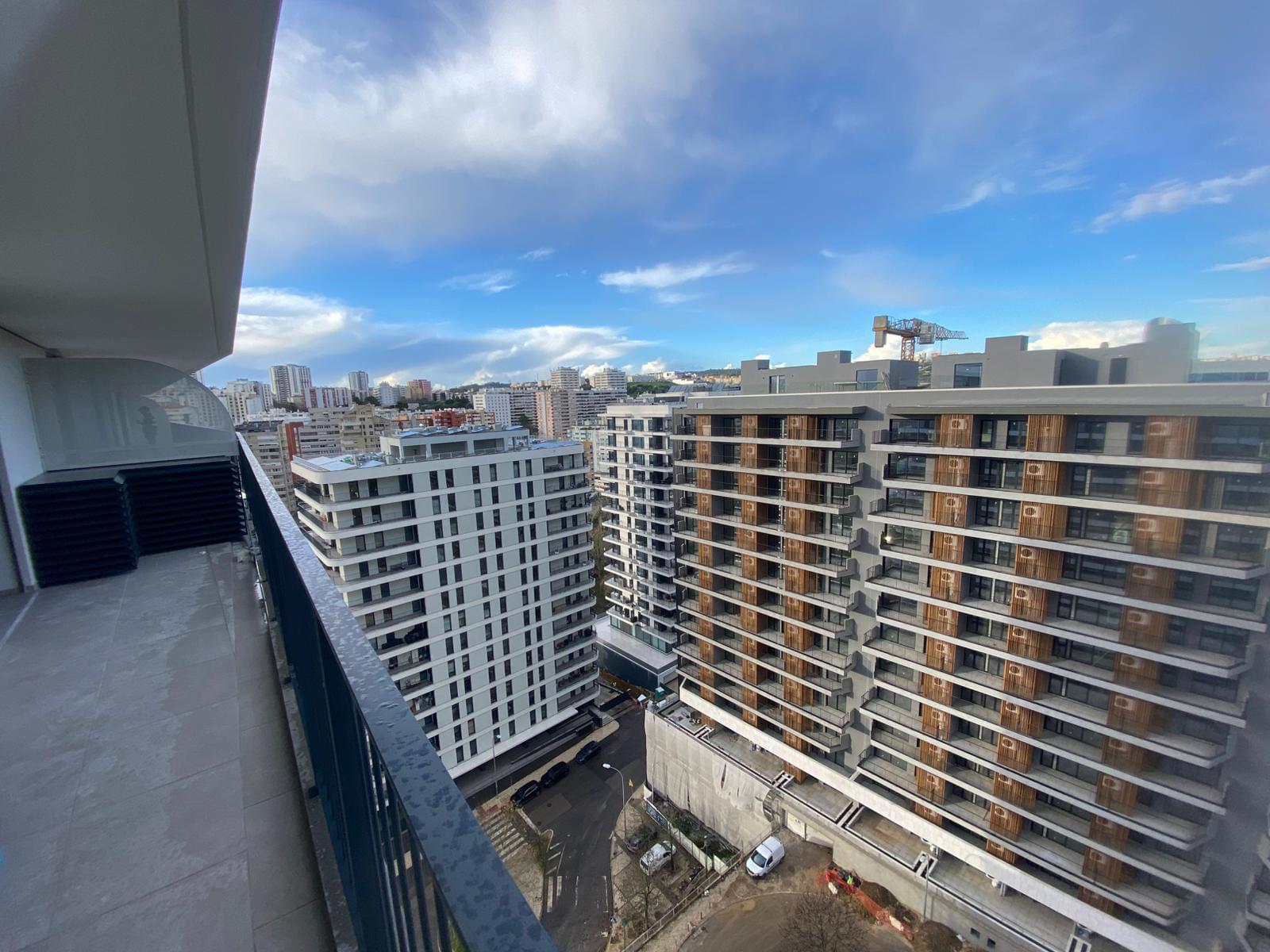 Two-bedroom apartment (T2), located on the 13th floor, with 84 m² of interior space and a 16 m² balcony, north-facing, set within the Vista MIREAR, Block A, in Miraflores.