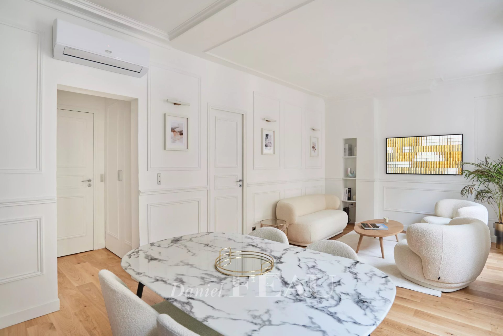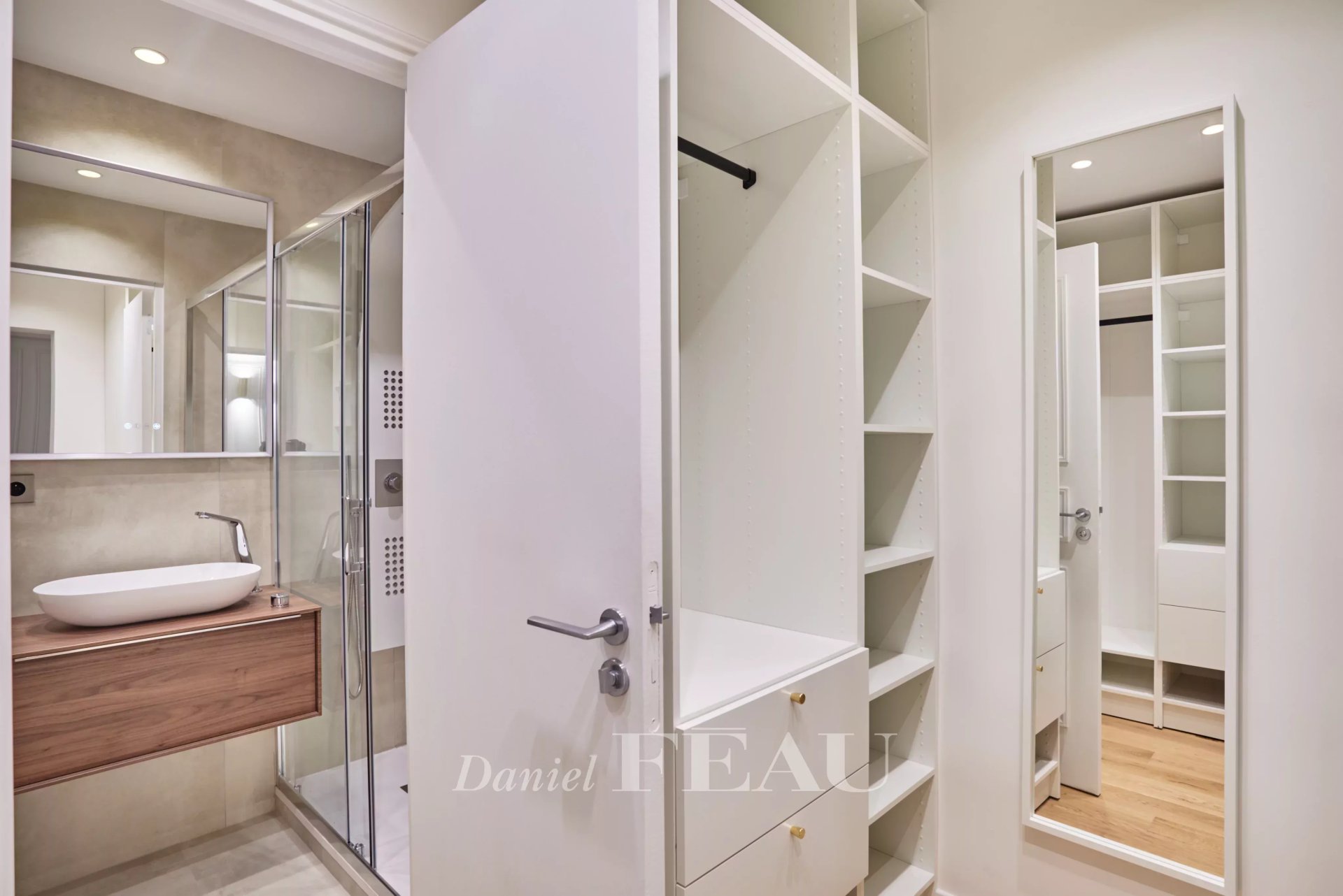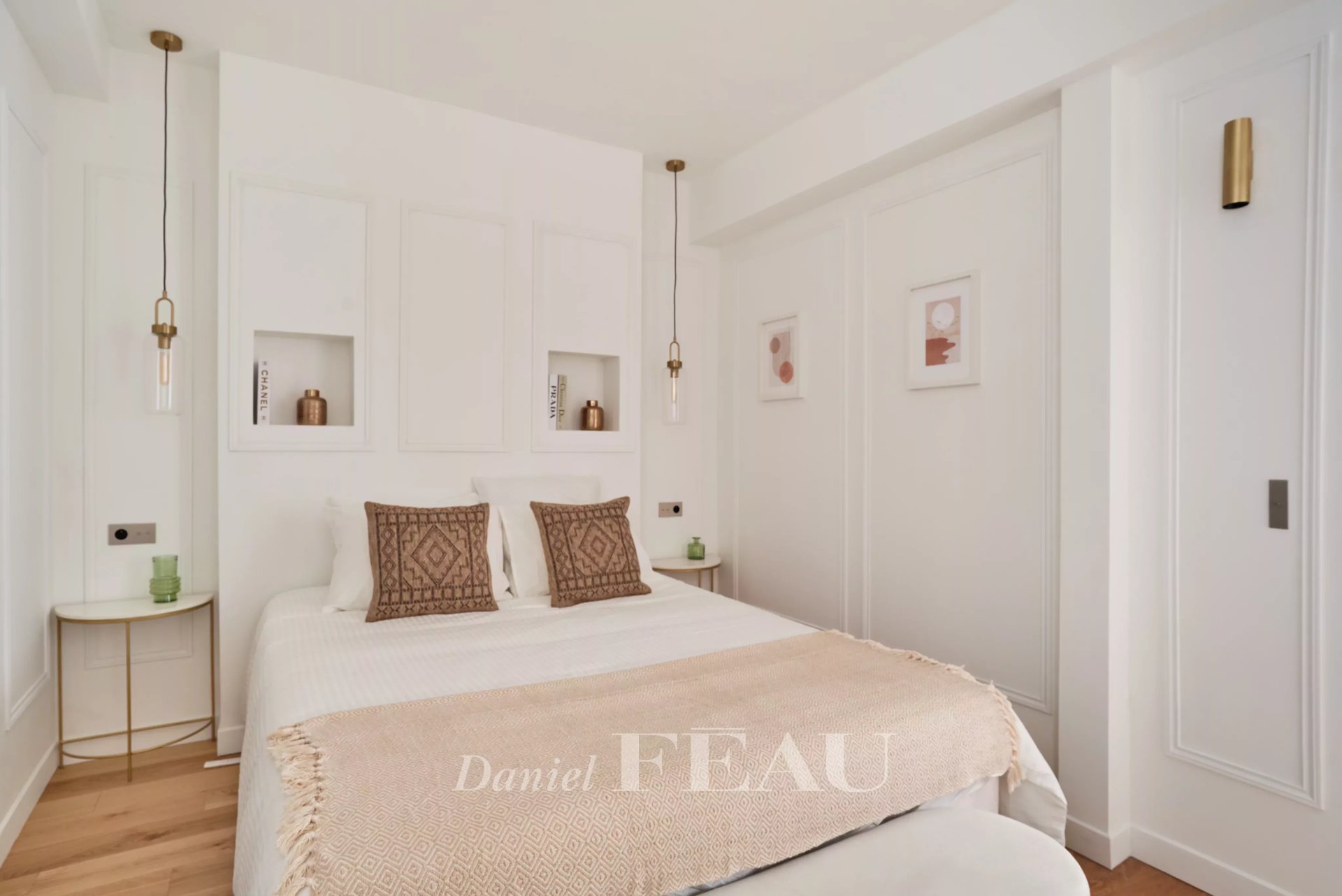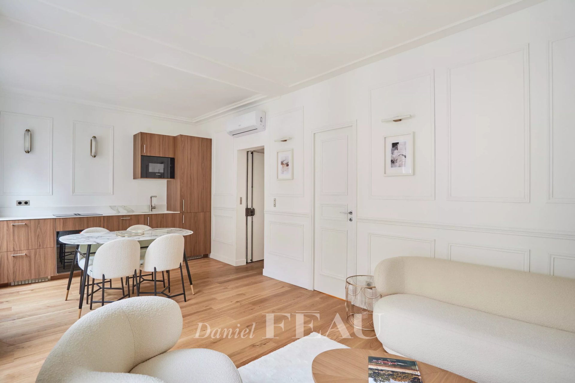 This bright and peaceful apartment is on the second floor of a character 19th century building with a lift located in a peaceful street between Odéon and Pont-Neuf. Renovated and furnished, it comprises a bright living room with an equipped kitchen, a bedroom with a study area overlooking a courtyard, a walk-in wardrobe, a shower room/wc, a utility area and a guest wc.