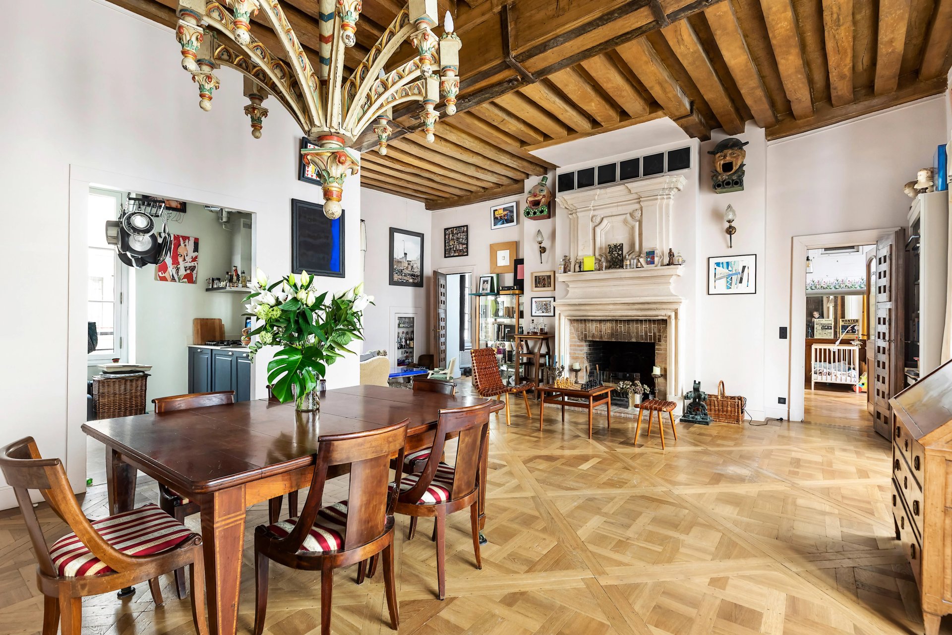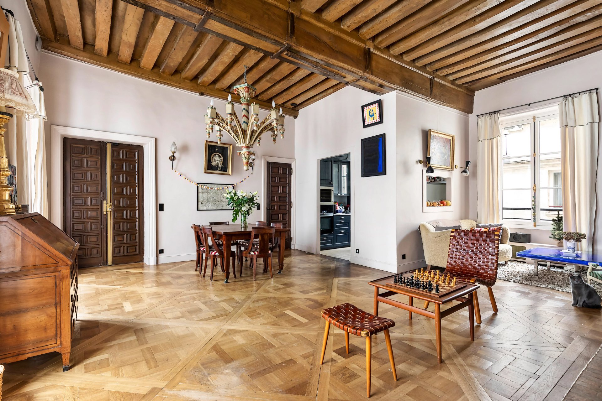 Rue Jacob, a stone's throw from iconic Place de Fürstenberg. This ensemble comprising two apartments on the 1st and 2nd floors of a fine 19th century building offers a total of 159 sqm of living space as defined by the Carrez Law.