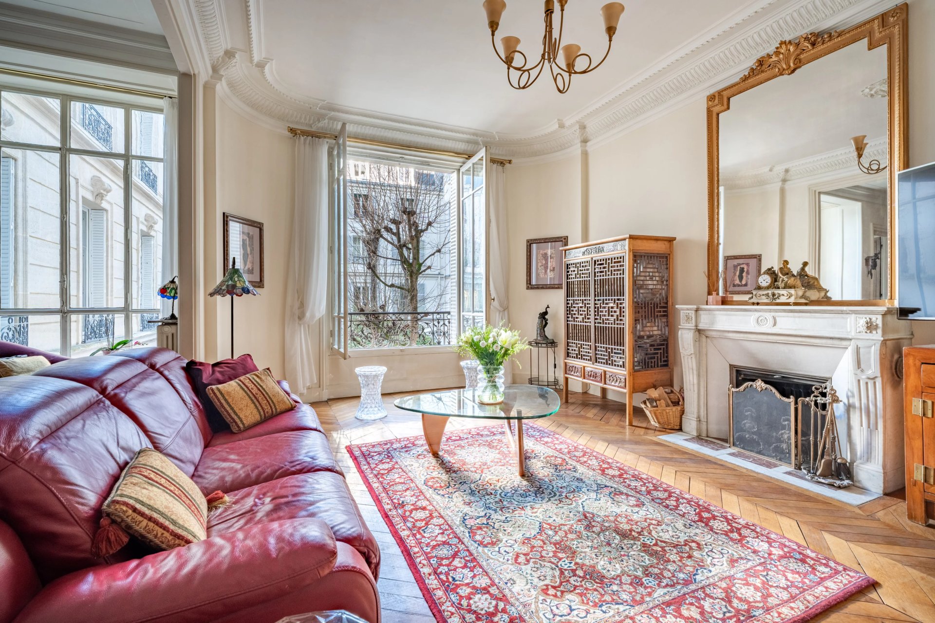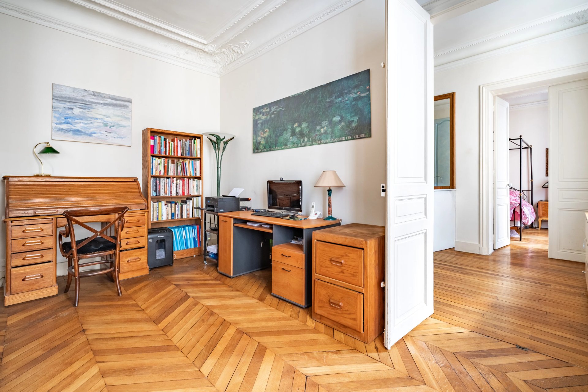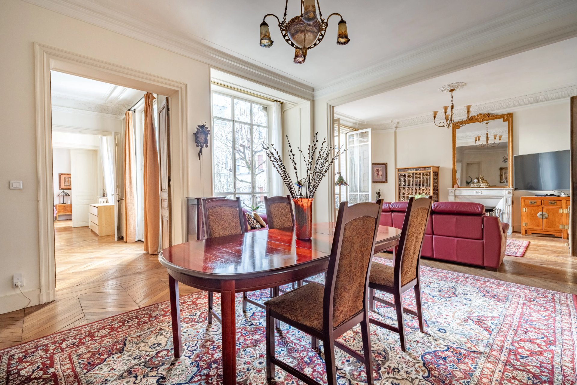 Sole Agent. Raspail/Luxembourg neighbourhood. This bright and peaceful 147 sqm apartment overlooking a leafy paved courtyard is on the 1st floor of a very well-maintained late 19th century co-ownership with a caretaker and a lift. Featuring parquet flooring, fireplaces, and 3.20 metre high ceilings with mouldings, it includes a spacious double living/reception room, a generously proportioned kitchen with dining facilities, three bedrooms, a bathroom/wc, and a shower room/wc.