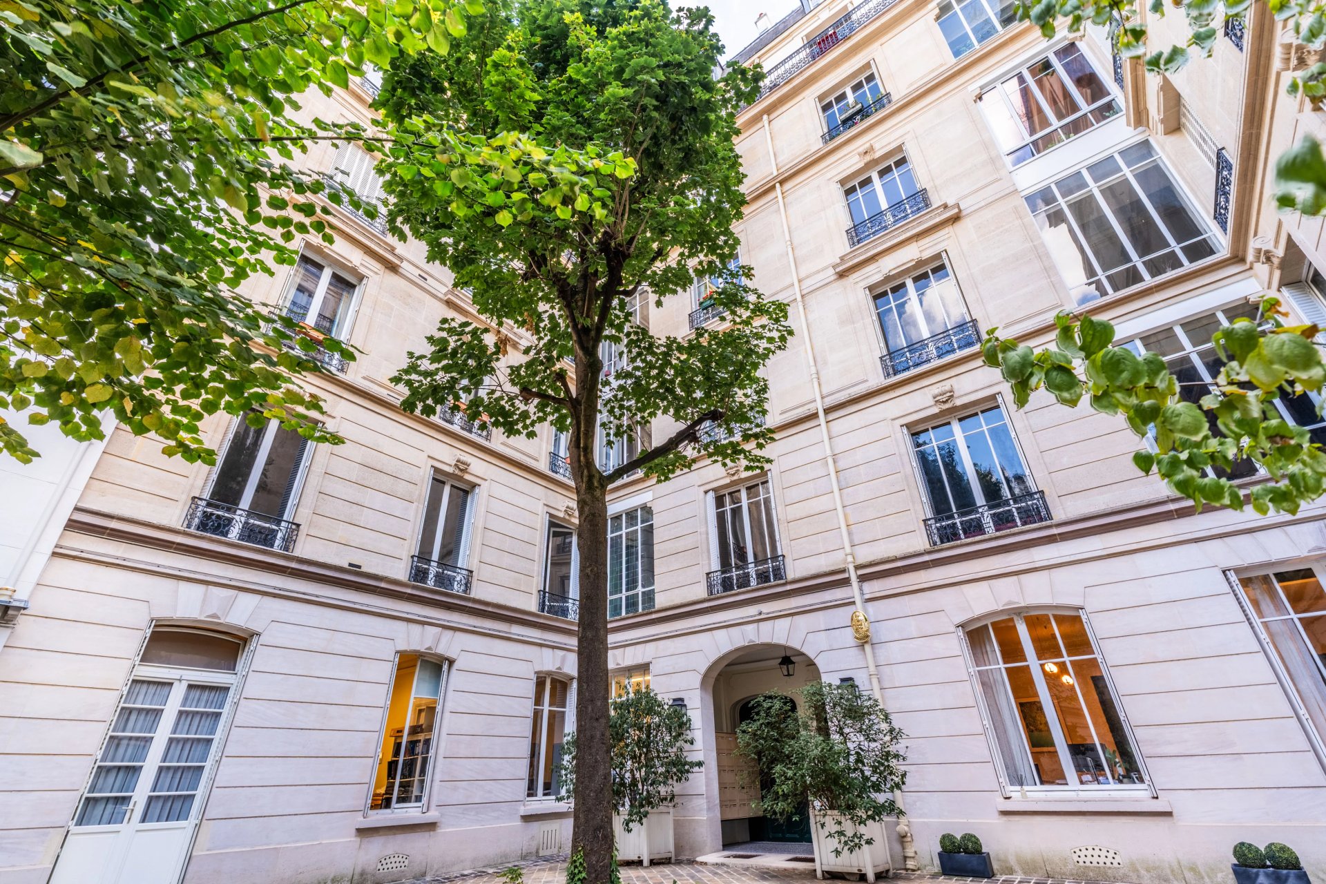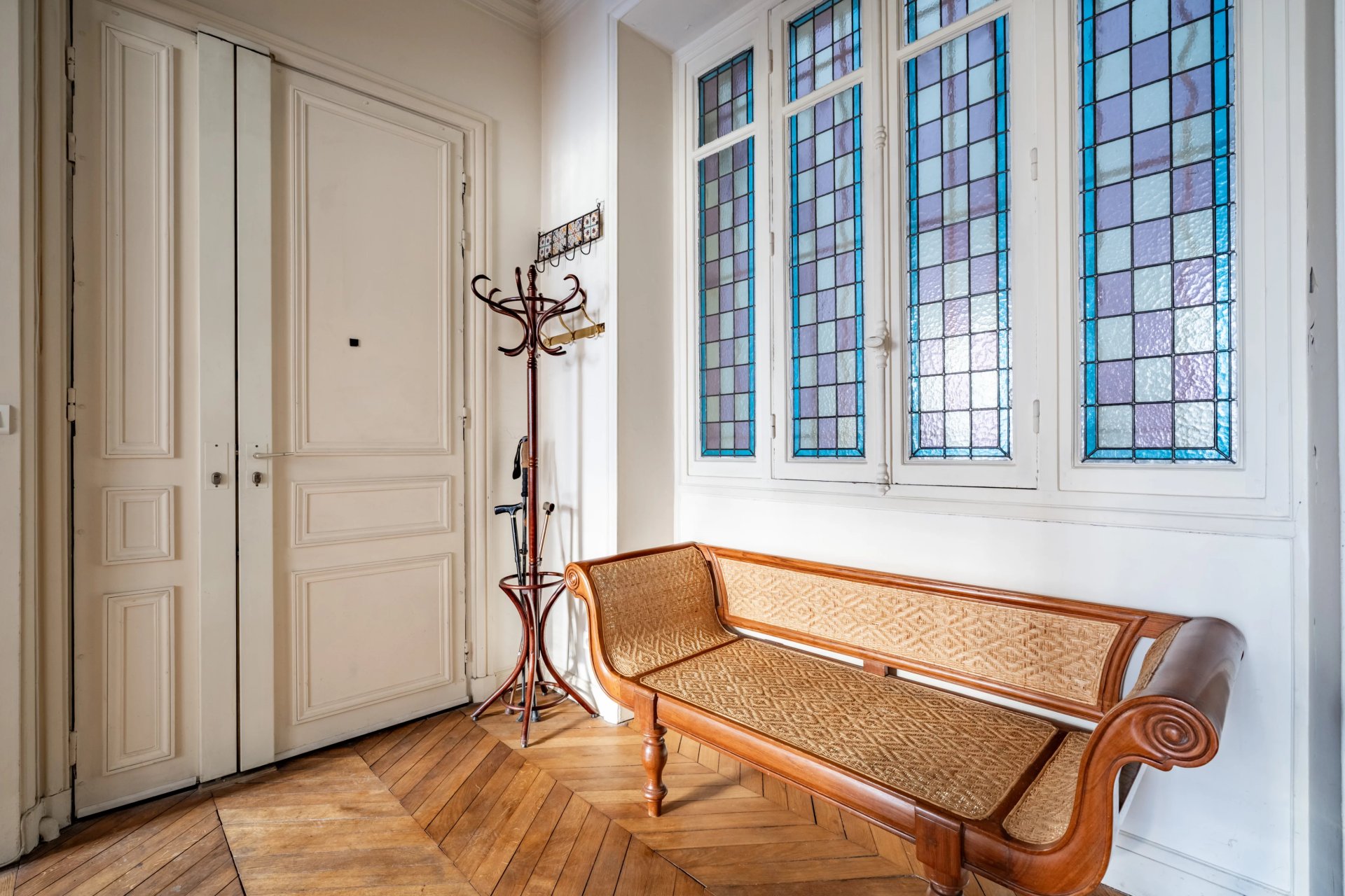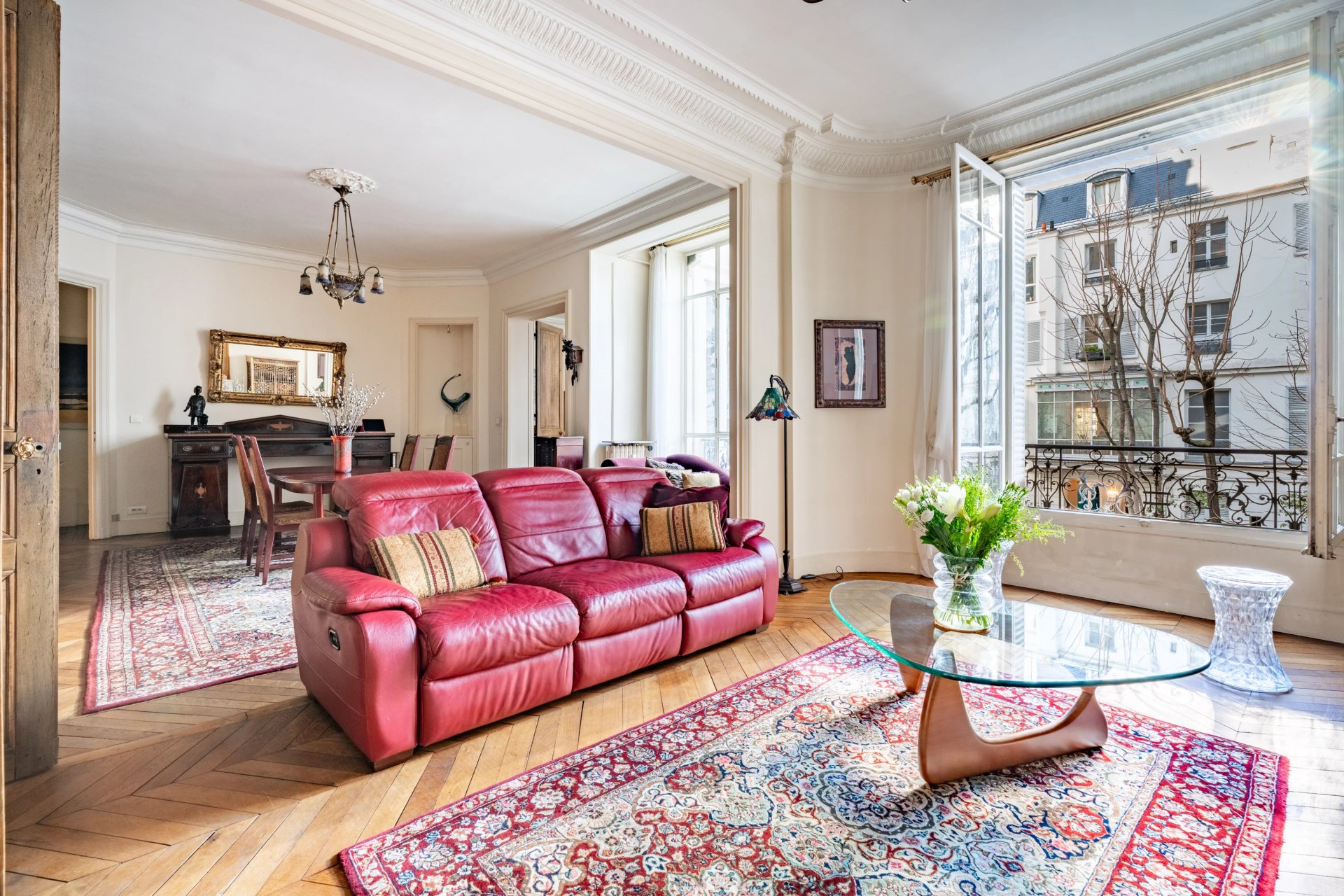 Sole Agent. Raspail/Luxembourg neighbourhood. This bright and peaceful 147 sqm apartment overlooking a leafy paved courtyard is on the 1st floor of a very well-maintained late 19th century co-ownership with a caretaker and a lift. Featuring parquet flooring, fireplaces, and 3.20 metre high ceilings with mouldings, it includes a spacious double living/reception room, a generously proportioned kitchen with dining facilities, three bedrooms, a bathroom/wc, and a shower room/wc.