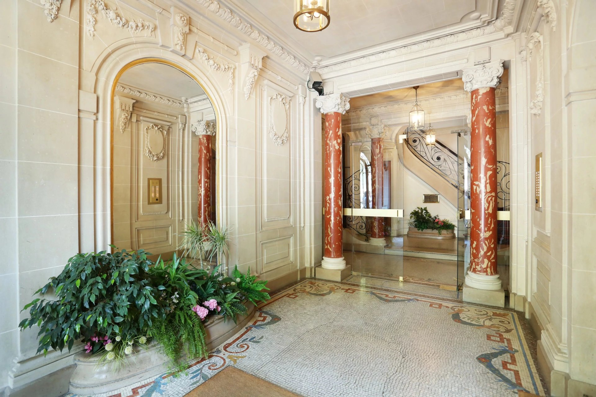 This elegant 160 sqm apartment oozing with period charm is on the 5th floor of a luxurious and recently refaced early 20th century freestone building located in a side street bordering the Champs de Mars.