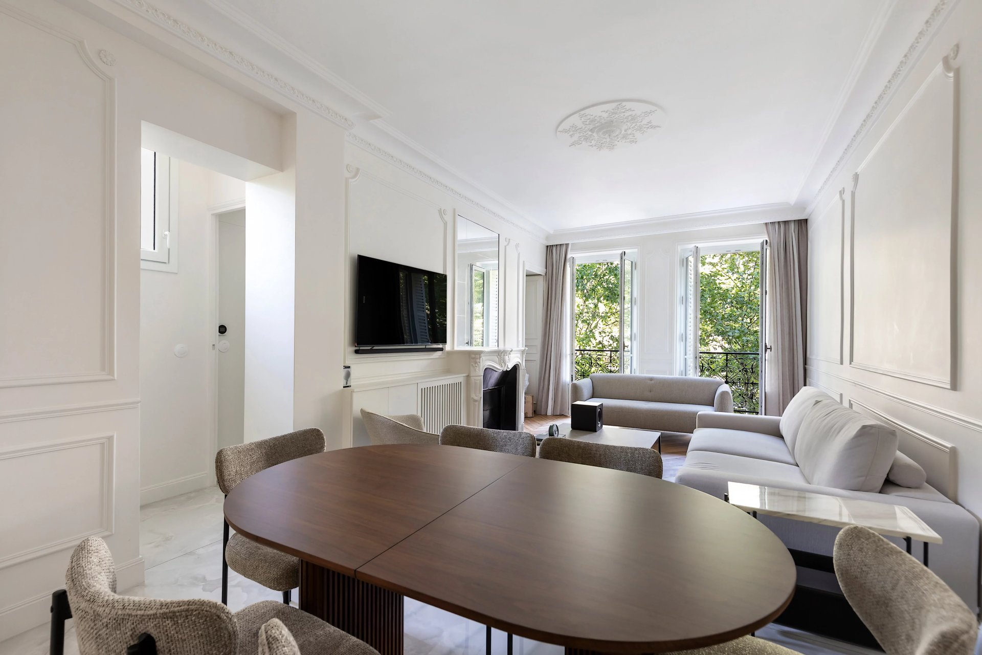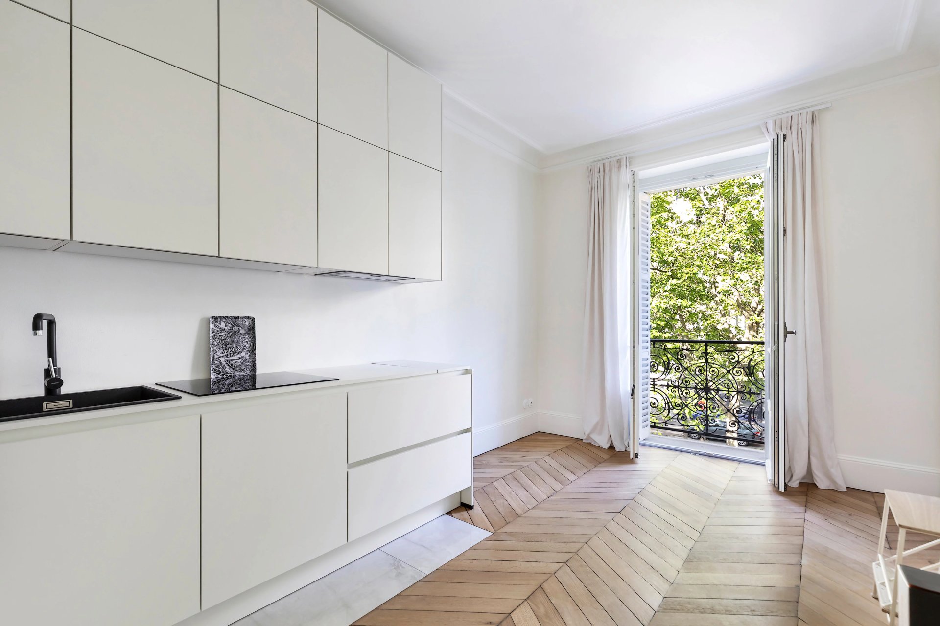 Avenue Bosquet. This near 75 sqm dual-aspect apartment benefiting from a continuous balcony is on the 2nd floor of a fine late 19th century freestone building with a lift.