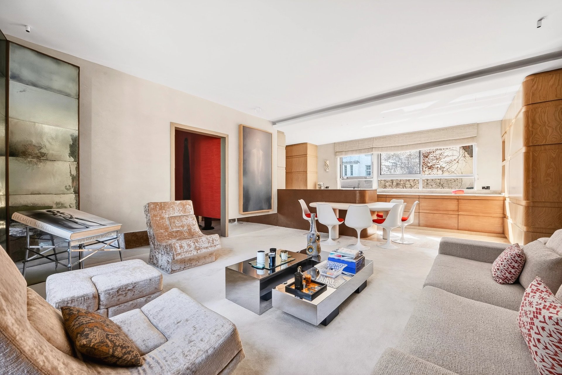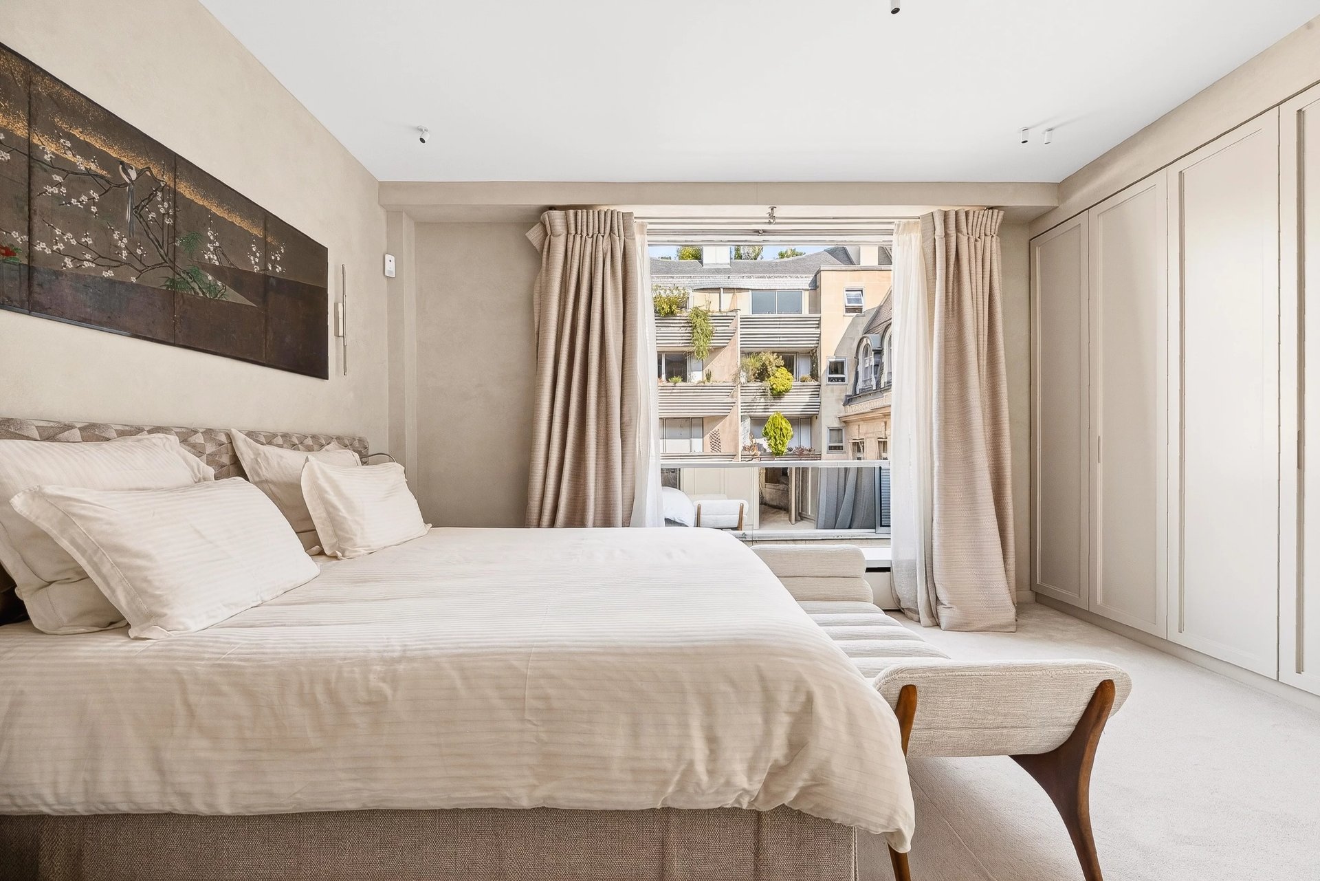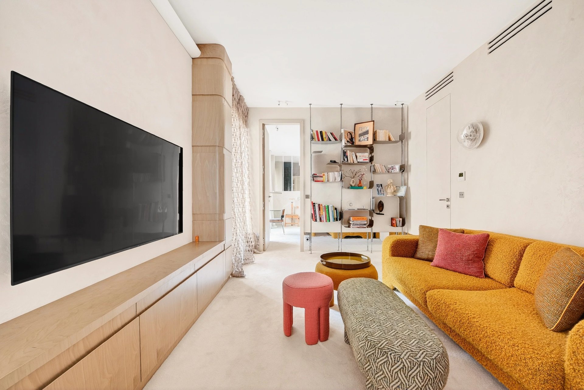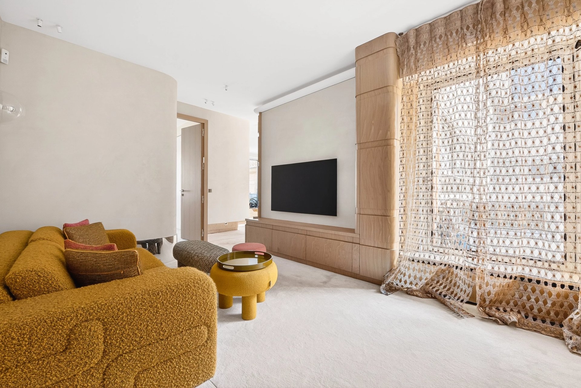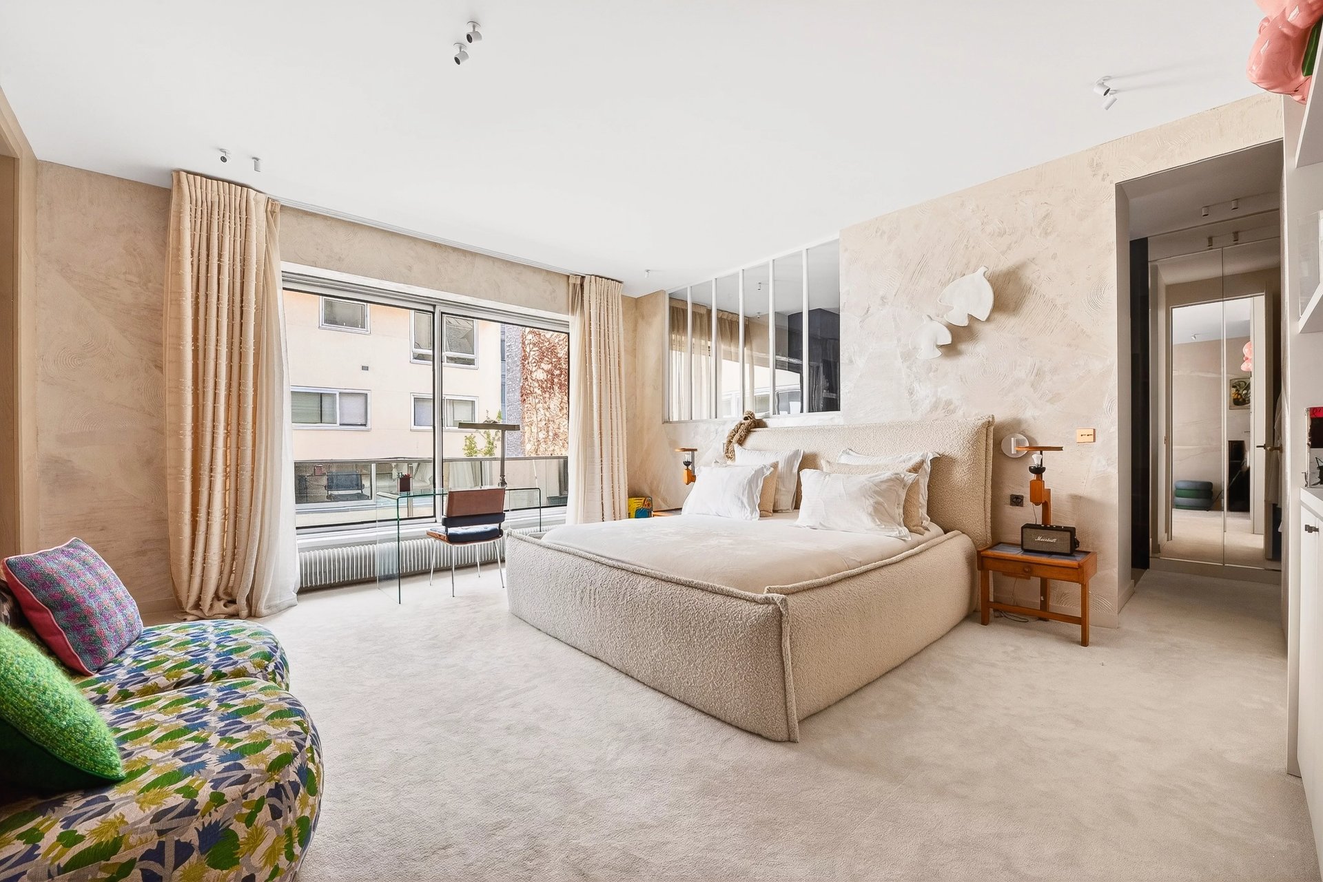 Benefiting from balconies overlooking the building's paved courtyards, it includes an entry with fitted storage space, a double living/reception room with an equipped open-plan kitchen, a TV lounge, two suites with bathrooms/wc and dressing rooms, a shower room, a utility room and a separate wc.