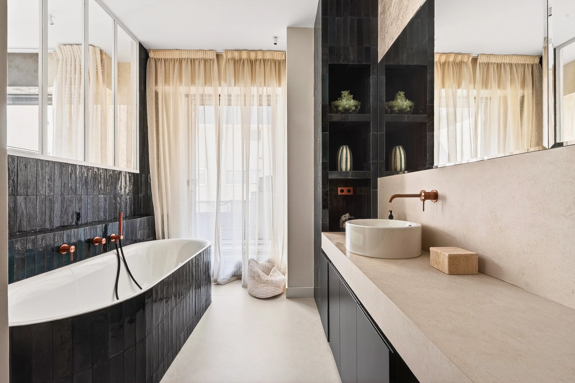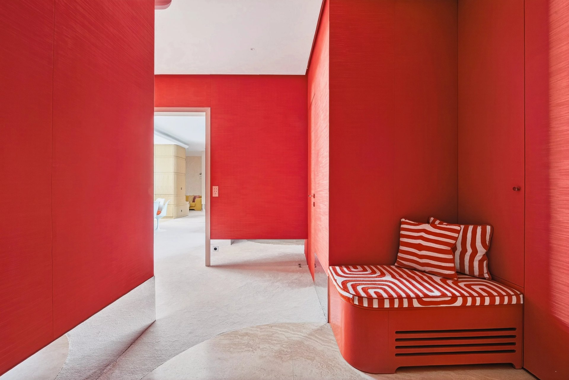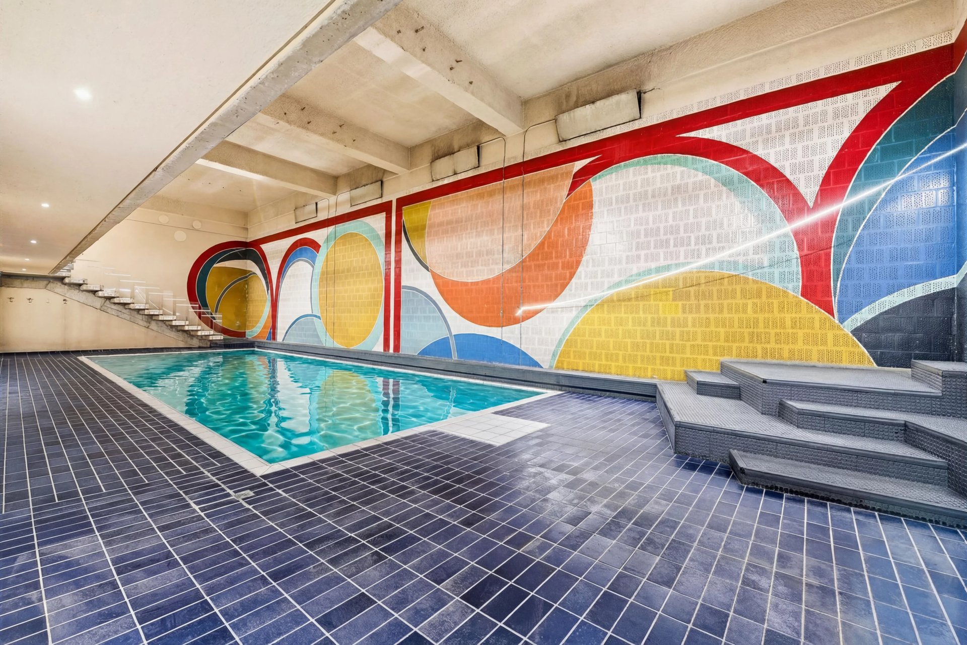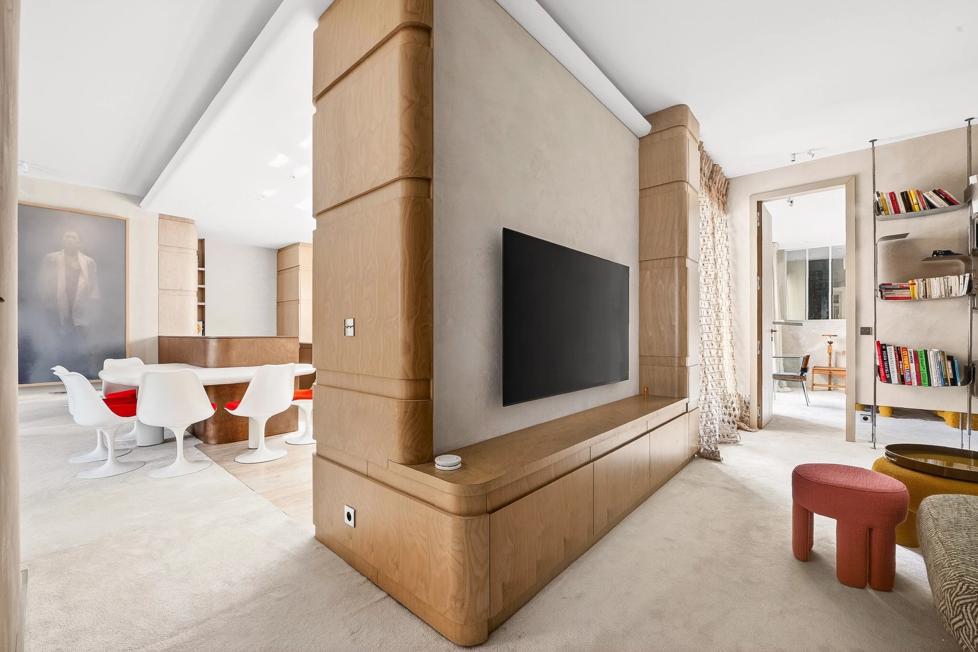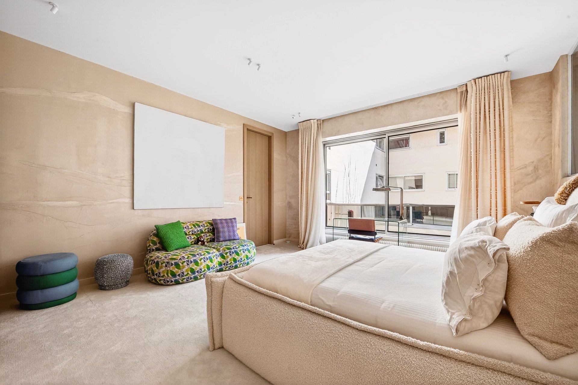 Benefiting from balconies overlooking the building's paved courtyards, it includes an entry with fitted storage space, a double living/reception room with an equipped open-plan kitchen, a TV lounge, two suites with bathrooms/wc and dressing rooms, a shower room, a utility room and a separate wc.