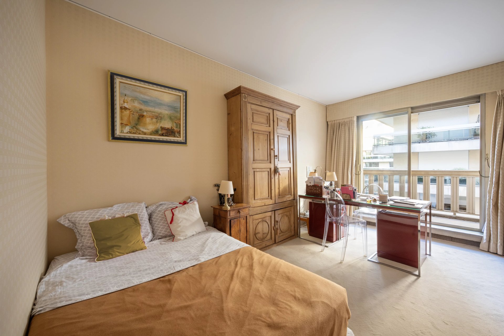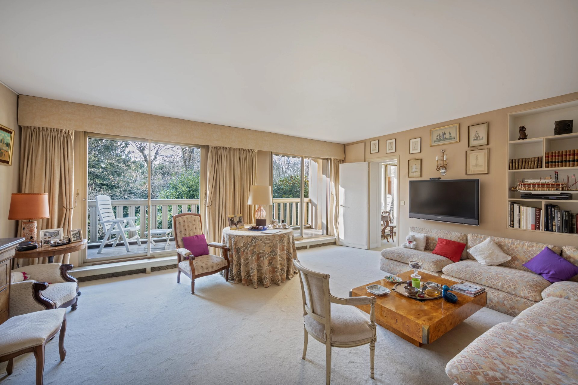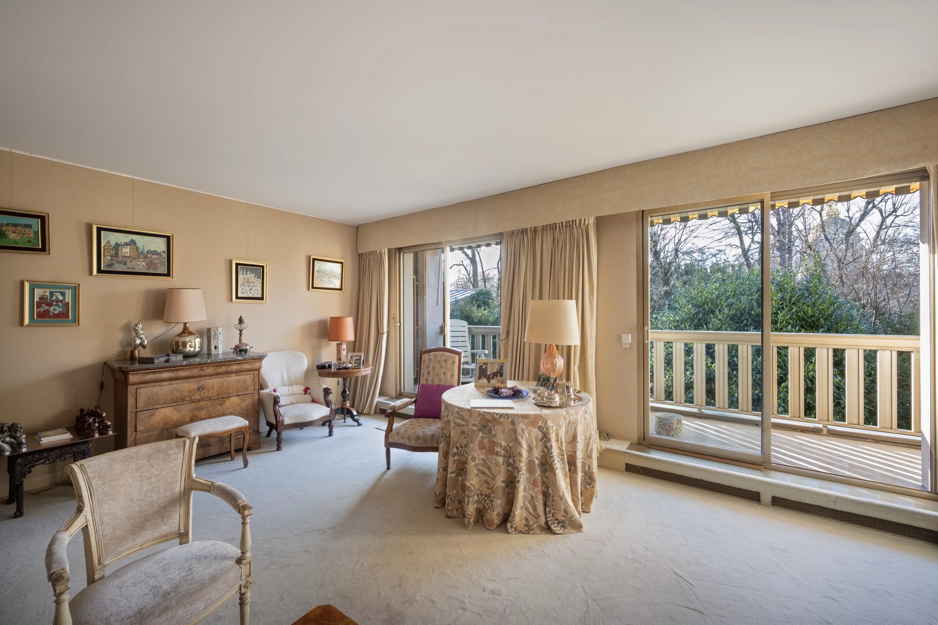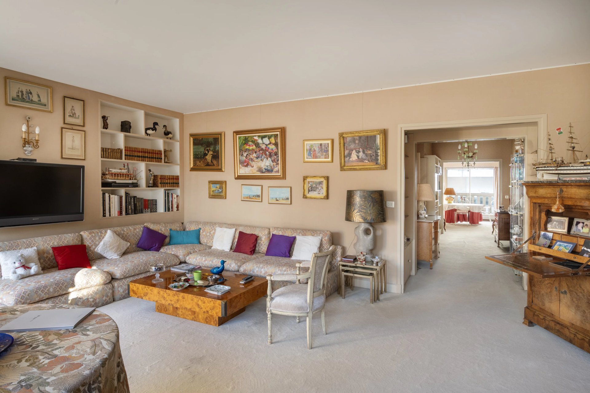 Sole Agent. Rue Barbet de Jouy. This 133 sqm apartment on the second floor of a luxurious and secure relatively recent building constructed on the site of former private mansions. It includes a double living/reception room opening onto a west-facing 18 sqm balcony enjoying an open view of the Invalides Dome, a spacious kitchen with an adjacent utility room, a dining room, two bedrooms, two bathrooms/wc, and a guest cloakroom/wc. A 3rd bedroom would be possible.