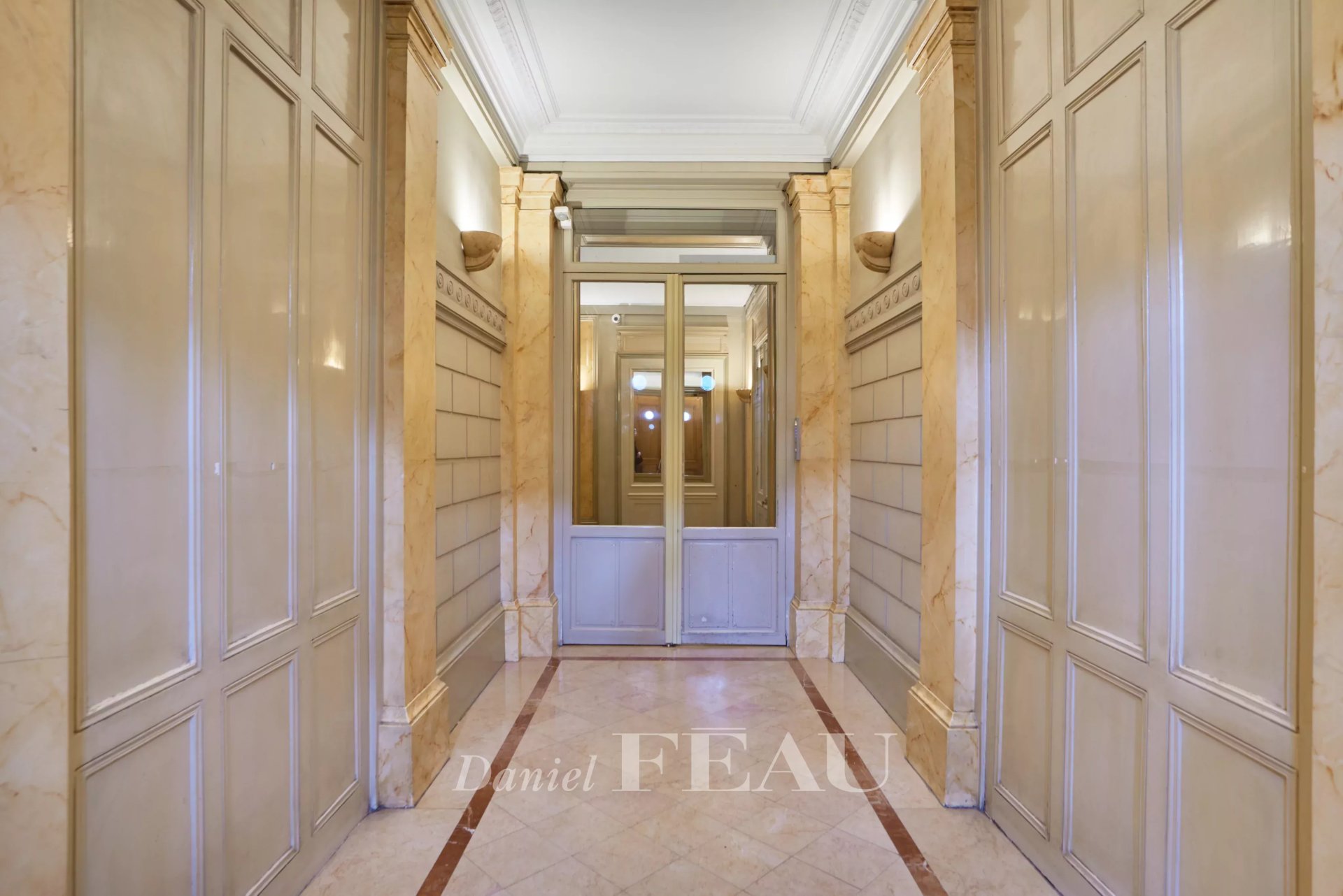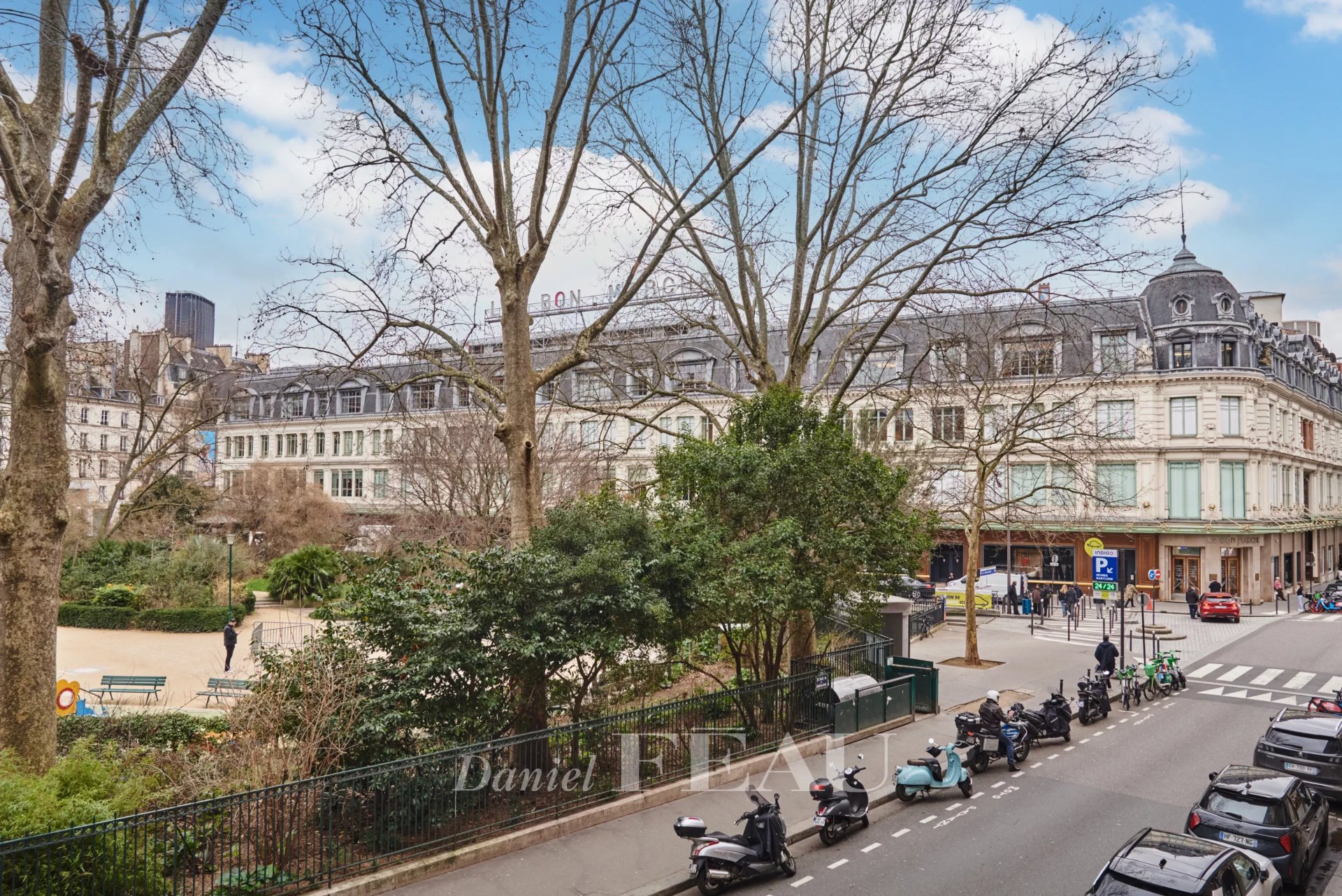 Located on the first floor of an elegant 19th-century building, this apartment is the only one on the floor. Facing a south orientation, it enjoys abundant natural light and offers open views over the greenery of Square Boucicaut from the main reception rooms.