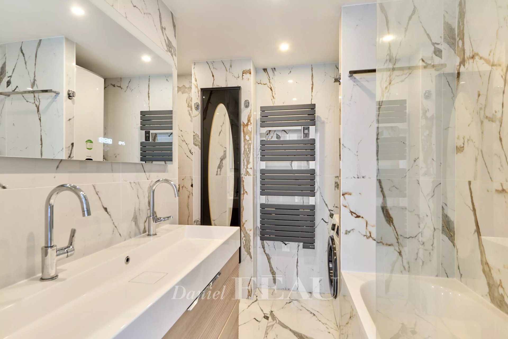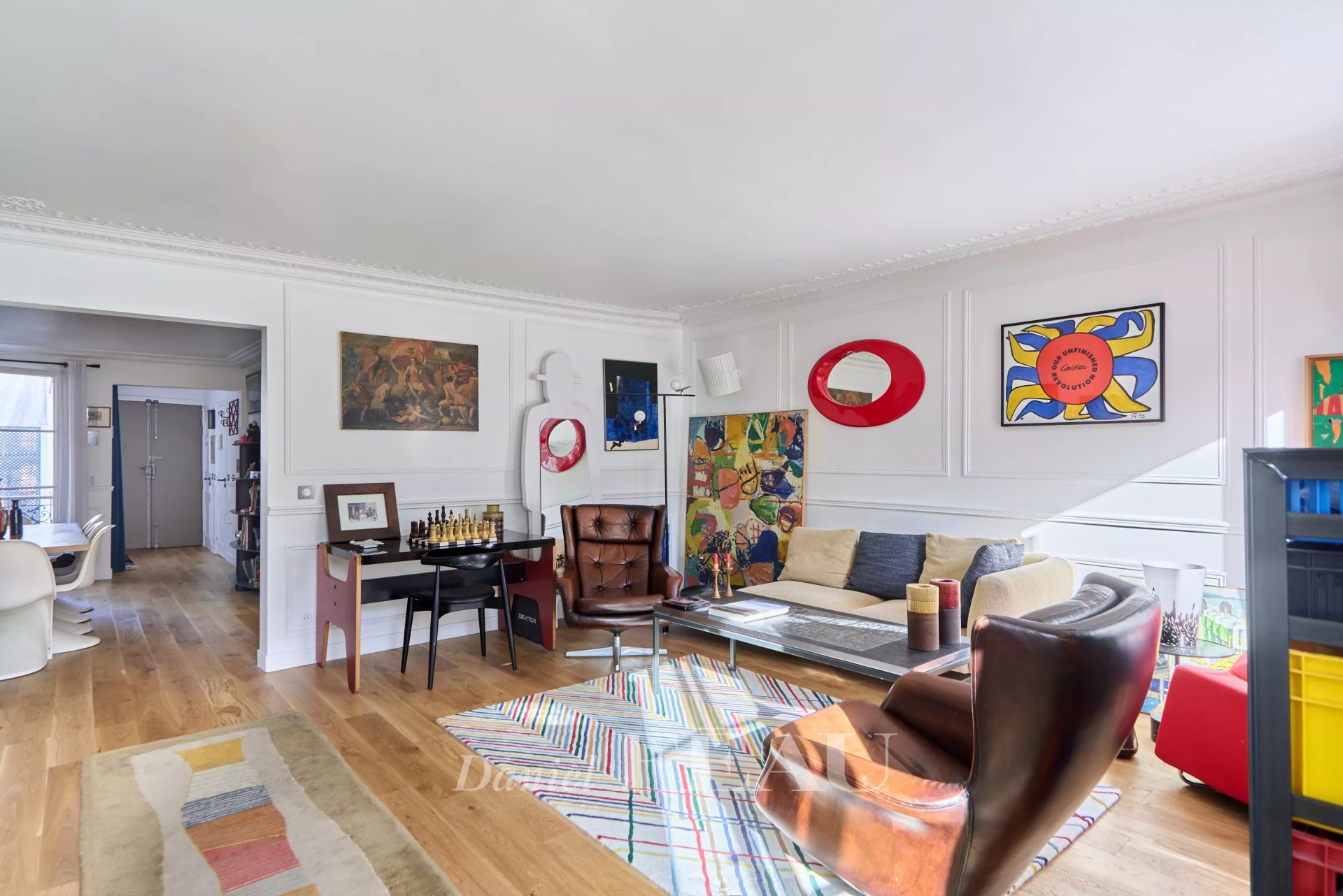 Bon Marché neighbourhood, near Duruy high school and the shops. This bright and peaceful dual-aspect apartment in perfect condition is on the 3rd floor of a luxurious mid 19th century building with a lift. It includes a spacious living/reception room, a dining room with an open-plan kitchen, a suite with a shower room and dressing room, a second bedroom, a study or spare bedroom, a bathroom/wc and a guest wc.