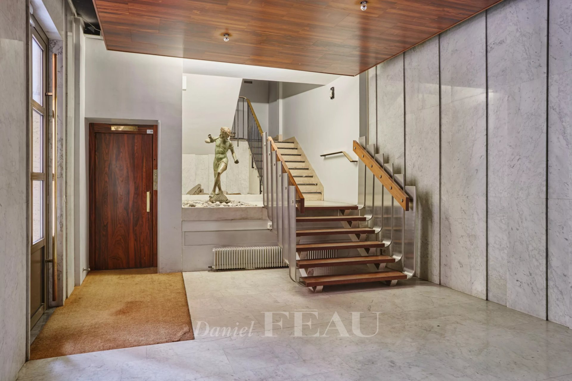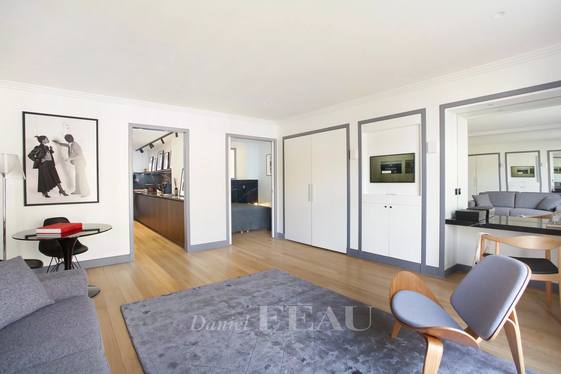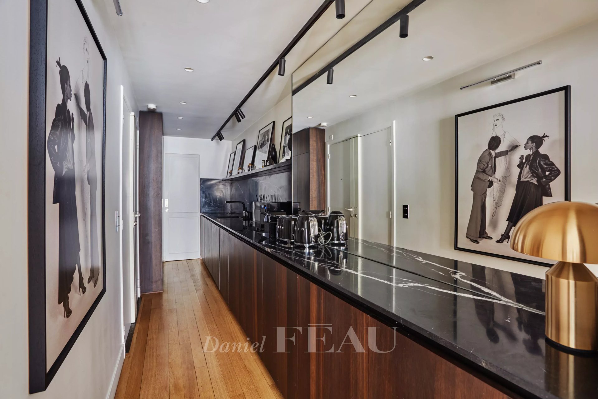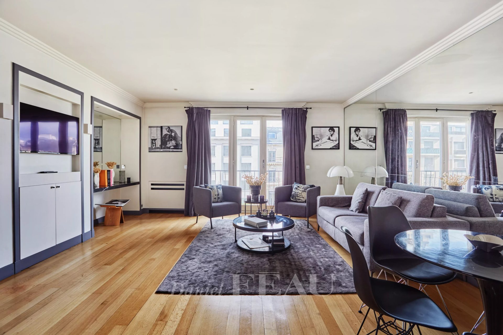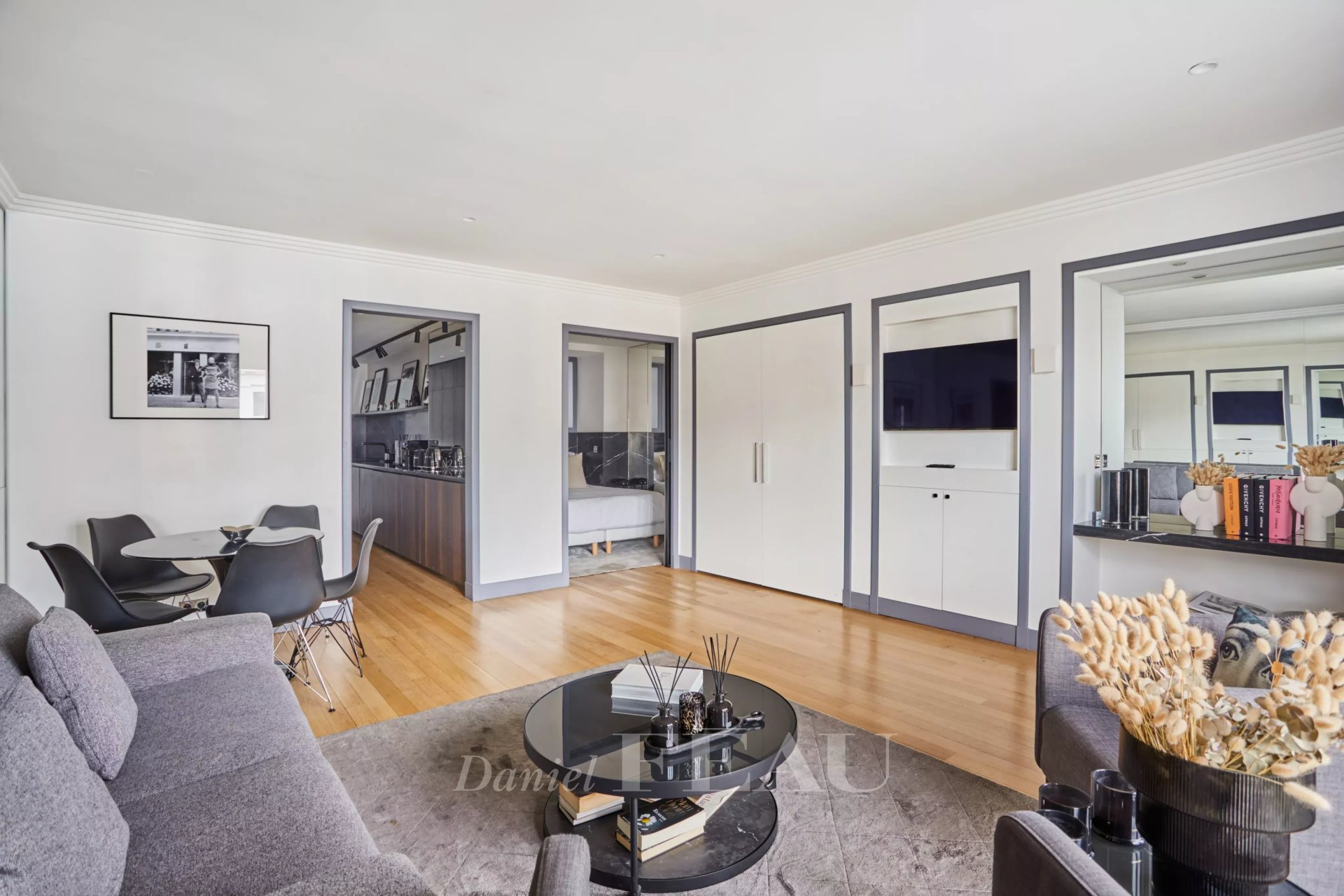 On the fourth floor of a beautiful secured building on Avenue Montaigne, this 48,4 sqm apartment is composed of an entrance, a beautiful living room, a kitchen, a bedroom and a bathroom. The apartment, in perfect condition, would be an ideal a pied-à-terre.