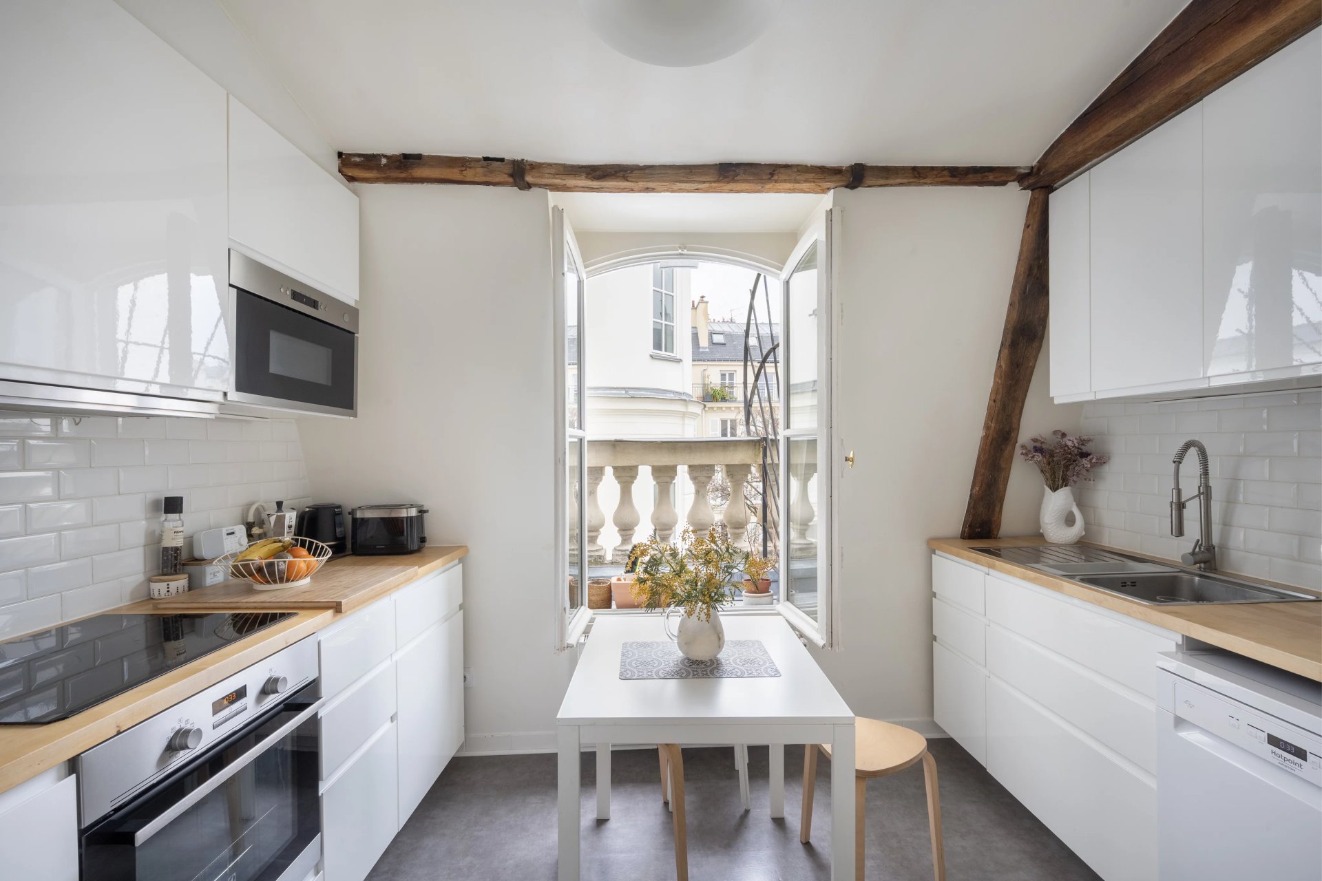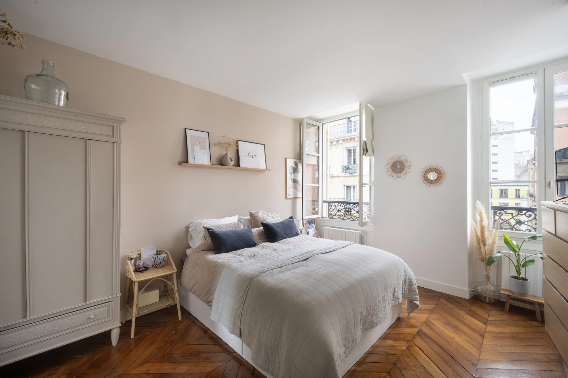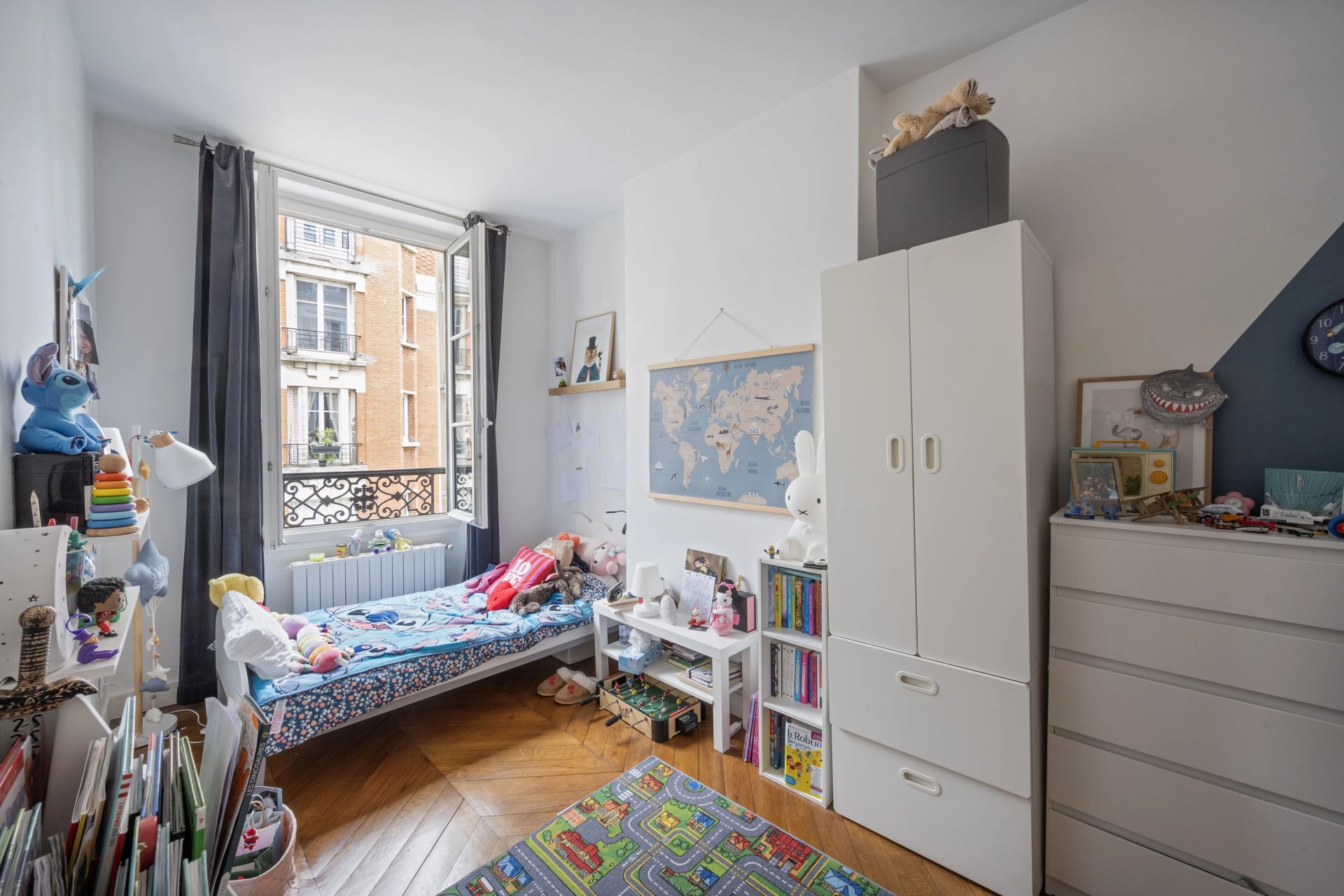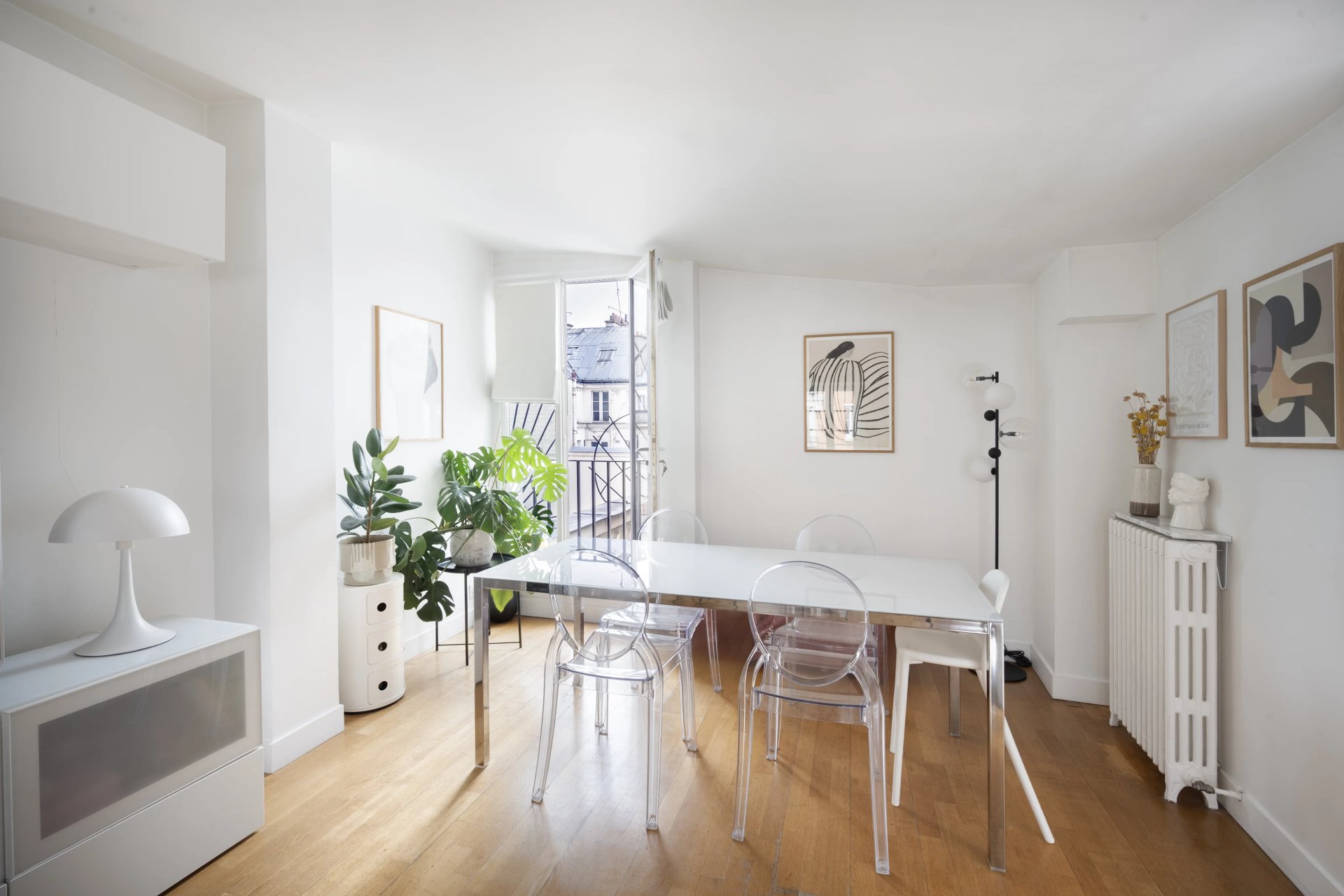 Chaptal neighbourhood. This bright 5-room duplex apartment offering 109 sqm of living space as defined by the Carrez Law is on the top two floors of a recently renovated late 19th century building with a lift. In very good condition, it includes a spacious dual-aspect living/reception room set between the street and a courtyard and enjoying a view of a private mansion, a separate kitchen and a guest wc. The lower floor comprises three bedrooms including a master suite with a shower room, a bathroom and a separate wc.