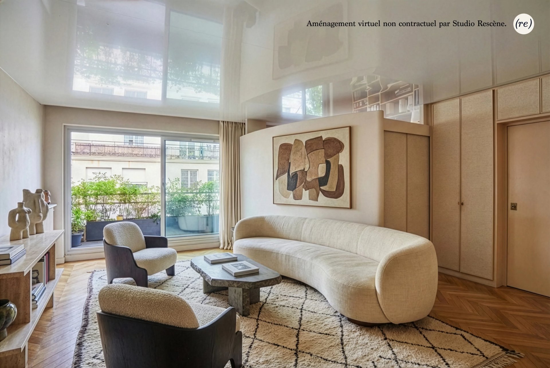 Sole Agent. Avenue Victor Hugo / Saint-Didier neighbourhood, in the immediate vicinity of the shops, the schools and the transport networks. This bright dual-aspect apartment on the 5th floor of a luxurious relatively recent building offers 64.04 sqm of living space as defined by the Carrez Law. Benefiting from no facing neighbours and bathed in sunshine, it includes a living/reception room opening onto a 12 sqm balcony, a separate kitchen, a bedroom, a dressing room, a bathroom and a wc.