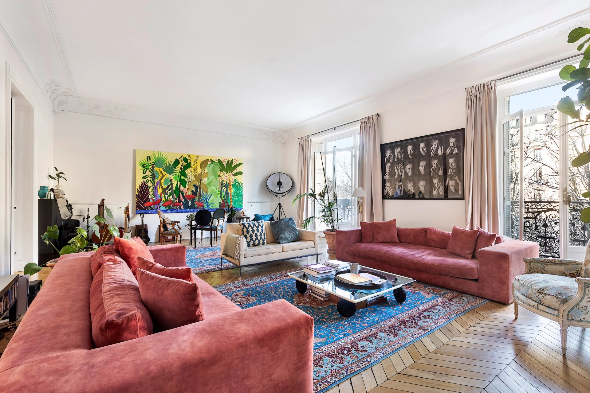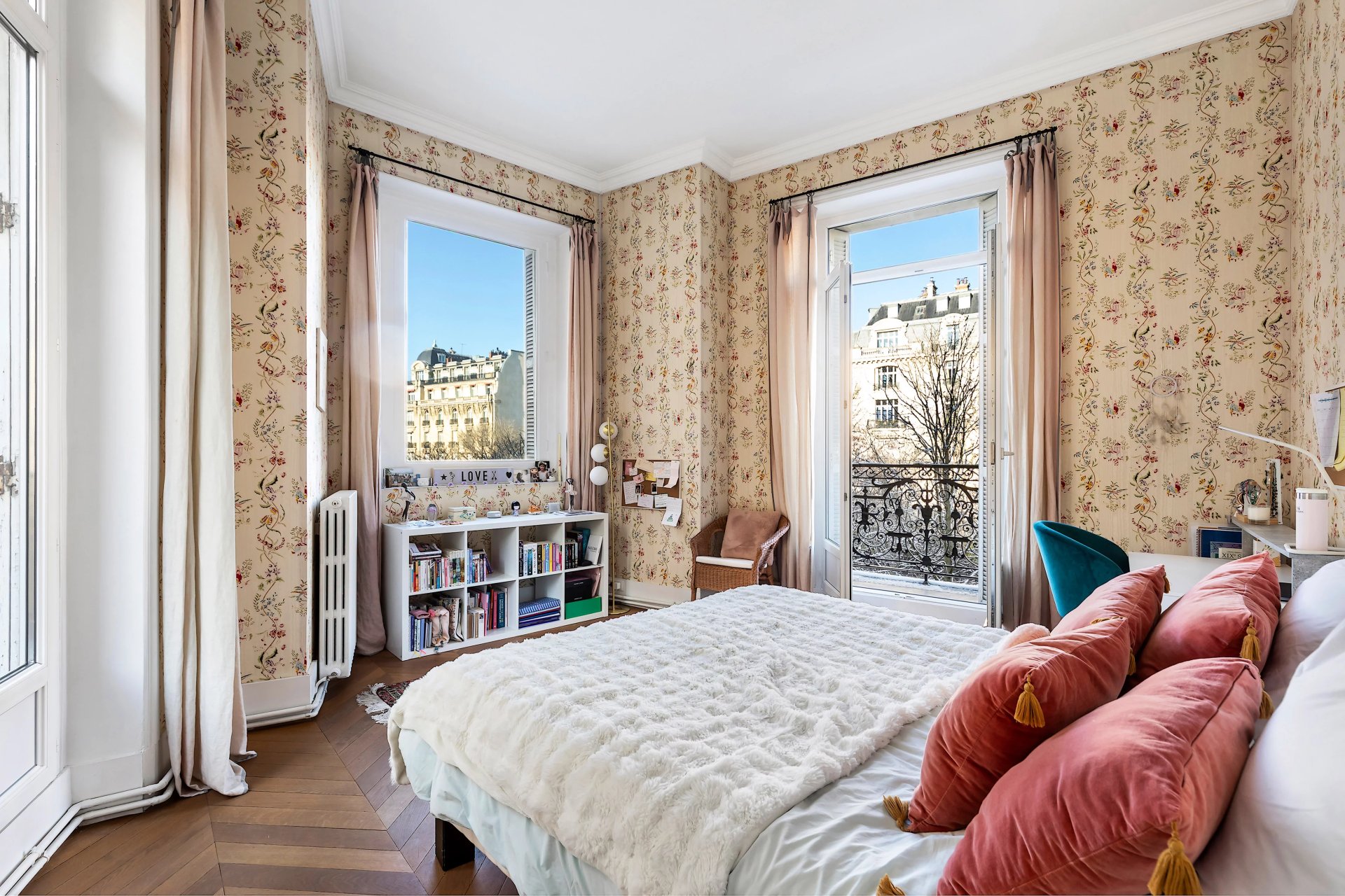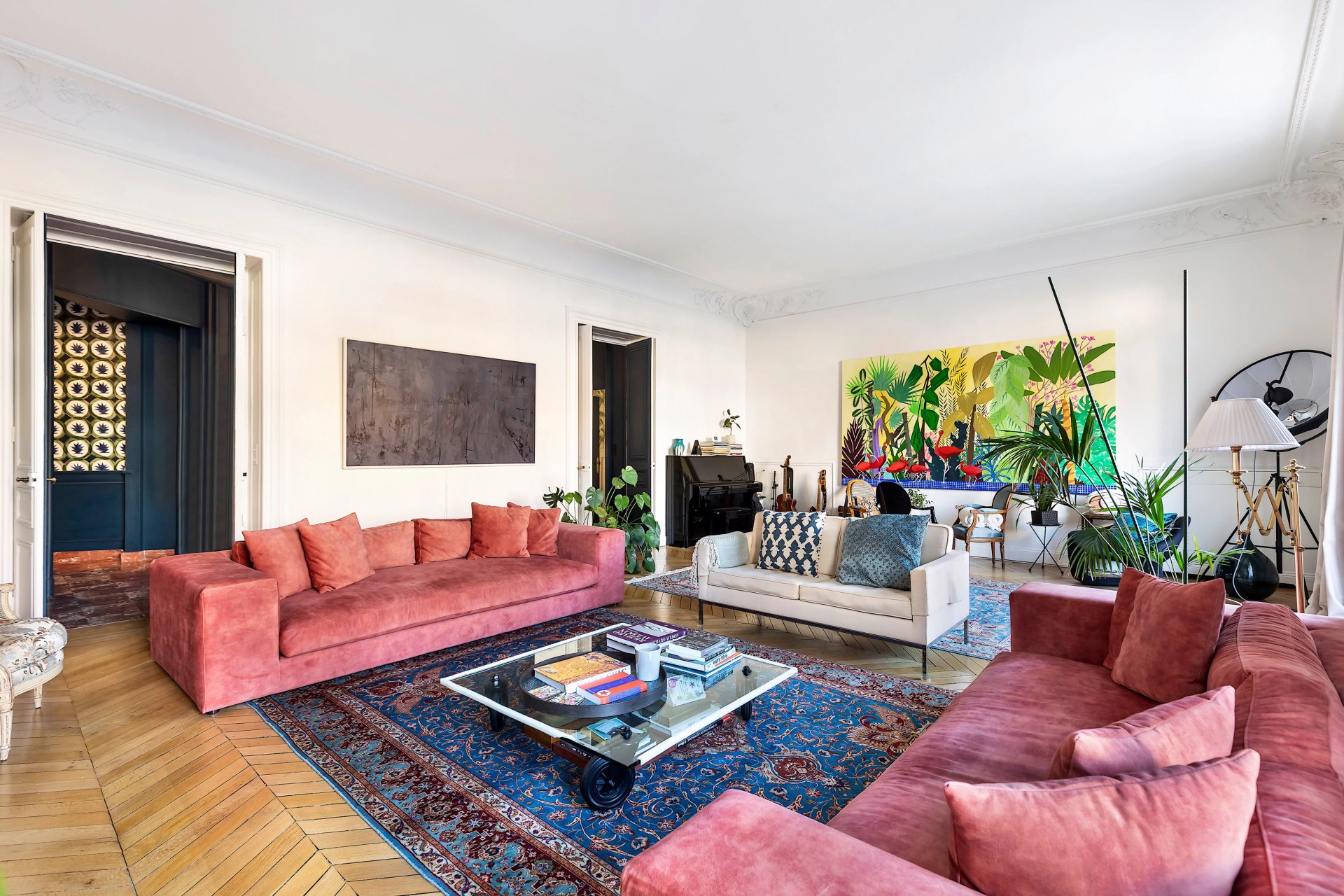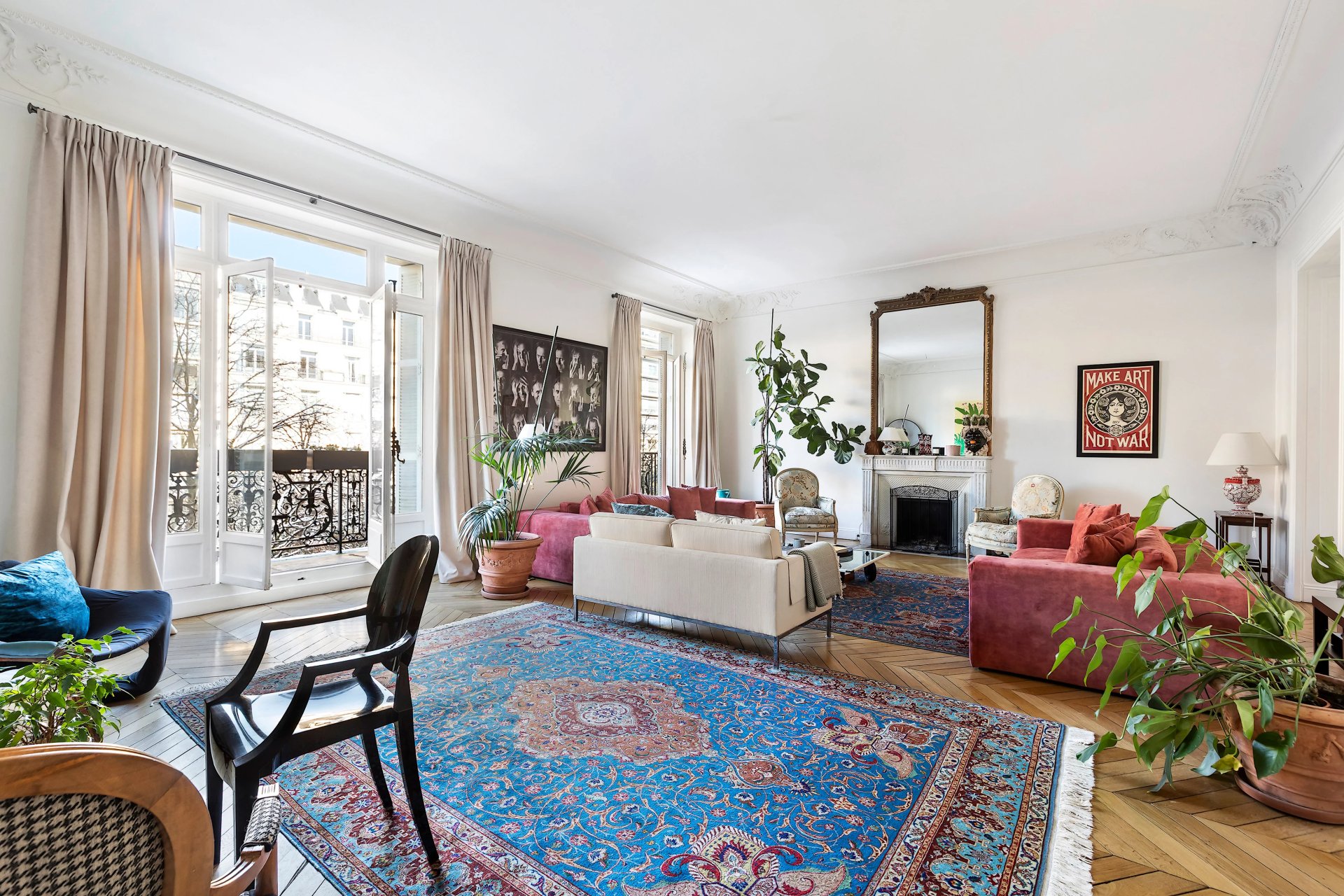 Preserved period features include parquet flooring and fireplaces.