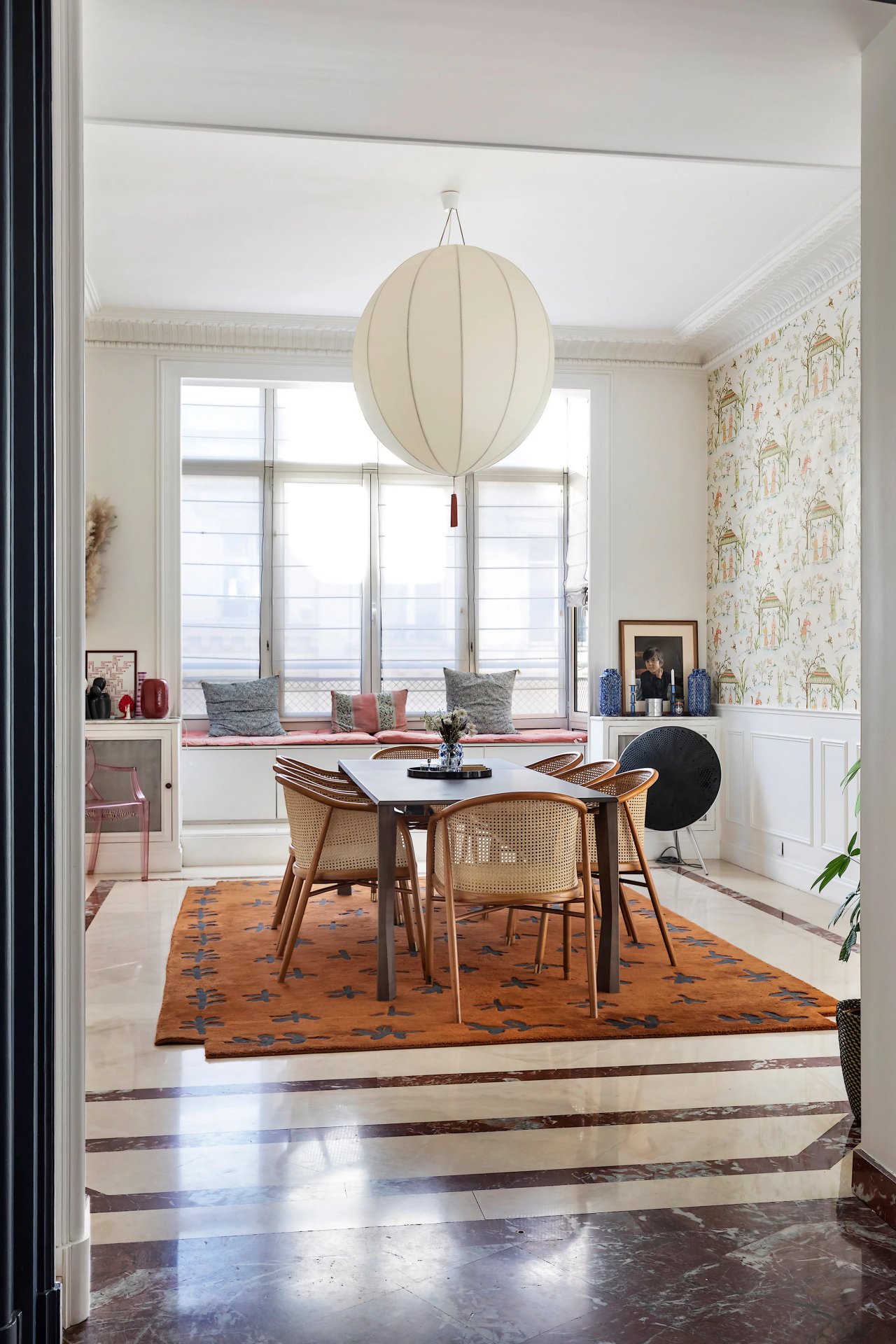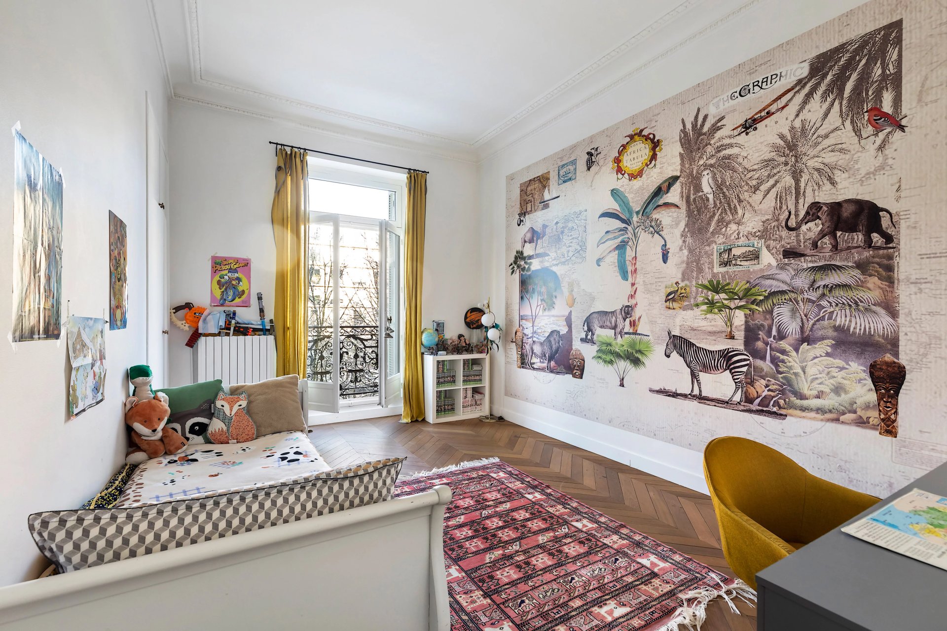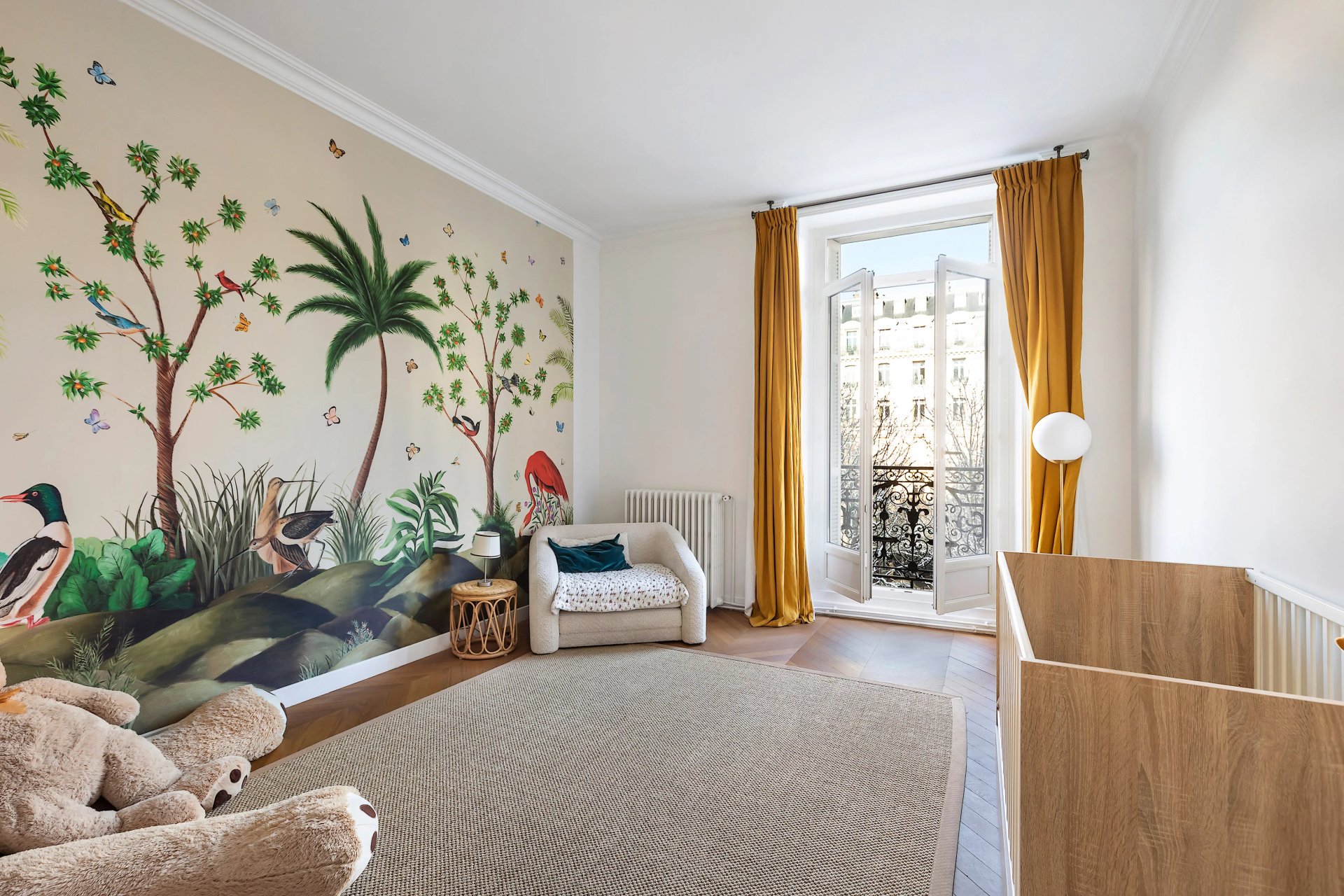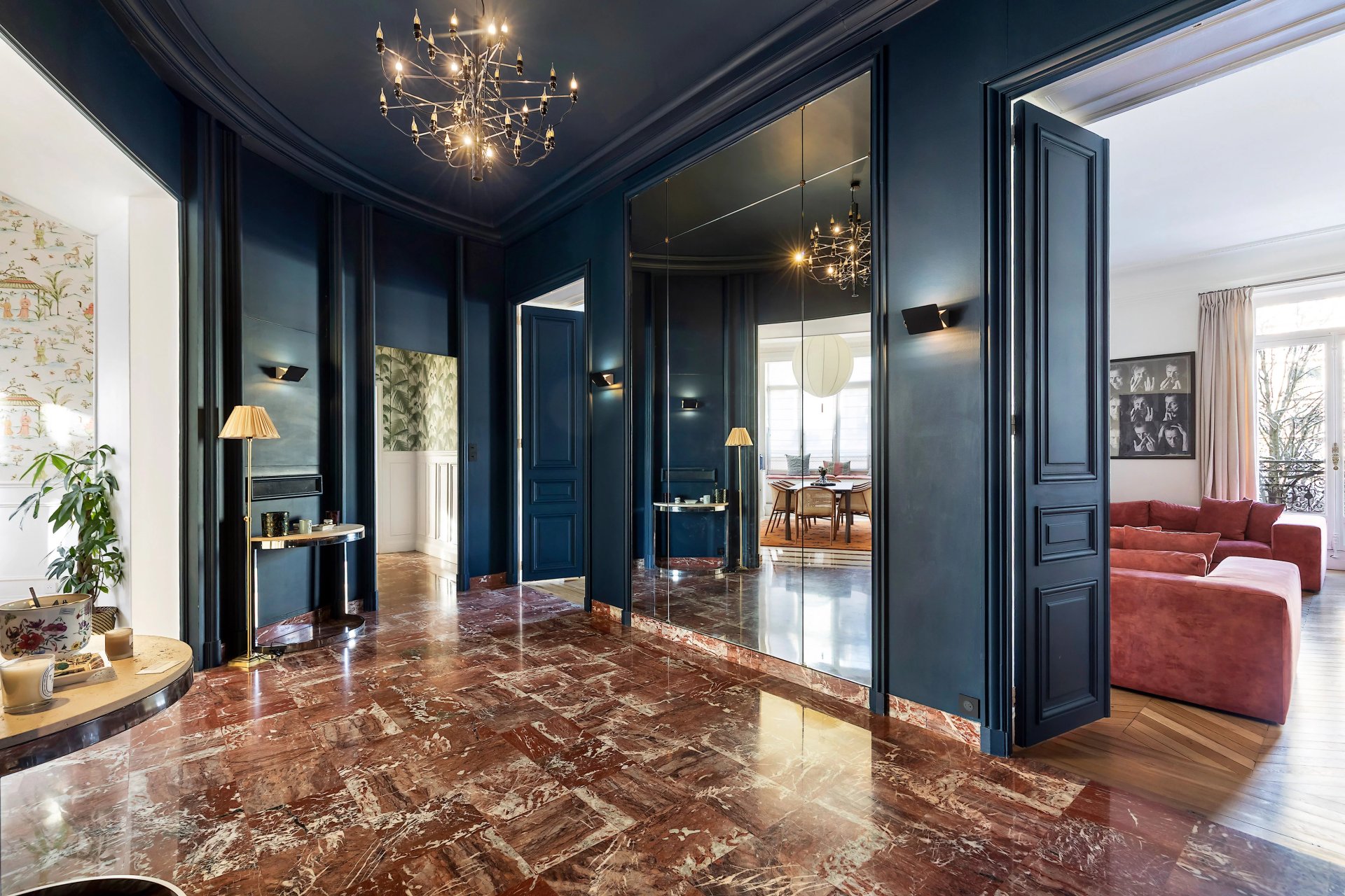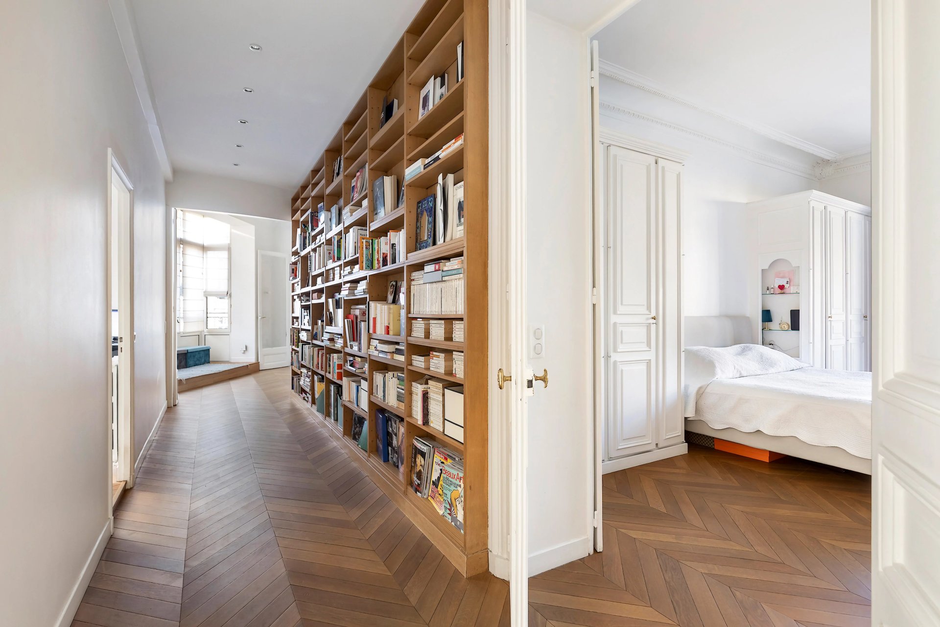 Preserved period features include parquet flooring and fireplaces.