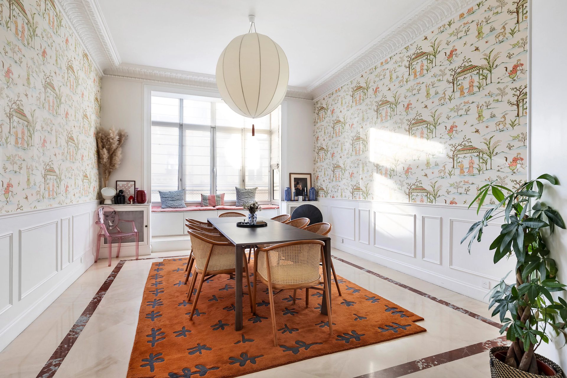 Sole Agent. Ave Georges Mandel. This elegant 287 sqm apartment on the second floor of a luxurious late 19th century building with a caretaker is dual-aspect and bathed in sunshine. Featuring 3.50 metre high ceilings with mouldings and benefiting from an excellent floor plan, it includes an entrance hall, a spacious double living/reception room, a dining room, a kitchen with dining facilities, a master suite with a bathroom, dressing room and wc, three further bedrooms, a bathroom, a shower room and a wc.