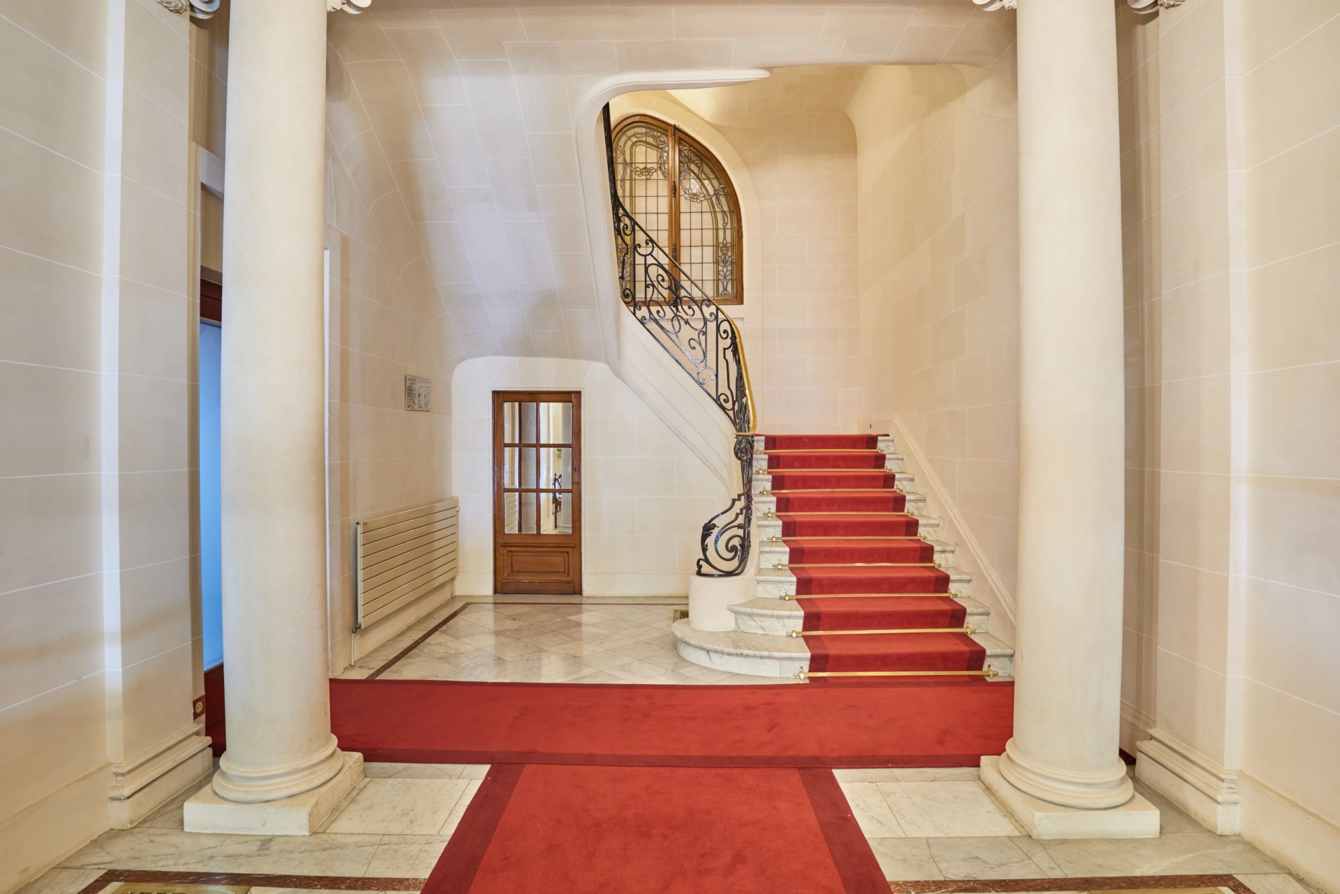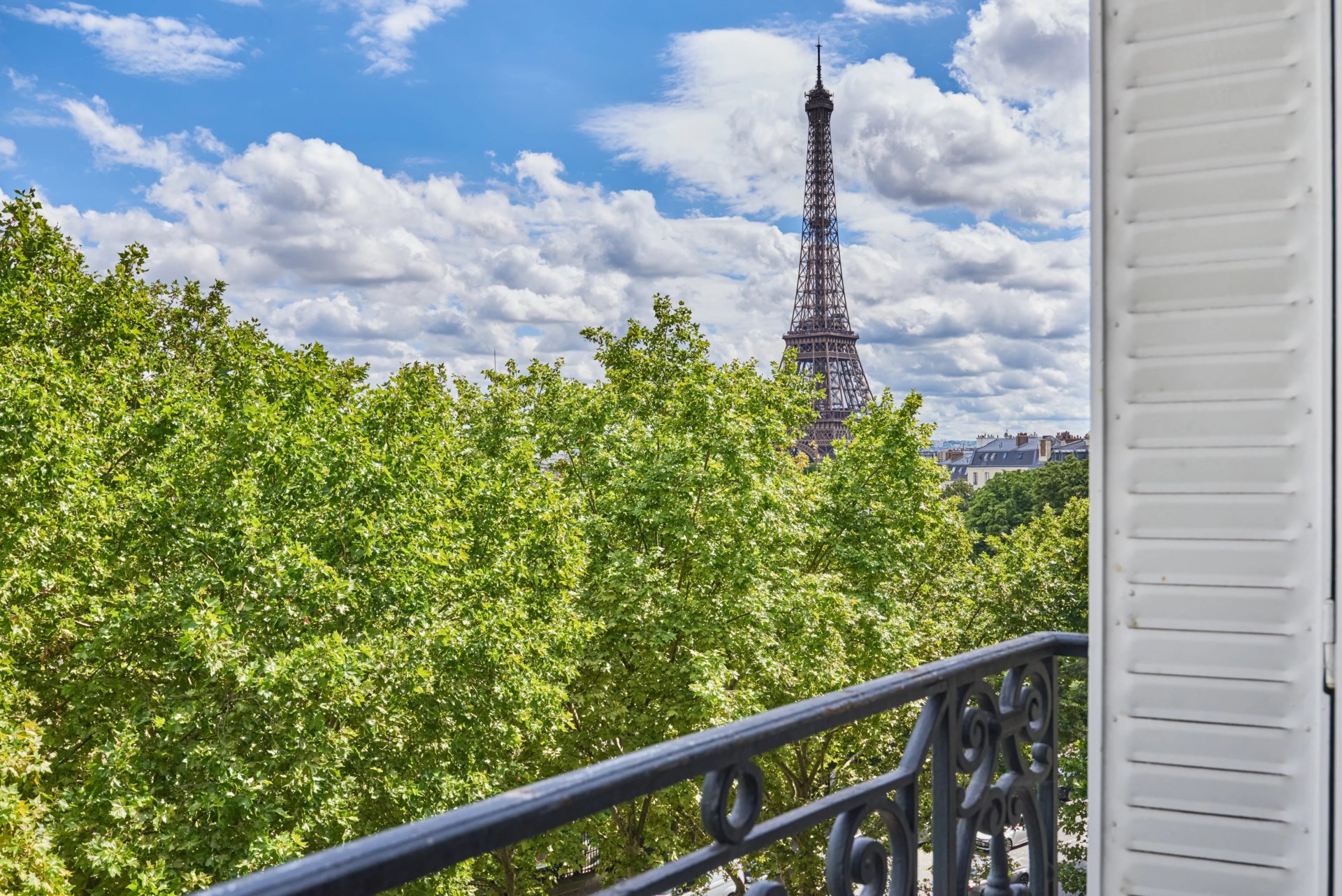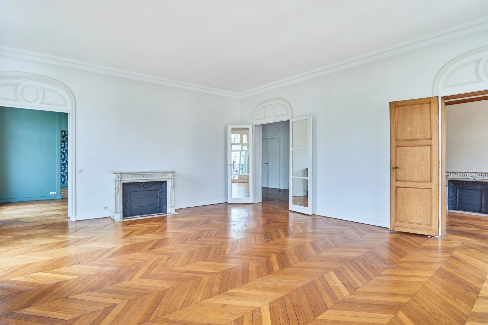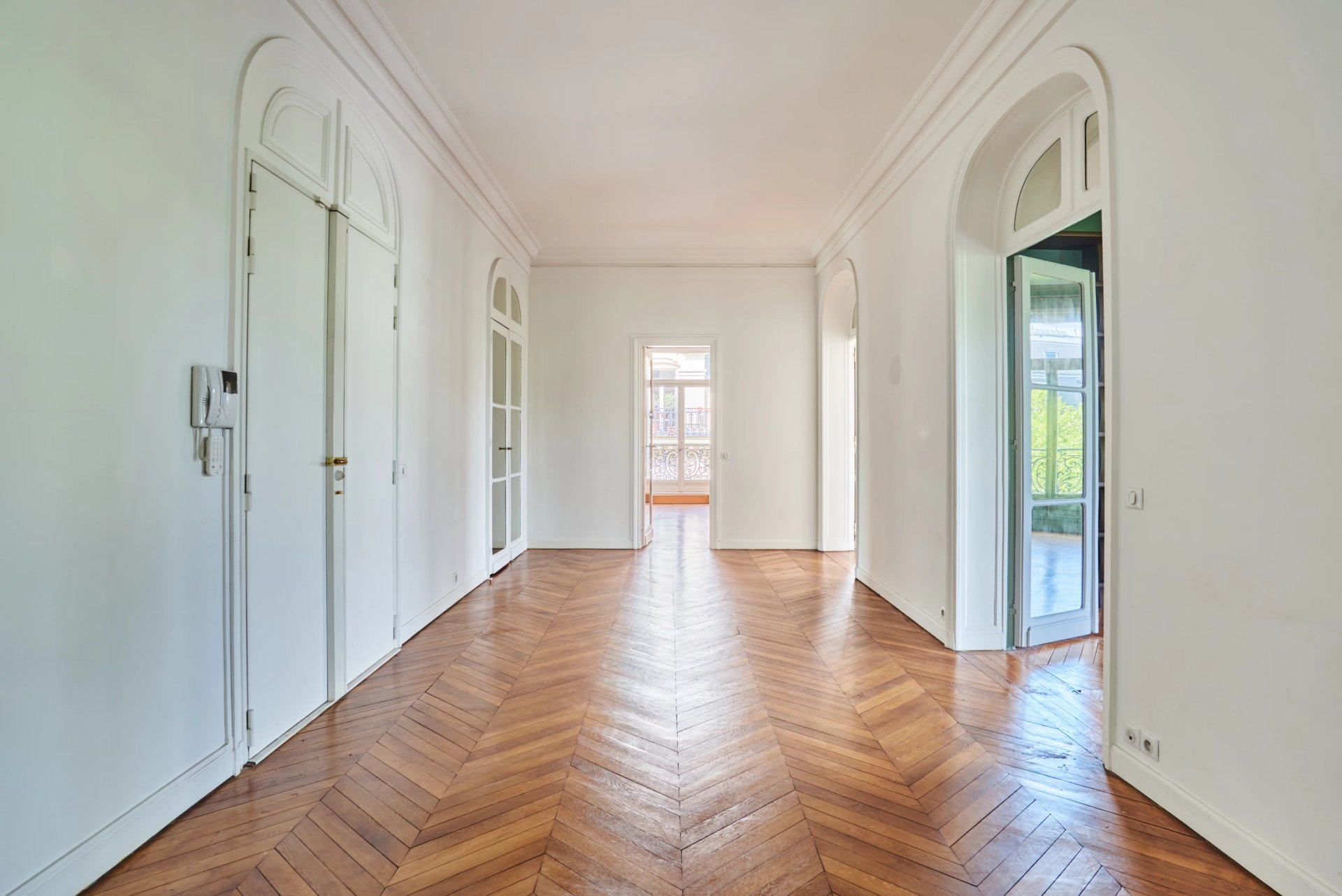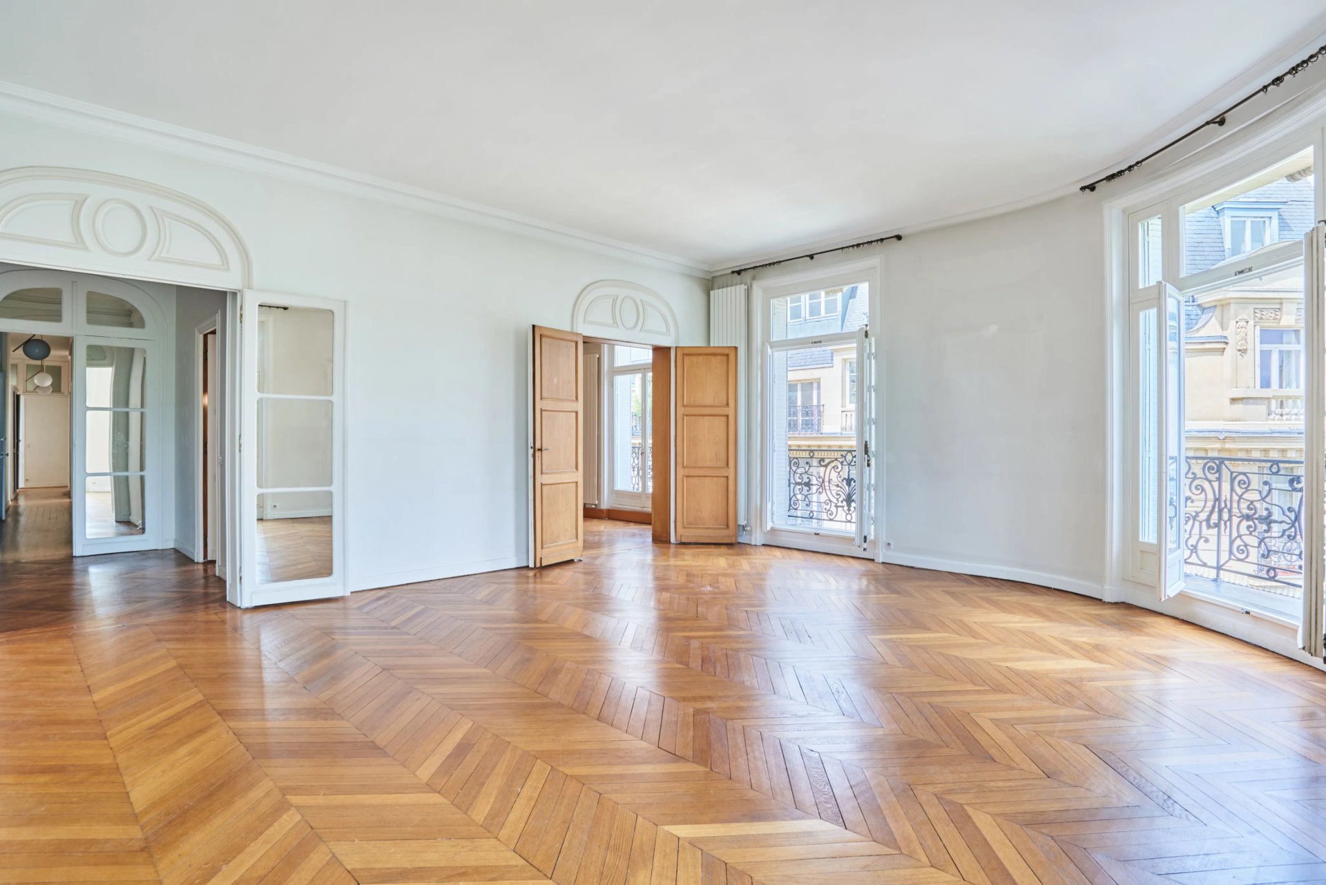 Place d'Iéna. This exceptional 362 sqm apartment is on the 4th floor of a superb early 20th century freestone building with a caretaker and a lift. A spacious entrance hall leads to a particularly bright living/reception room enjoying a view of the Eiffel Tower, a generously proportioned dining room, a fitted kitchen with an adjacent pantry and utility room, a sumptuous master suite with a bath/shower room/wc and dressing room, four bedrooms, a bathroom, a shower room, and a study or possible 6th bedroom.