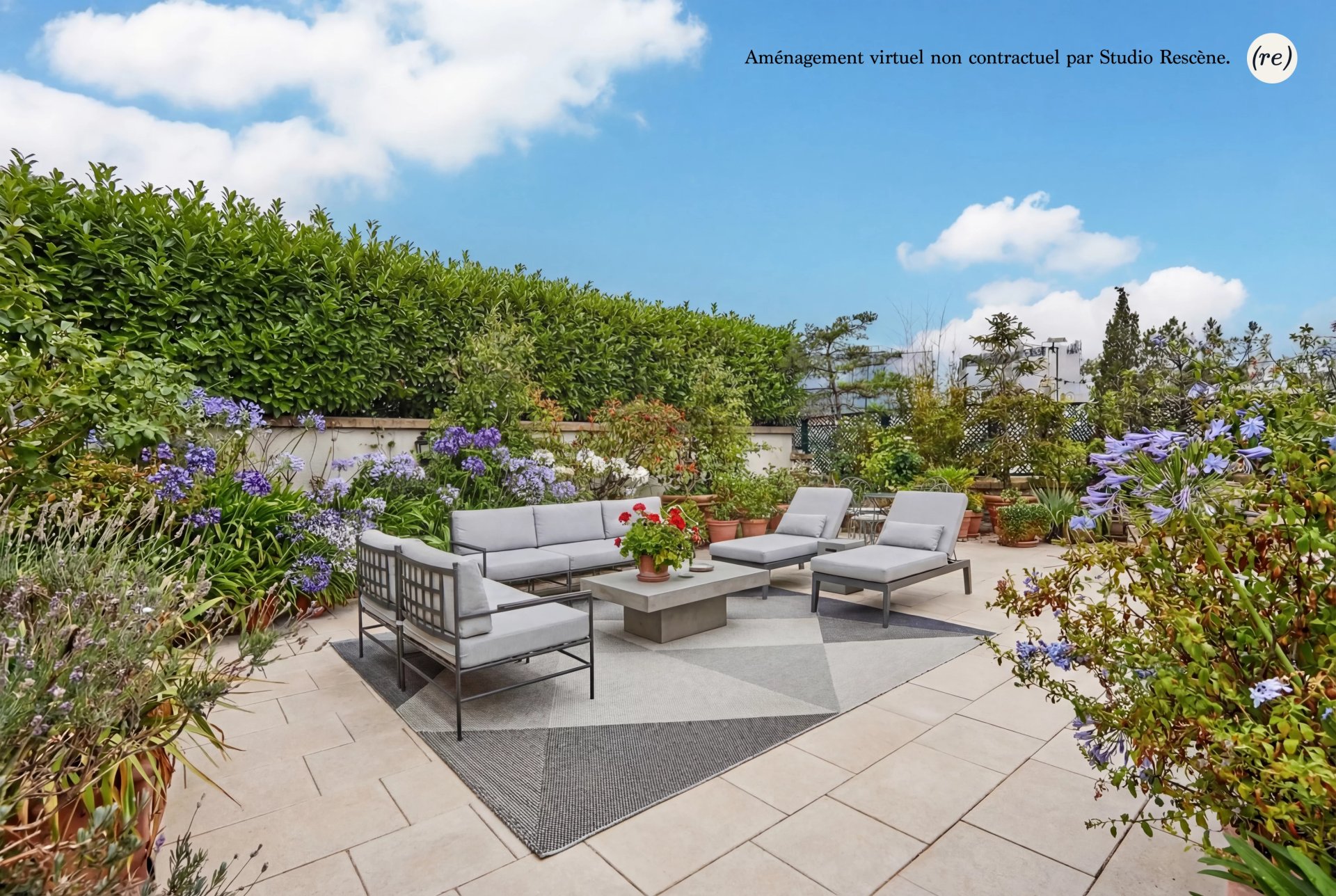 This elegant early 20th century private mansion benefiting from a 123 sqm terrace and a 126 sqm garden is located in a secure private residence in the capital's Ranelagh neighbourhood.