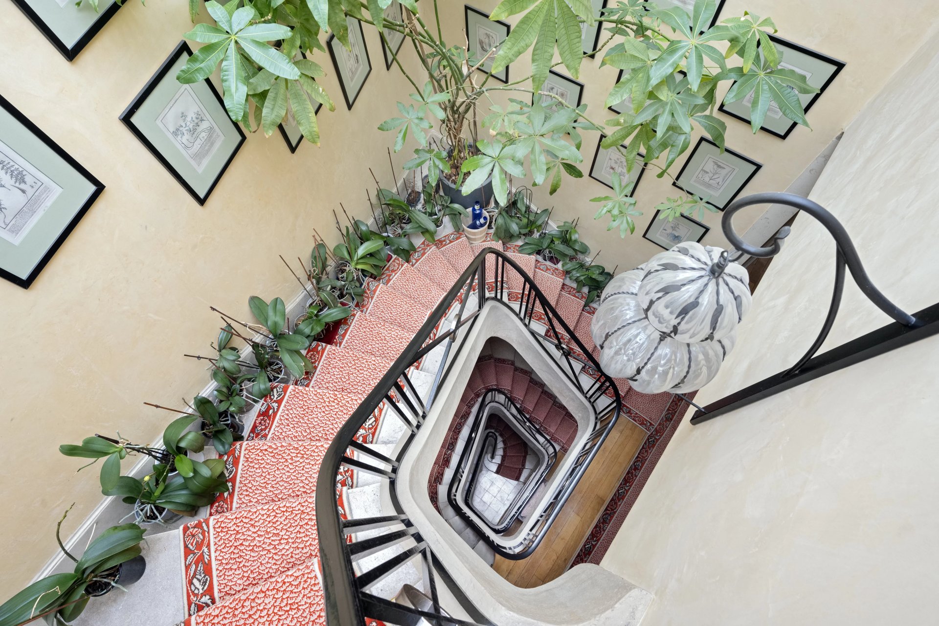 The second floor comprises a master suite with a bathroom, a dressing room and two studies, and four further bedrooms, a bathroom, a shower room, two dressing rooms and a workshop are on the top floor. A leafy roof terrace enjoys open views.