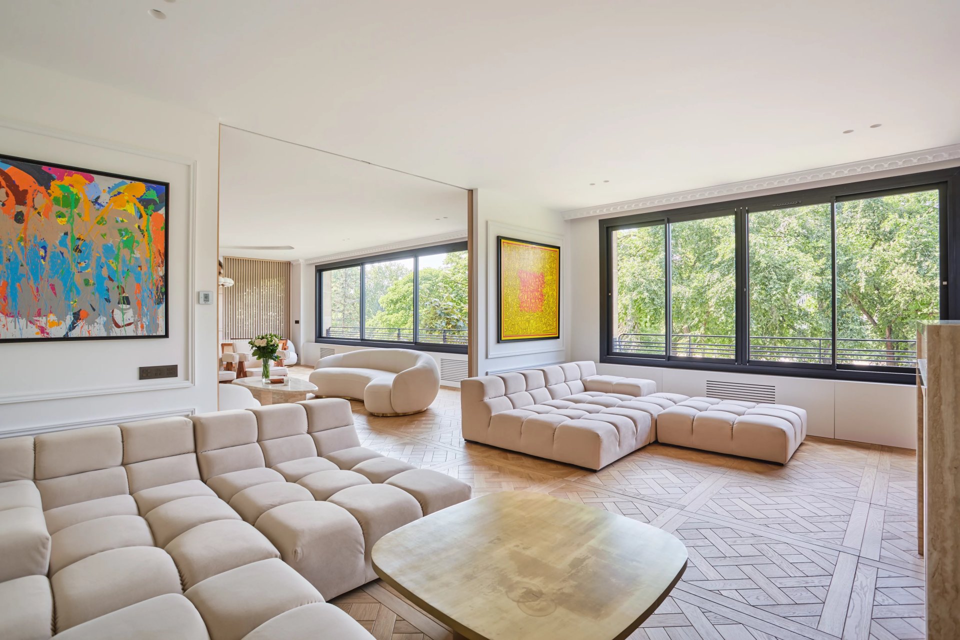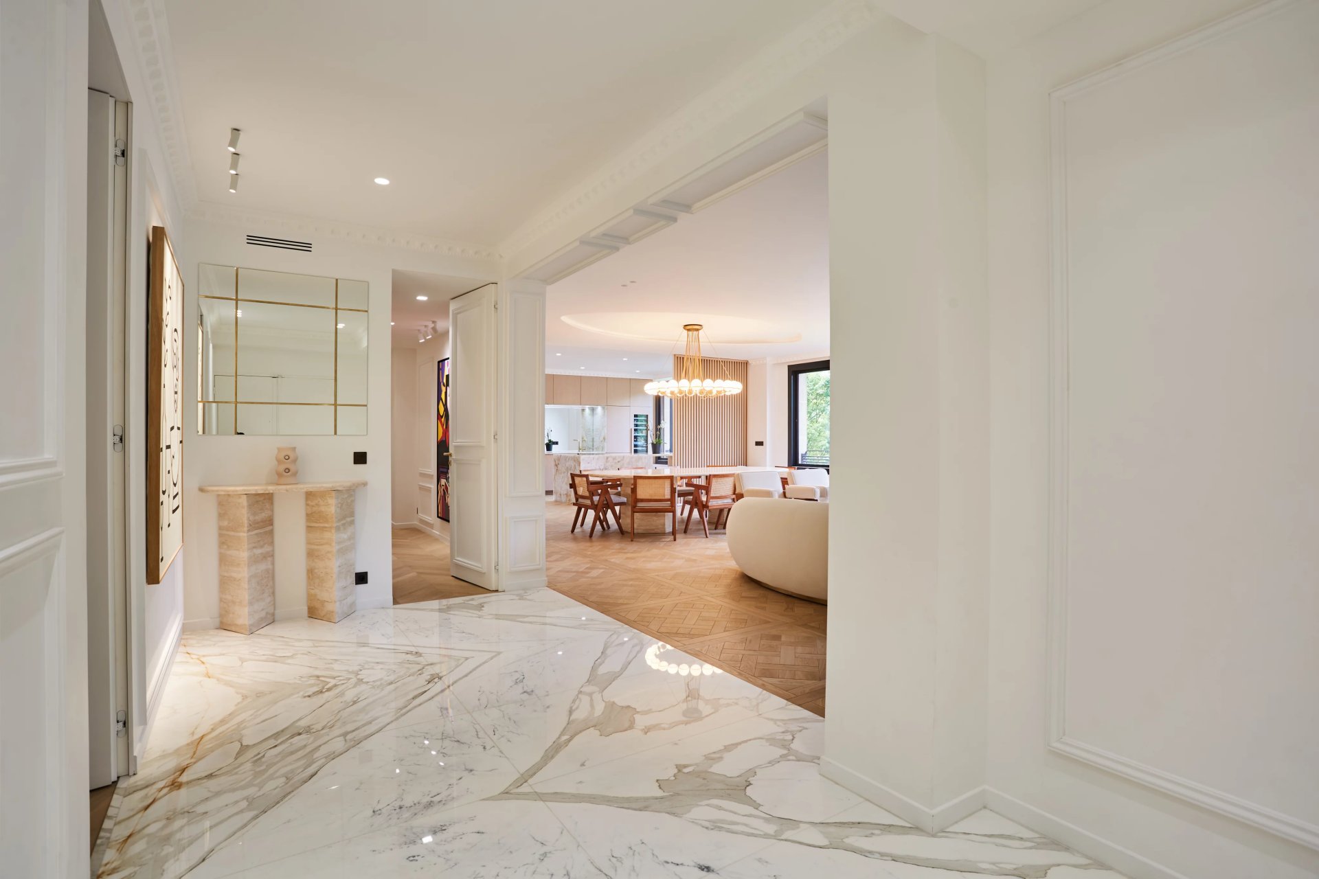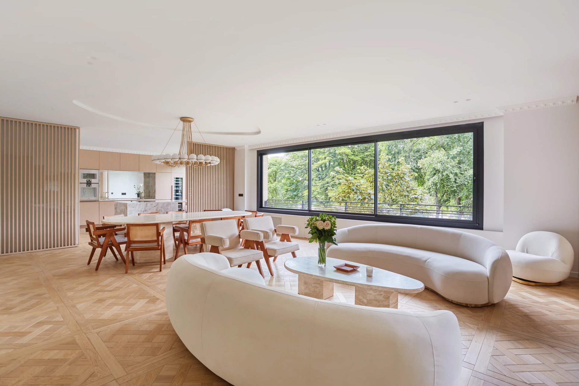 Prestigious Avenue Foch. This exceptional dual-aspect apartment on the 2nd floor of a luxurious mid 20th century building with a lift offers 207 sqm of meticulously renovated living space. Air-conditioned, it includes an entrance hall, a magnificent 90 sqm living/reception room, a semi open-plan kitchen, a master suite with a bathroom and dressing room, three further bedrooms and two shower rooms.