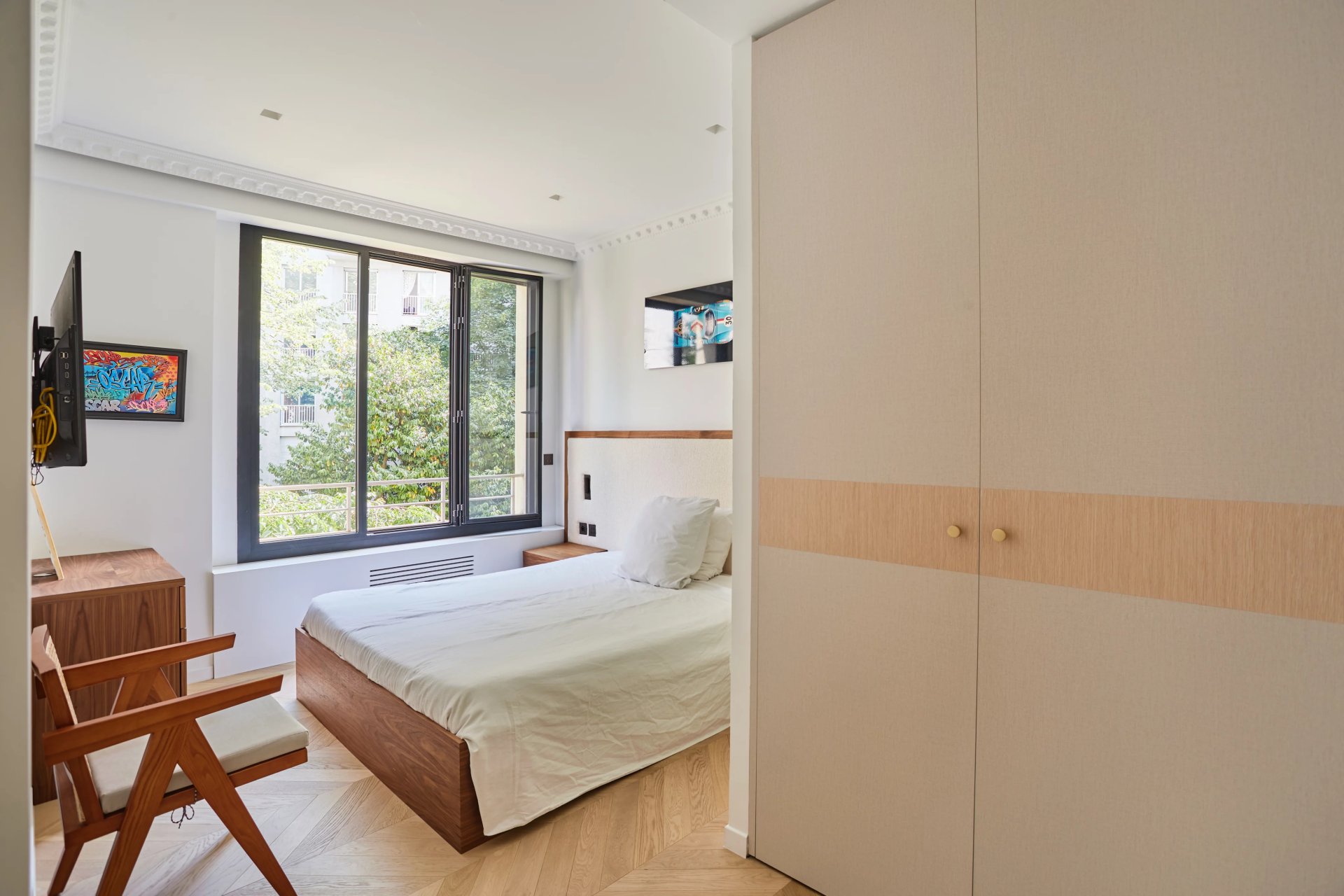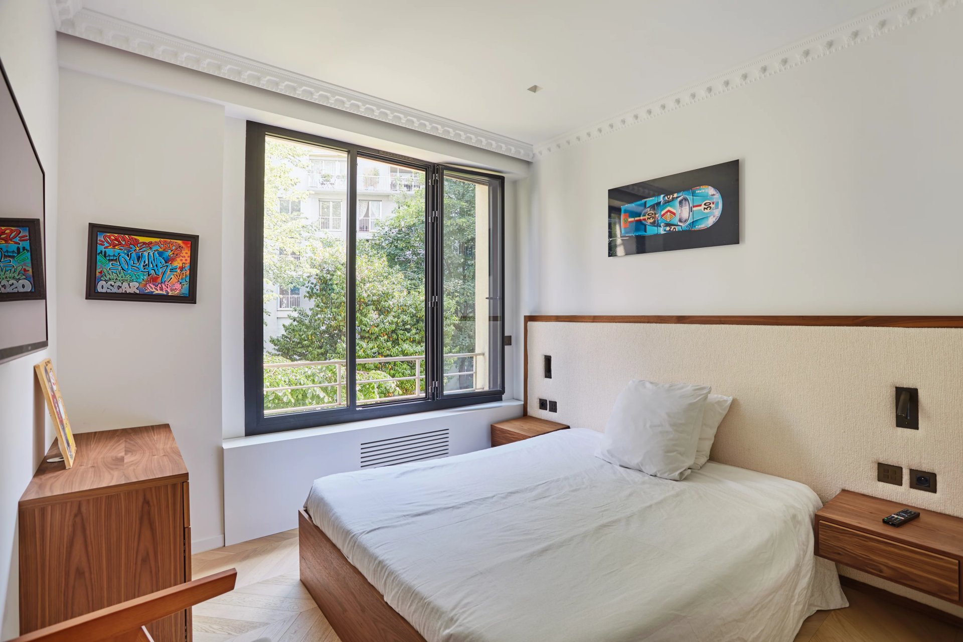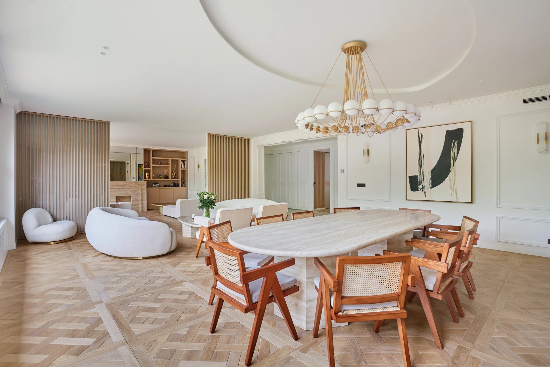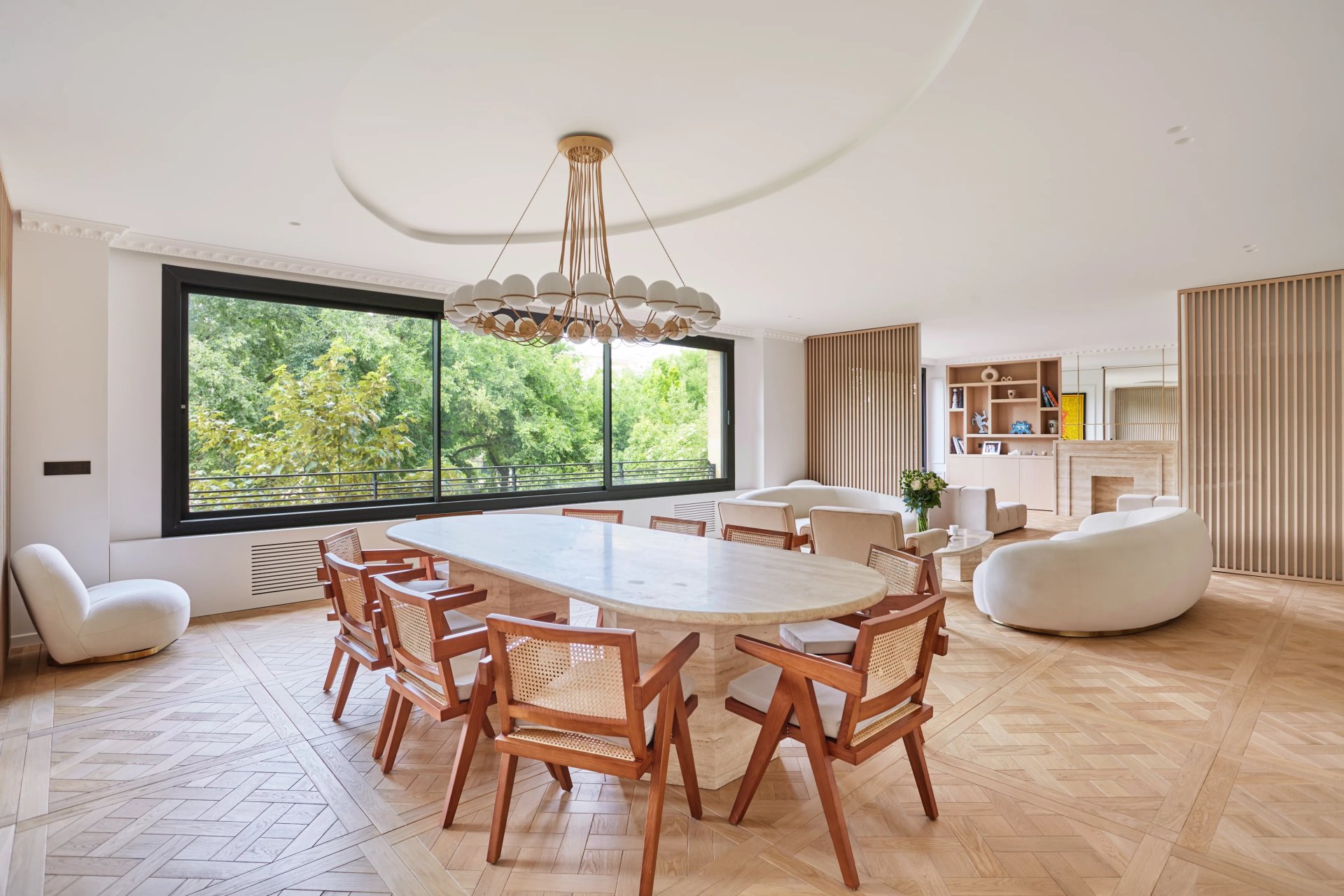 Prestigious Avenue Foch. This exceptional dual-aspect apartment on the 2nd floor of a luxurious mid 20th century building with a lift offers 207 sqm of meticulously renovated living space. Air-conditioned, it includes an entrance hall, a magnificent 90 sqm living/reception room, a semi open-plan kitchen, a master suite with a bathroom and dressing room, three further bedrooms and two shower rooms.