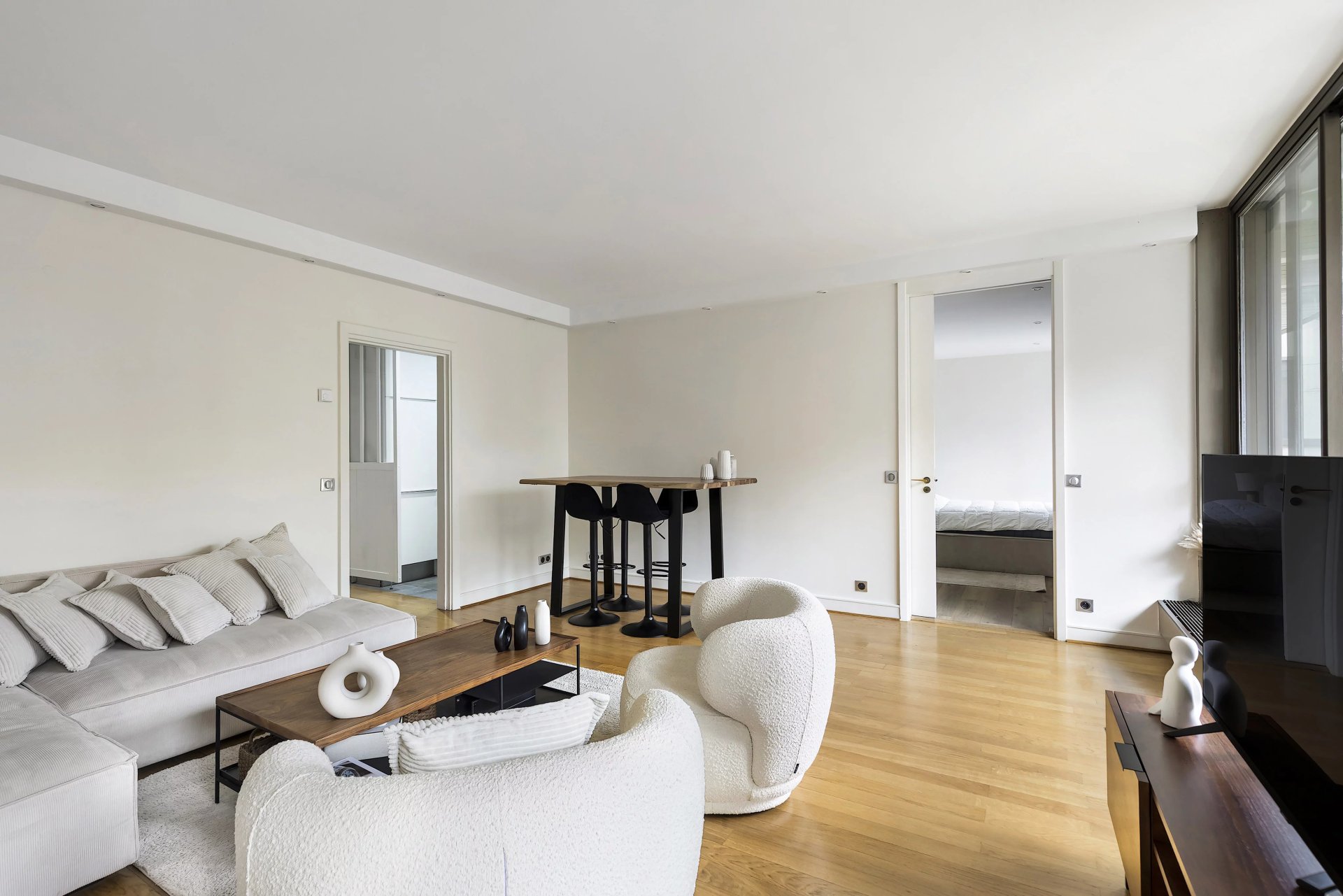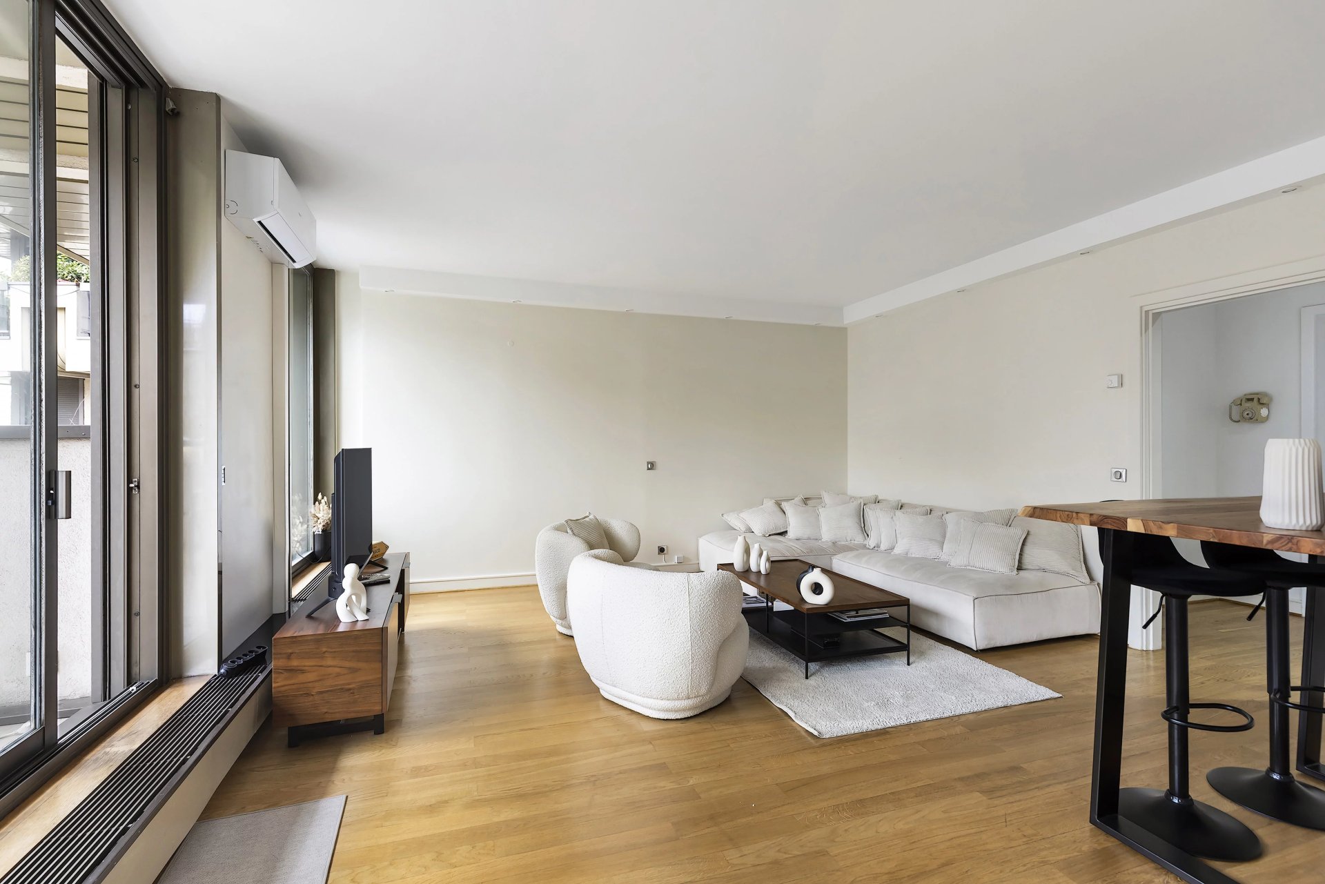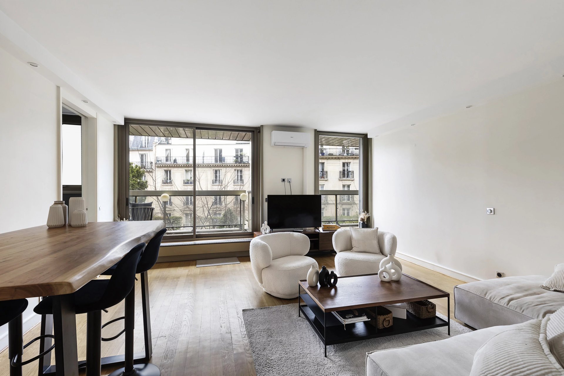 Iéna – Ideally located close to the Place du Trocadéro, the Seine and the Eiffel Tower, this charming pied-à-terre of approximately 77 m² enjoys a prime position. Situated in a well-maintained, secure building with 24-hour concierge service, it overlooks private gardens.