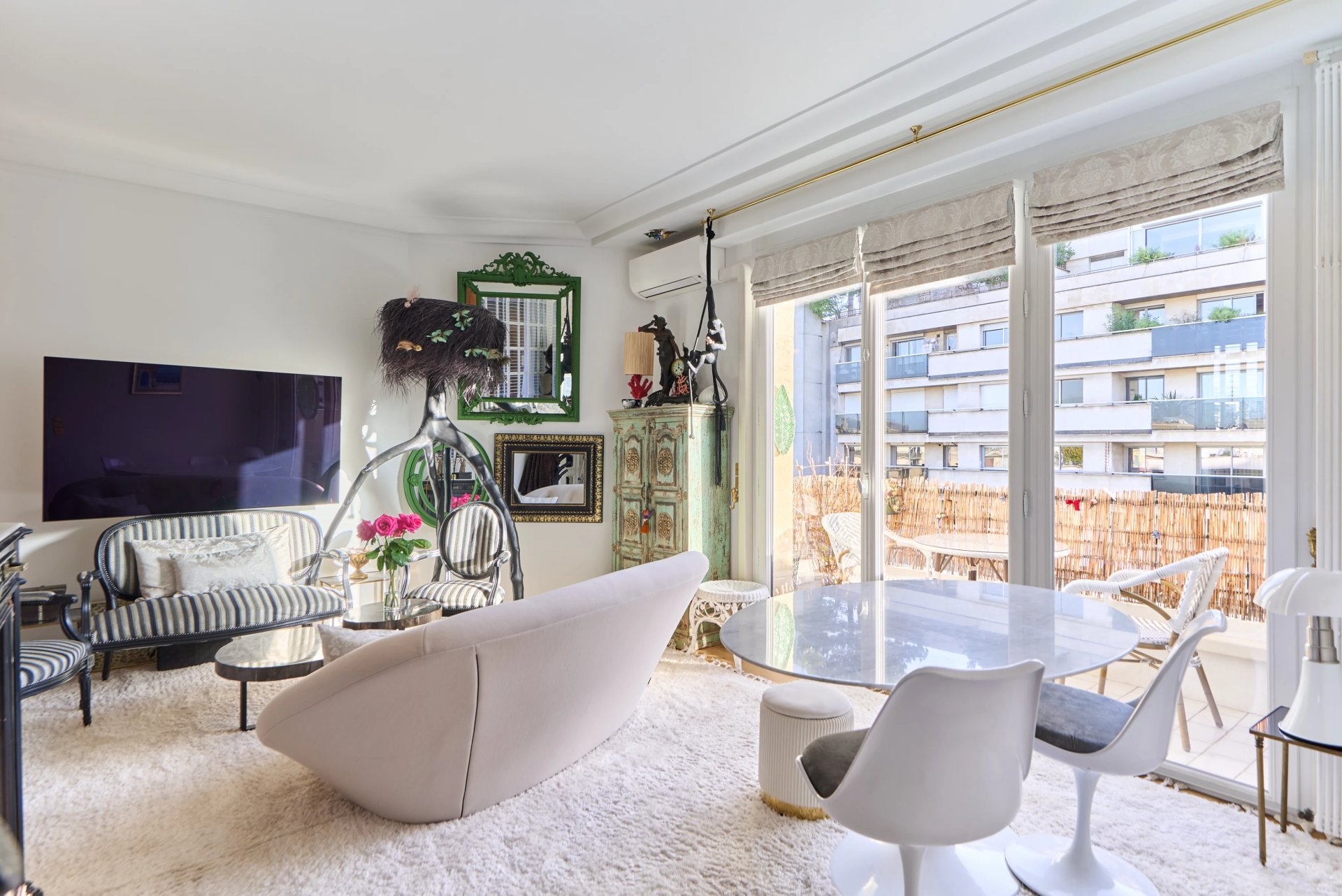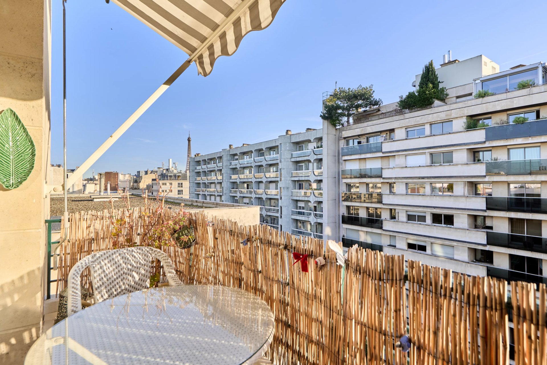 Avenue Henri Martin. This two-room apartment benefiting from a south-facing balcony enjoying a glimpse of the Eiffel Tower is on the 7th floor of a relatively building. In perfect condition, it includes a living room, a separate equipped kitchen, a bedroom and a bathroom.