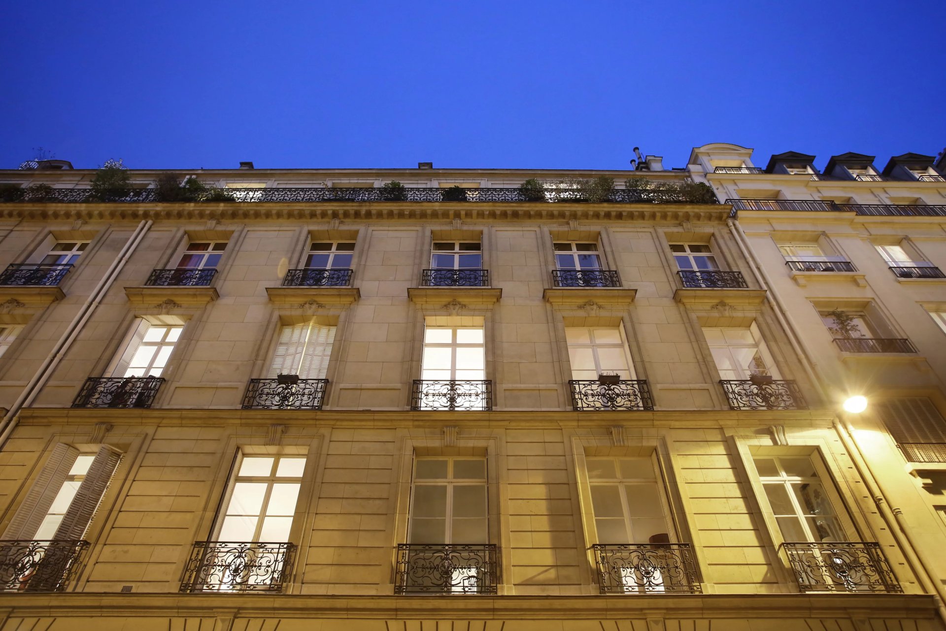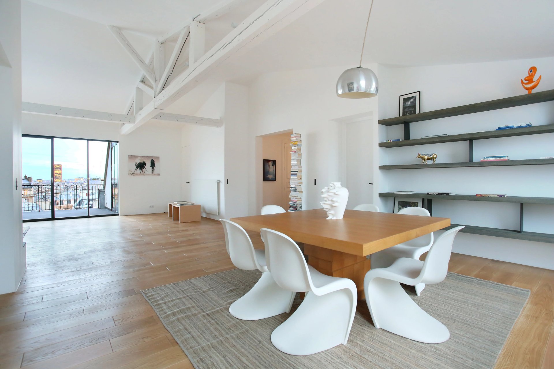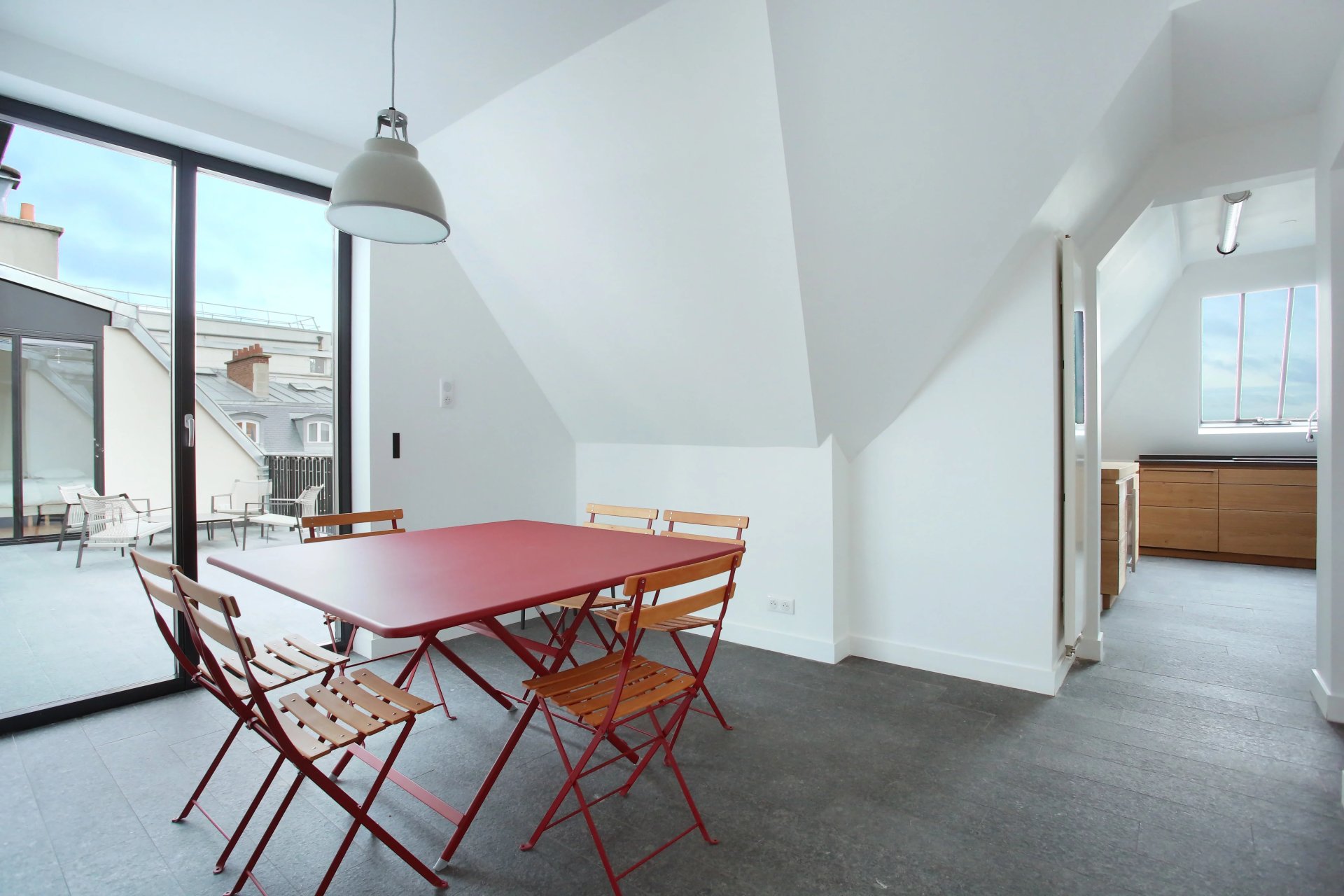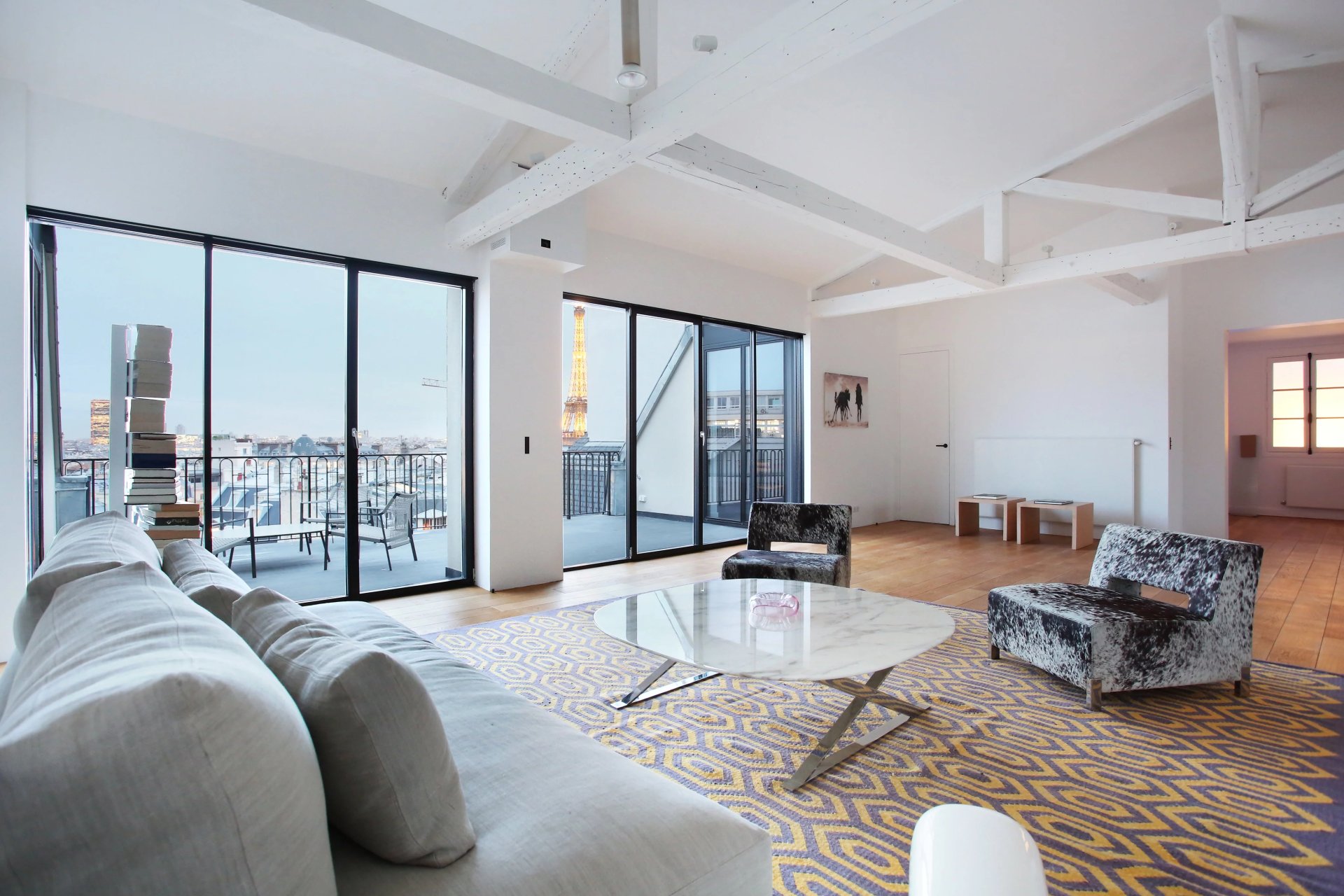 This apartment with a 25 sqm terrace enjoying an open view of the Eiffel Tower is on the top floor of a luxurious turn-of-the-century building located a stone's throw from Place des Etats Unis. It includes a floor through living/reception room opening onto the terrace, a kitchen with dining facilities, three bedrooms with fitted cupboards, two shower rooms with toilets, a bathroom with a toilet, a study, a utility room and a guest toilet. The study could create a fourth bedroom if required.