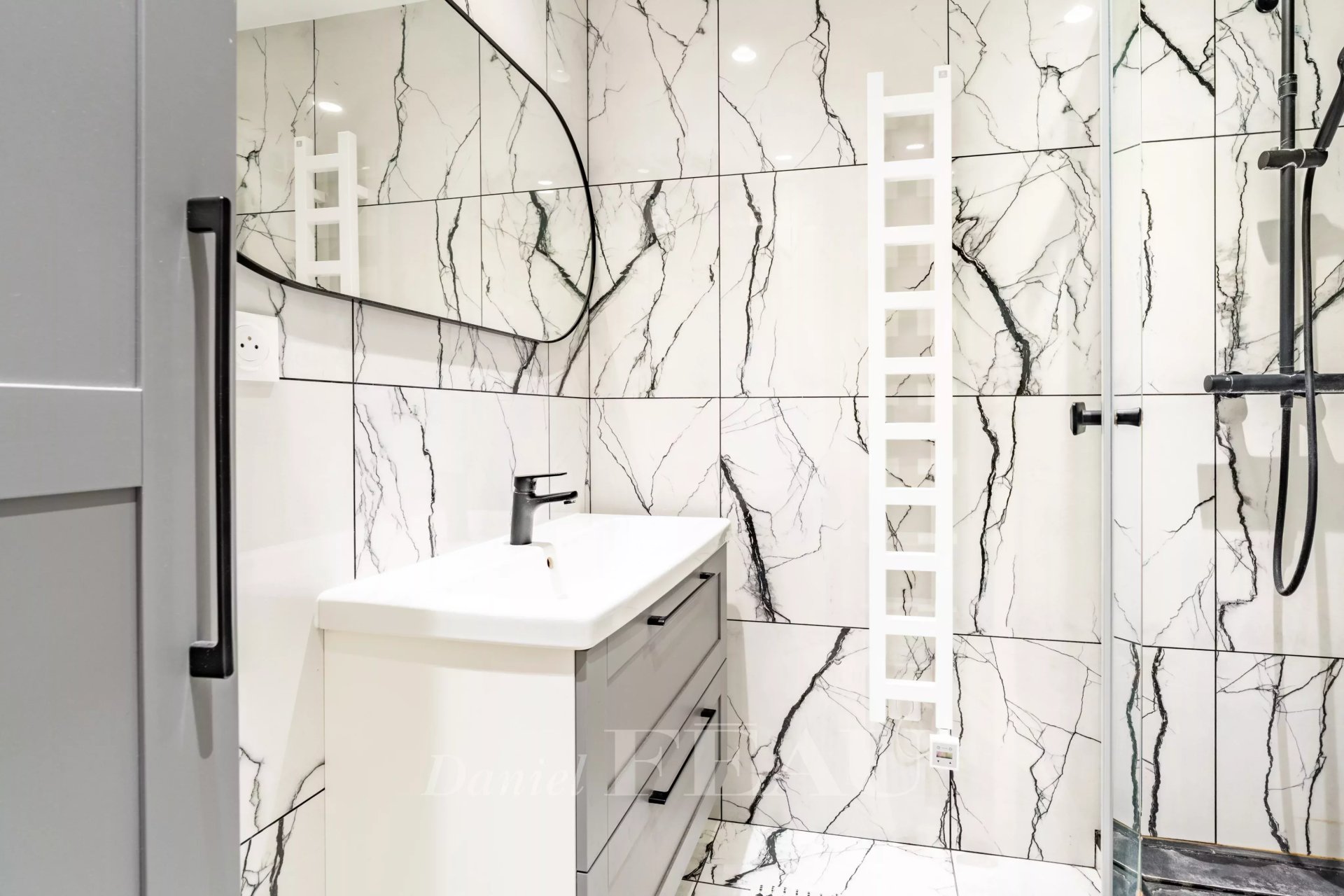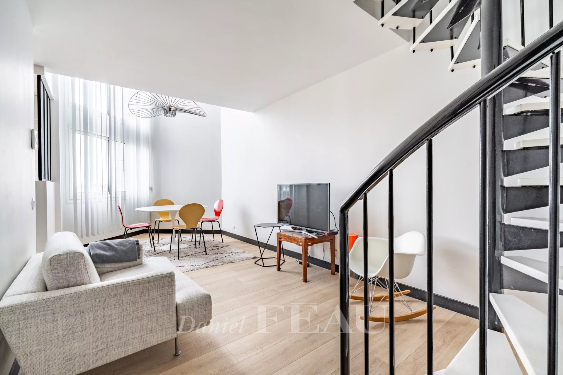 Rue Aumont Thiéville. This 53.35 sqm duplex apartment on the top two floors of a relatively recent building has been renovated throughout.