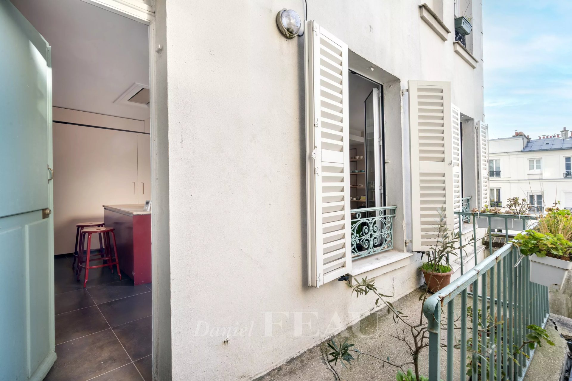 Une petite terrasse privative et verdoyante, à l'esprit confidentiel, confère à l'ensemble une atmosphère rare dans le quartier.
