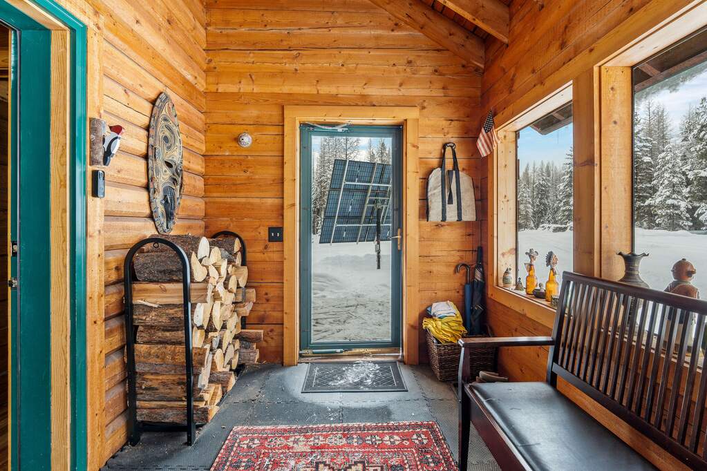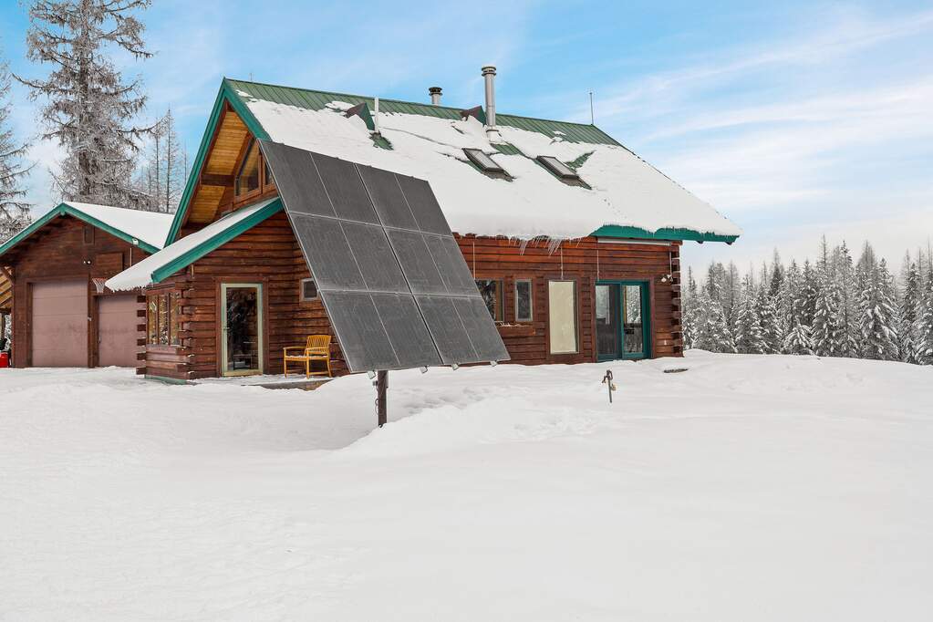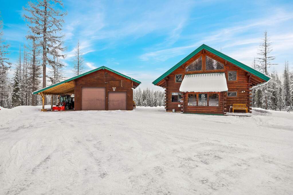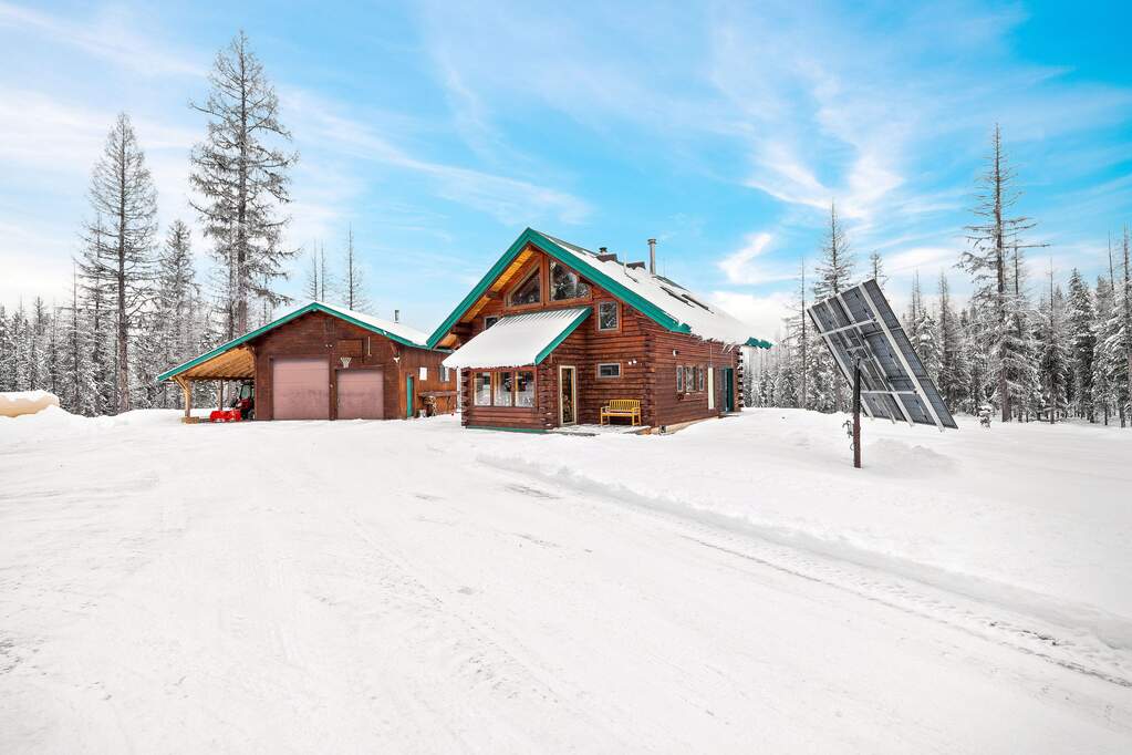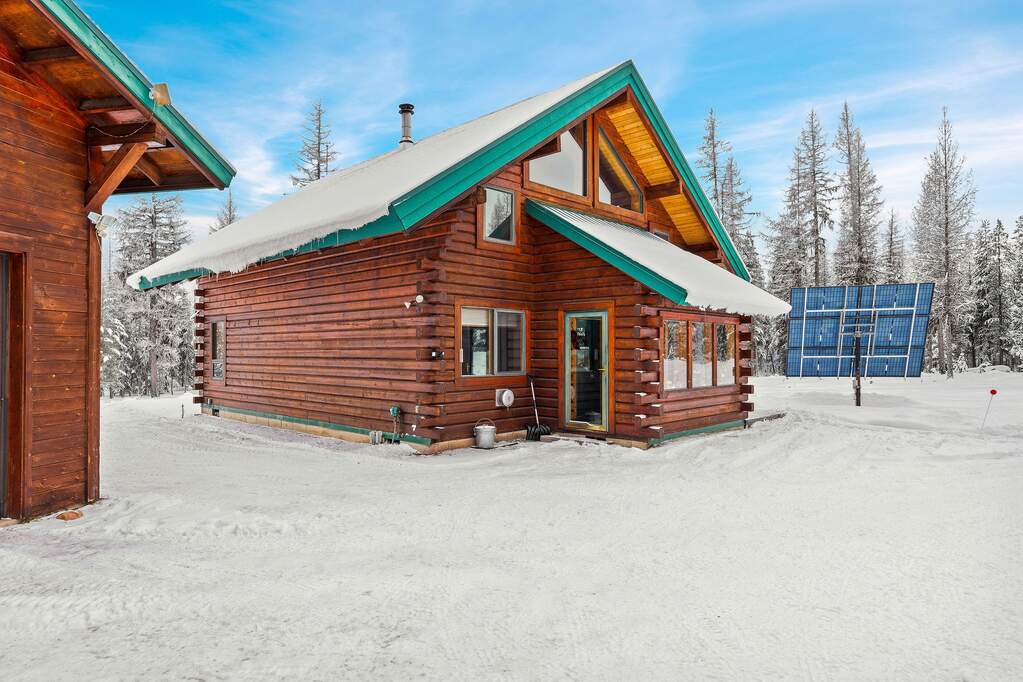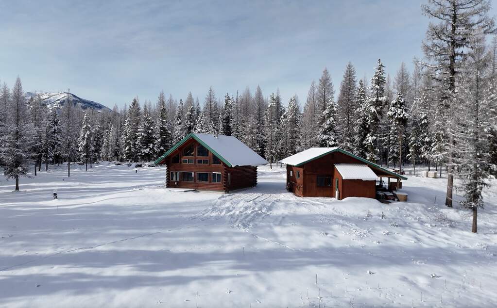 Quintessential log home with spectacular Rocky Mountain views of Glacier National Park, set in a stunning open meadow, surrounded by parked-out forest & mature trees. This private 22-acre property borders Forest Service land & sits at the end of the road for seclusion. The 2-bedroom, 2-bath, 1,379 SF craftsman-style home features an open layout with soaring vaulted ceilings, extensive pine wood finishes & wood floors throughout. Large windows capture amazing views from every angle. Enjoy the outdoors from the covered porch & deck. The home is off-grid with a new, extensive solar power system & backup generator. An oversized detached 24'x30' insulated garage has covered side parking, additional storage & a separate woodshed. Located about 4 miles from two river access points & close to the Canadian border. An adjacent 20-acres with a home is also available (MLS #30063405) for expanded opportunities. Incredible recreation awaits in the wild wilderness beauty of the North Fork Valley.