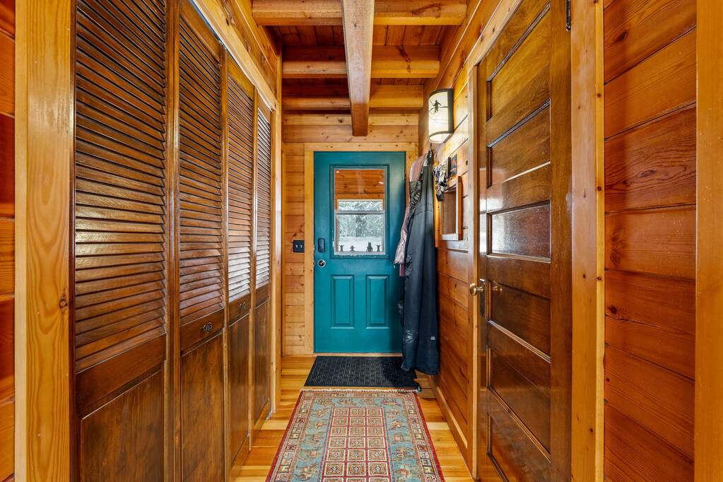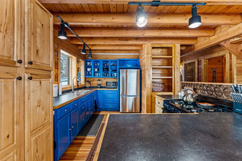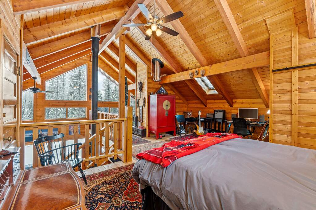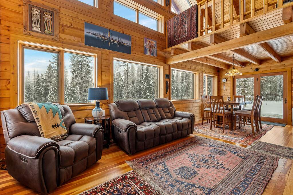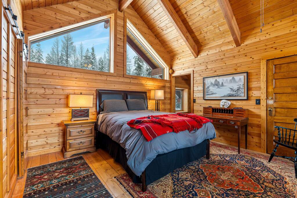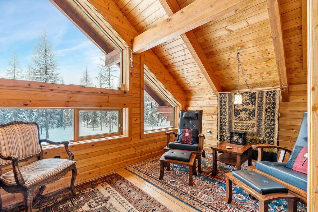 Quintessential log home with spectacular Rocky Mountain views of Glacier National Park, set in a stunning open meadow, surrounded by parked-out forest & mature trees. This private 22-acre property borders Forest Service land & sits at the end of the road for seclusion. The 2-bedroom, 2-bath, 1,379 SF craftsman-style home features an open layout with soaring vaulted ceilings, extensive pine wood finishes & wood floors throughout. Large windows capture amazing views from every angle. Enjoy the outdoors from the covered porch & deck. The home is off-grid with a new, extensive solar power system & backup generator. An oversized detached 24'x30' insulated garage has covered side parking, additional storage & a separate woodshed. Located about 4 miles from two river access points & close to the Canadian border. An adjacent 20-acres with a home is also available (MLS #30063405) for expanded opportunities. Incredible recreation awaits in the wild wilderness beauty of the North Fork Valley.