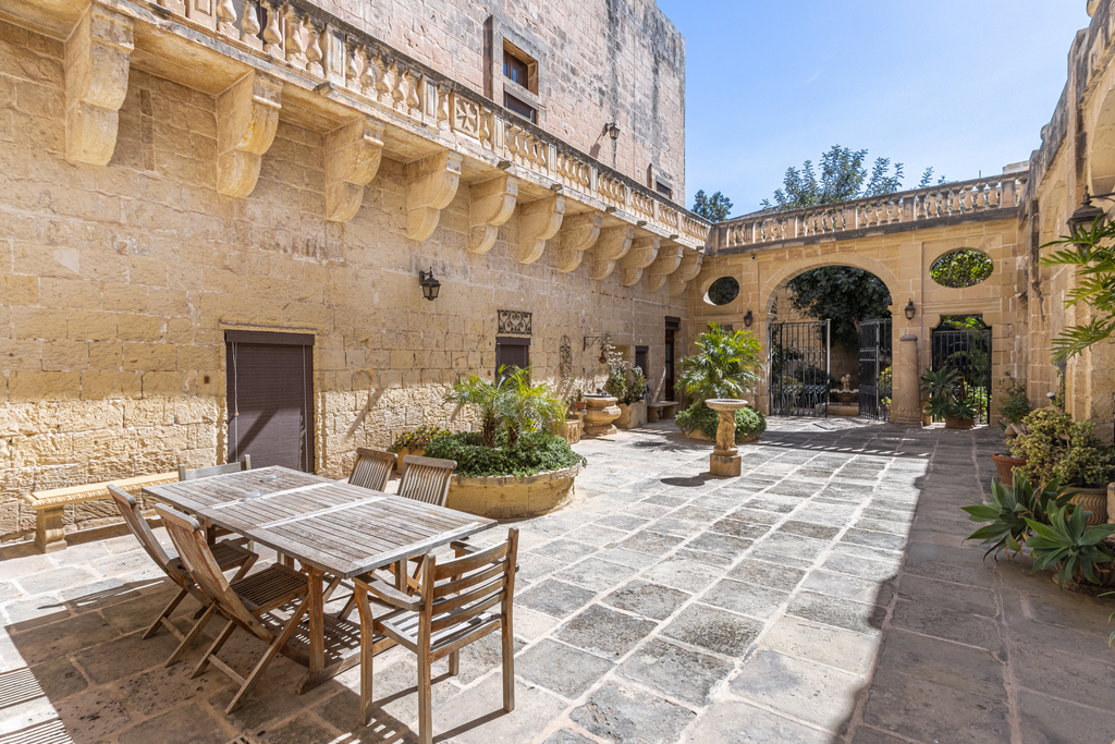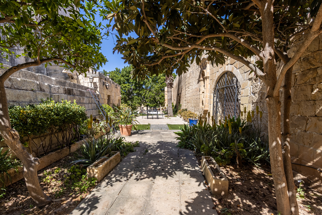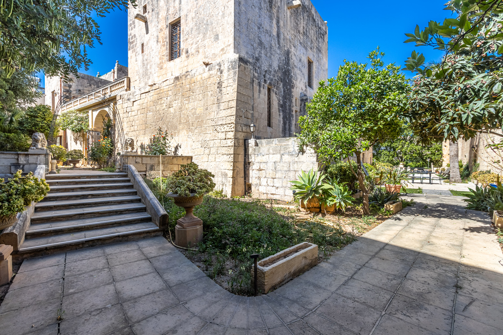 Experience the grandeur of this majestic 16th-century palazzo, a historic gem surrounded by high walls and nestled within 4,000 square meters of lush gardens. Built in 1589, during Malta's era under the Knights of the Order of St. John of Jerusalem, this palatial residence is steeped in history. Legend has it that this was once the country home of a knight poised to become Grand Master. A plaque, erected by the Qormi Local Council, attests to its status as one of the oldest houses in the area. Upon entering, a grand vaulted hallway welcomes you, leading to a spacious central courtyard. This courtyard is the heart of the palazzo, connecting to several stately rooms, each showcasing exquisite architectural details. The upper floor, featuring the impressive Sala Nobile, boasts a continuous open stone balcony that encircles the palace and an elaborate staircase. All main rooms have terraces that overlook the stunning courtyard and magical gardens, complete with a unique belvedere, orchards, groves, a swimming pool, and areas for entertaining. Adding to the uniqueness of this property is a baroque chapel, independent servant quarters, two large original stables, a natural spring water source, and a five-car garage. This palazzo is a treasure trove of historical and architectural features, offering a rare glimpse into Malta's storied past.
