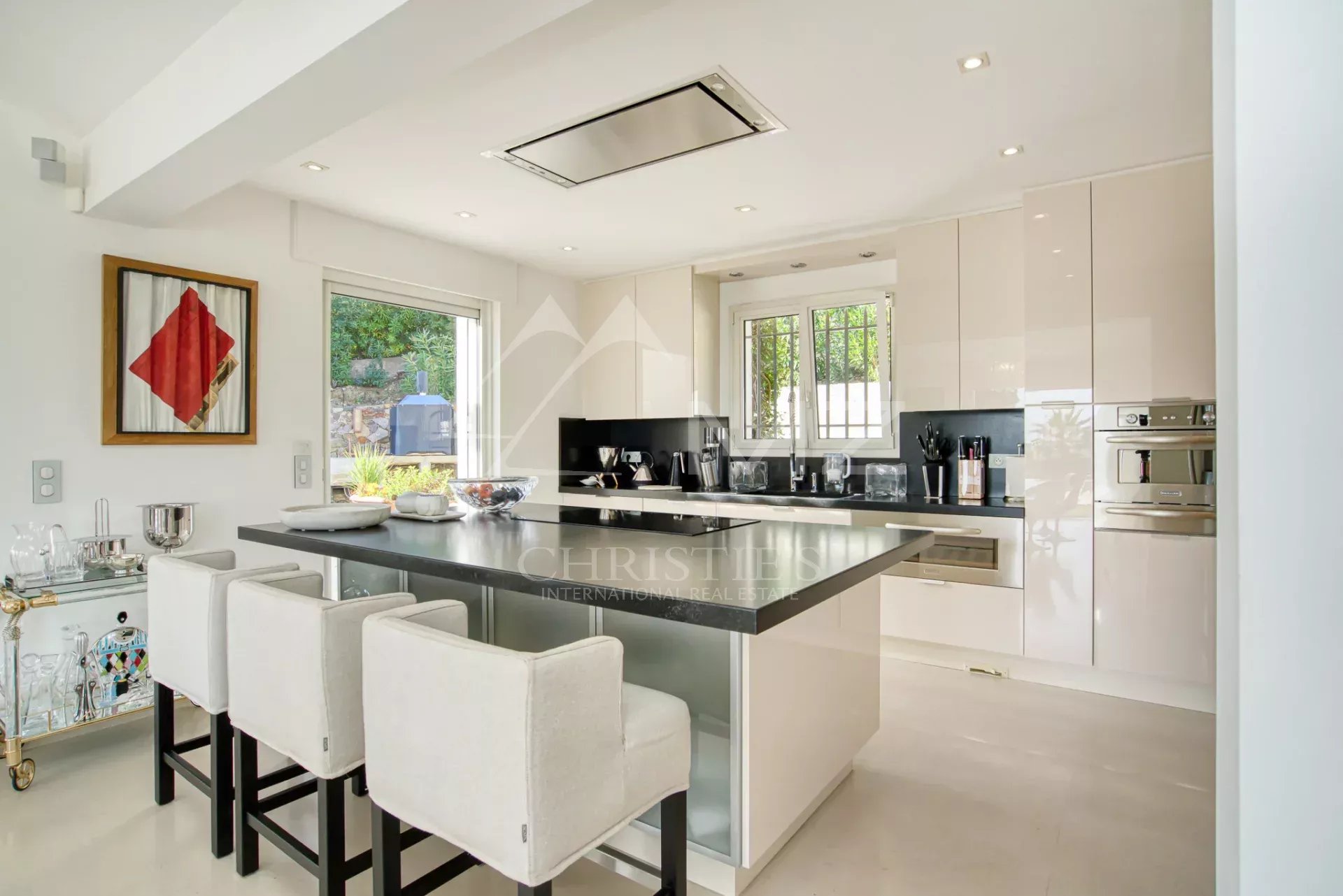 The open-plan, fully equipped, high-end kitchen (ovens, warming drawers, American refrigerator) with adjoining pantry will delight lovers of fine dining and elegant entertaining.