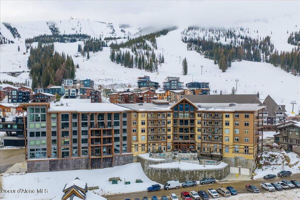 Experience elevated mountain living in this ski-in/ski-out 2-bedroom, 2-bath condo located in Schweitzer's premier luxury development, 5 Needles at White Pine Lodge. Perfectly positioned in the heart of Schweitzer Village, this residence offers immediate access to lifts, dining, and apres-ski-all just outside your door. Designed with refined mountain style, the condo features expansive windows that frame stunning views of Lake Pend Oreille, the Cabinet Mountains, and the surrounding alpine landscape. The open-concept living space is anchored by a sleek, CO2-emission-free vapor fireplace, creating a warm and inviting atmosphere after a day on the slopes. The chef's kitchen showcases high-end finishes and premium appliances, including custom cabinet-paneled refrigeration, dishwasher, and a Fisher & Paykel induction range. Both bedrooms are generously sized, with the primary bedroom offering a private en-suite bathroom. Ownership at 5 Needles includes access to first-class amenities such as spa pools, a fitness center, owner's lounge, private underground parking, and dedicated ski lockers. Whether you're seeking a luxury mountain getaway or a high-end investment opportunity, this exceptional condo delivers the ultimate Schweitzer lifestyle.