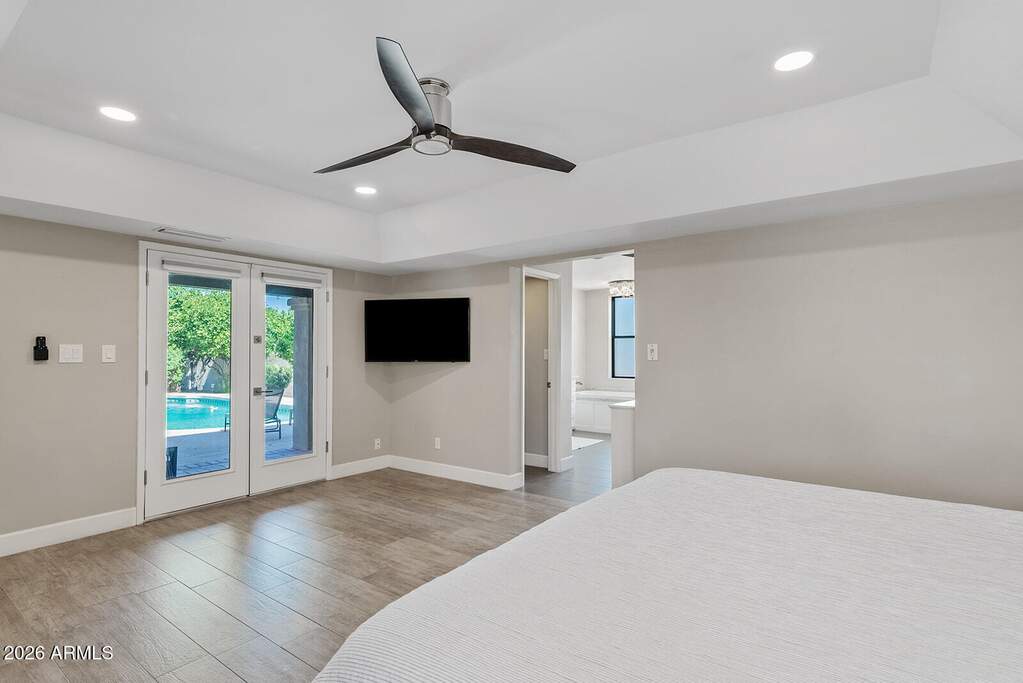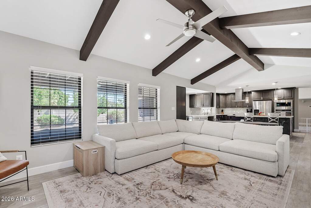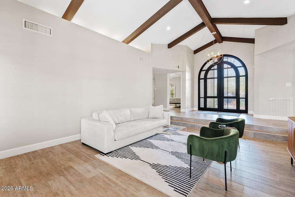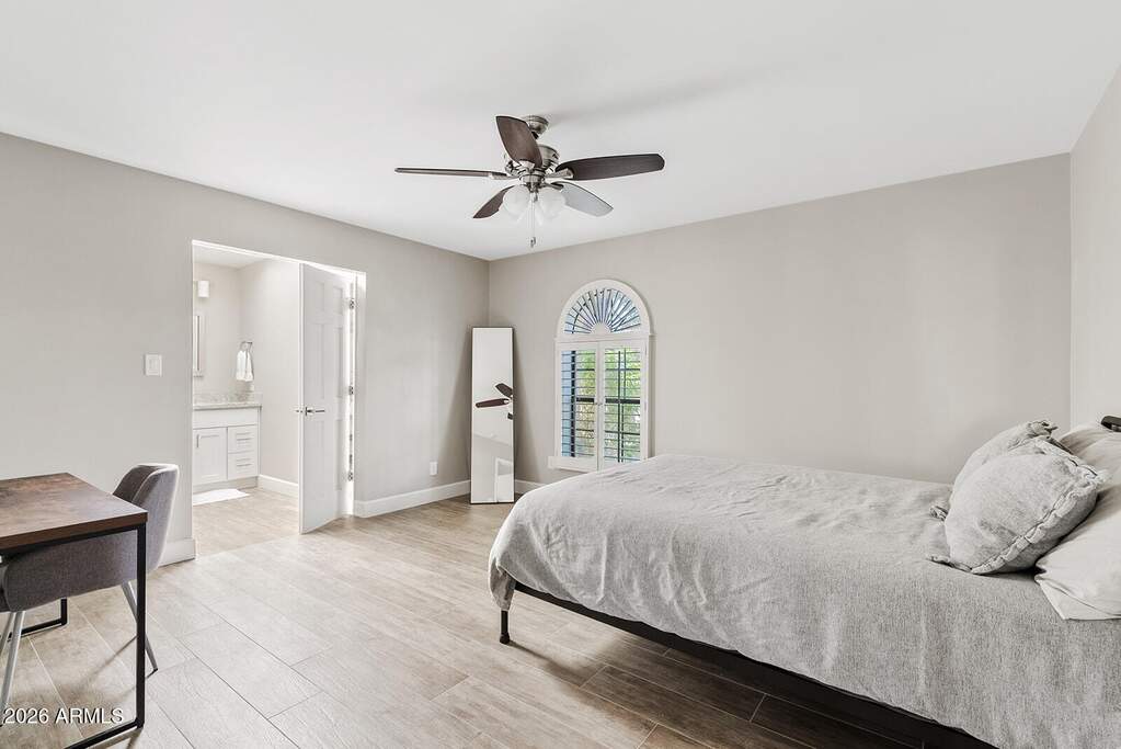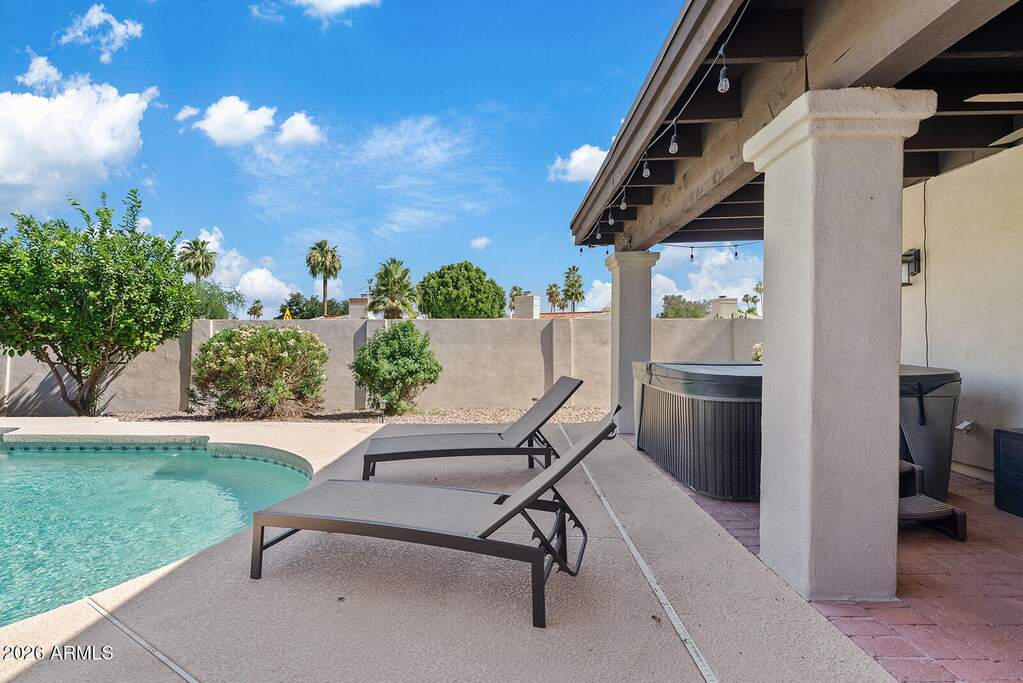 Welcome to your dream home in the heart of McCormick Ranch! This impeccably renovated single-level residence offers 4 spacious bedrooms, each with its own ensuite bathroom--a rare and luxurious find. Step through the striking wrought iron entry door into a light-filled, open-concept layout featuring soaring vaulted ceilings, elegant wood beams, and expansive living and dining areas perfect for entertaining. The gourmet kitchen flows seamlessly into the family room, framed by a wall of windows that bring the outdoors in. Set on an oversized 12,000+ sq ft lot, the beautifully landscaped backyard is your private oasis--complete with a sparkling pool, relaxing jacuzzi, lush grass, and generous patio space ideal for gatherings. Enjoy unmatched convenience with walkable access to premier shopping, dining, two championship golf courses, public tennis courts, and a network of parks and scenic walking/biking paths. Don't miss this rare opportunity to own a thoughtfully updated, move-in ready home in one of Scottsdale's most desirable neighborhoods.