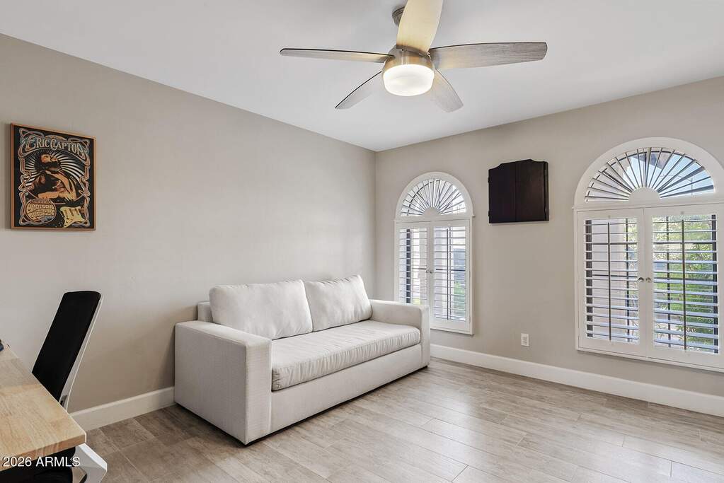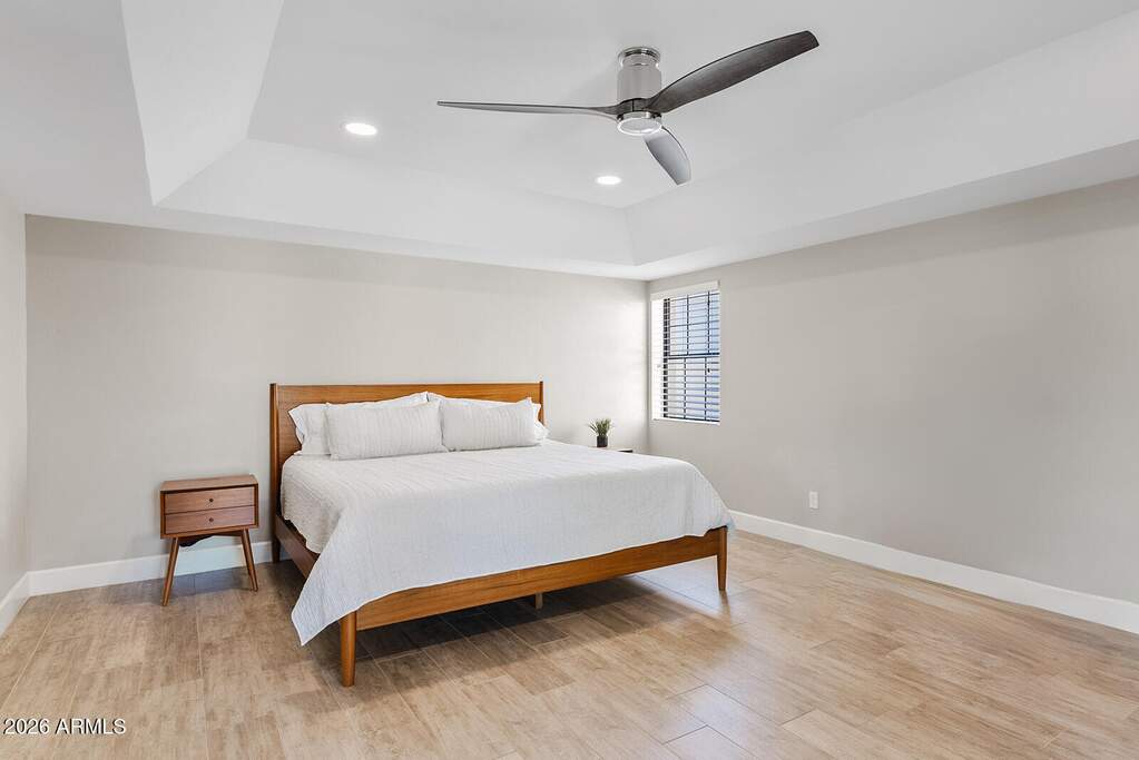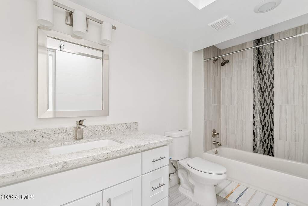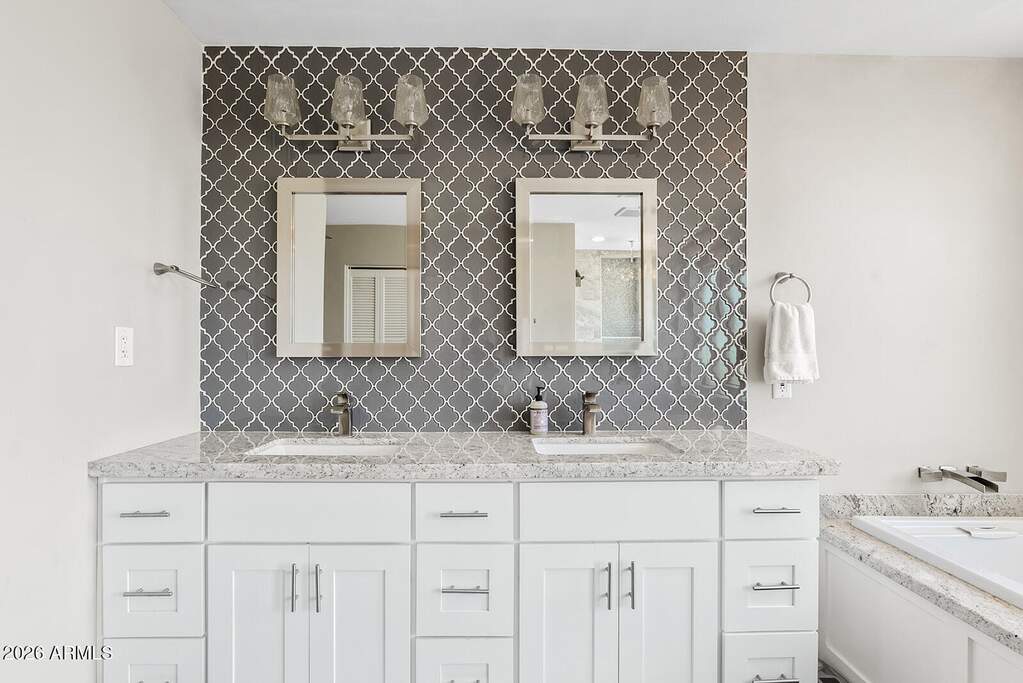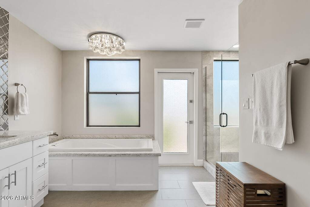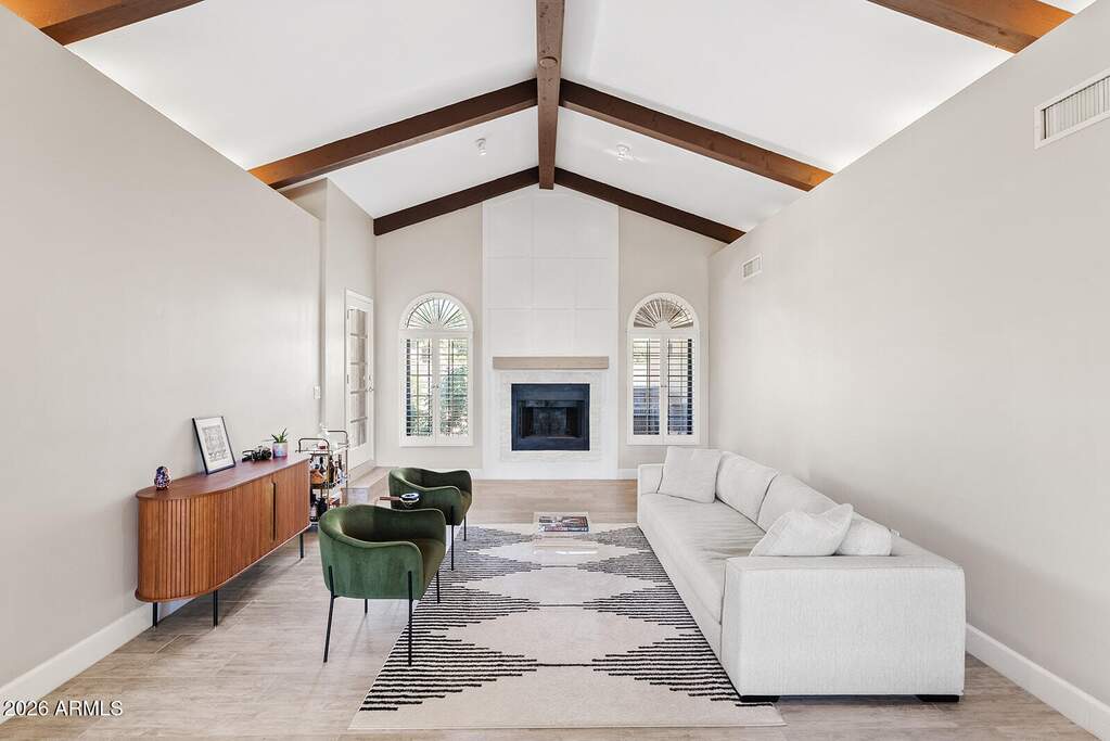 Welcome to your dream home in the heart of McCormick Ranch! This impeccably renovated single-level residence offers 4 spacious bedrooms, each with its own ensuite bathroom--a rare and luxurious find. Step through the striking wrought iron entry door into a light-filled, open-concept layout featuring soaring vaulted ceilings, elegant wood beams, and expansive living and dining areas perfect for entertaining. The gourmet kitchen flows seamlessly into the family room, framed by a wall of windows that bring the outdoors in. Set on an oversized 12,000+ sq ft lot, the beautifully landscaped backyard is your private oasis--complete with a sparkling pool, relaxing jacuzzi, lush grass, and generous patio space ideal for gatherings. Enjoy unmatched convenience with walkable access to premier shopping, dining, two championship golf courses, public tennis courts, and a network of parks and scenic walking/biking paths. Don't miss this rare opportunity to own a thoughtfully updated, move-in ready home in one of Scottsdale's most desirable neighborhoods.