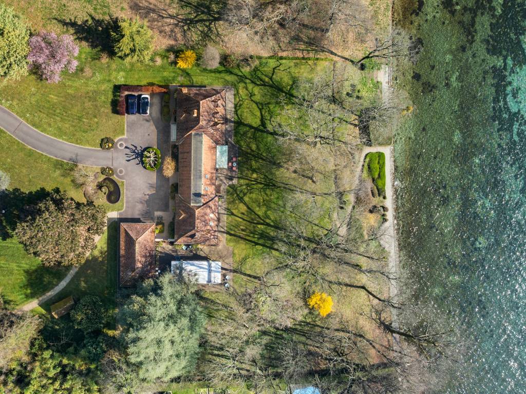 The plot is graced by century-old trees and a delicately structured garden, inviting contemplation and serenity. Direct access to the lake, accompanied by its private mooring buoy, gives this property a rare privilege, reserved for a few confidential addresses.