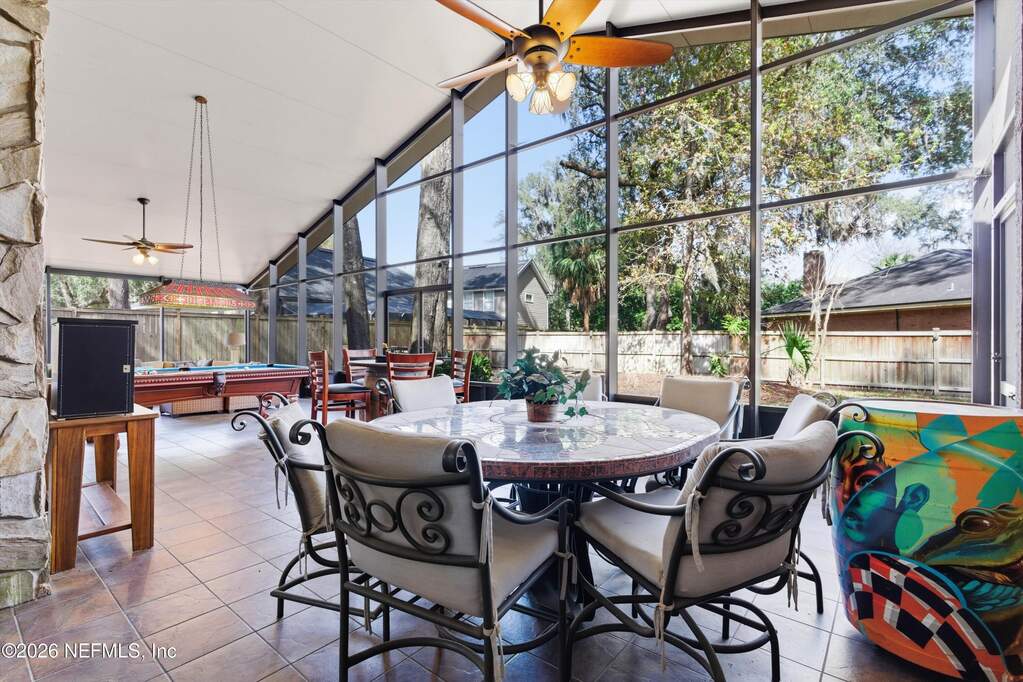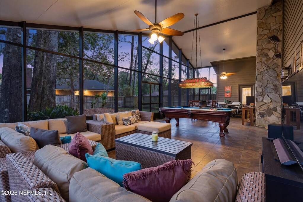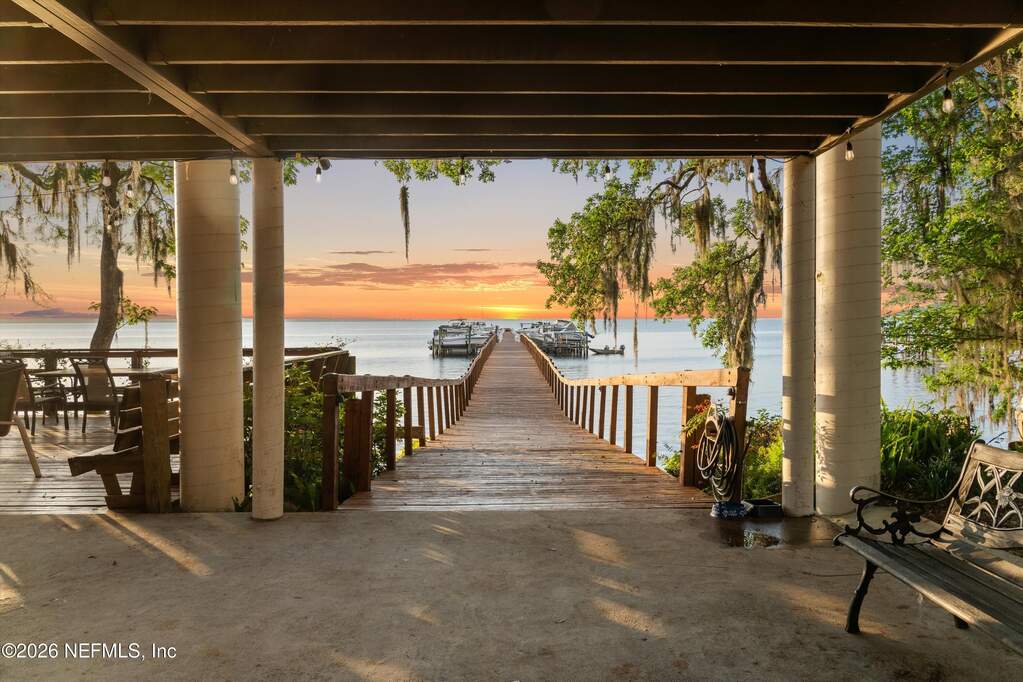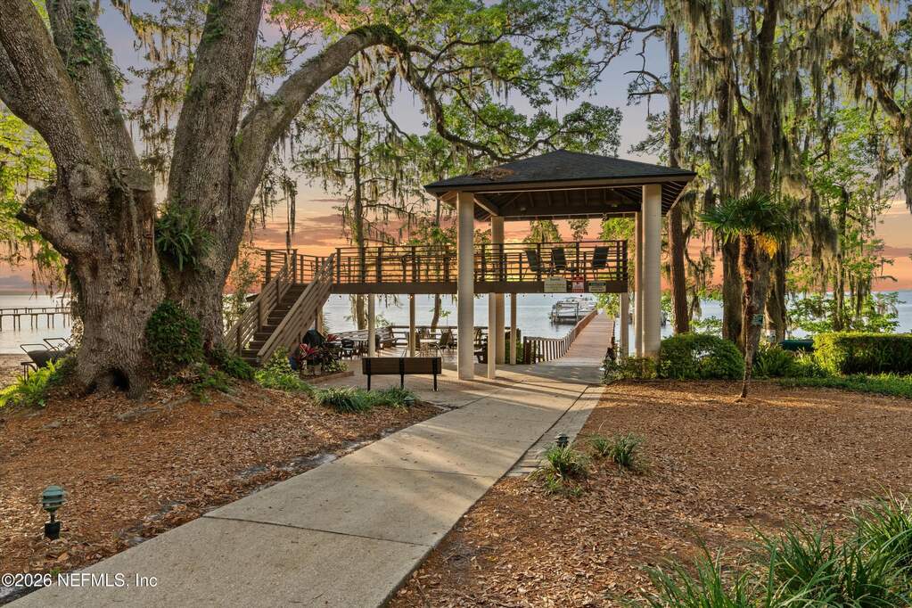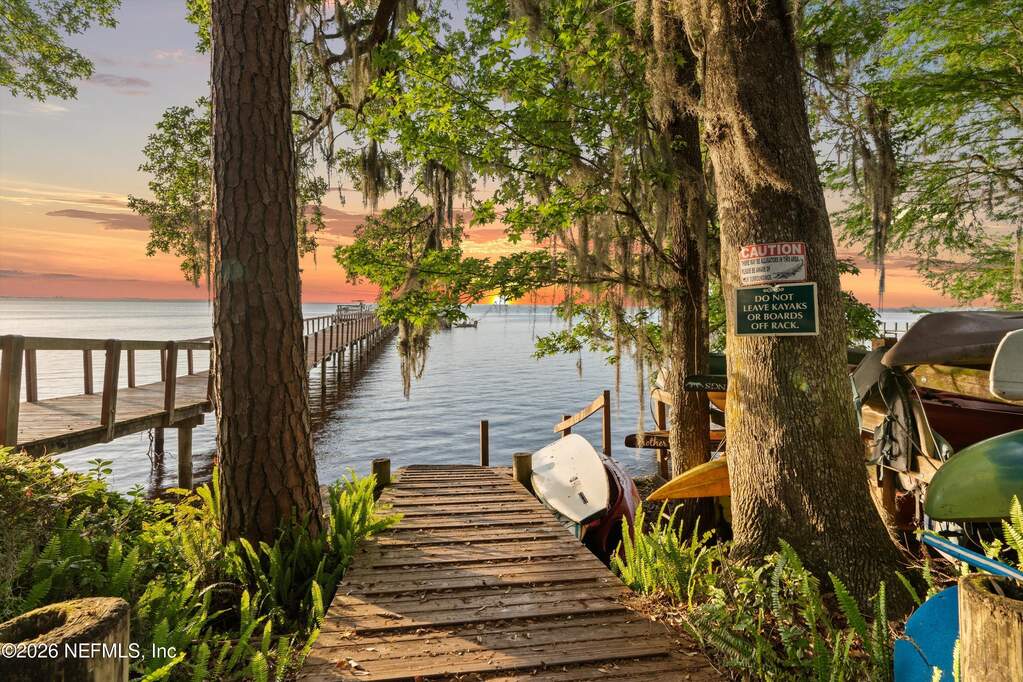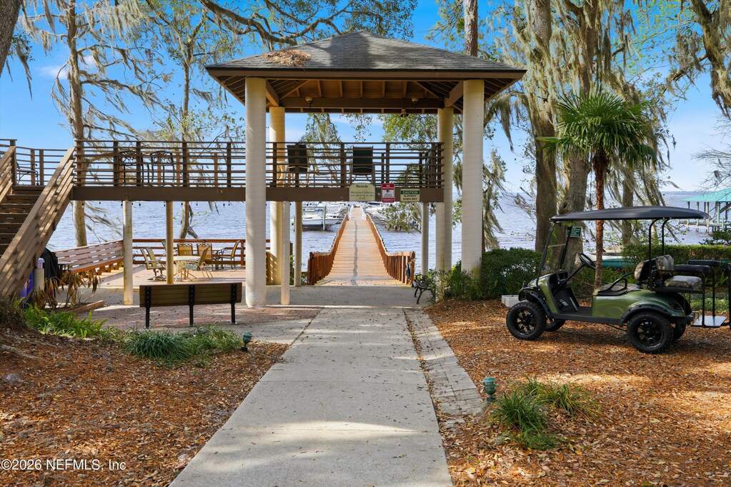 Embrace the coveted river lifestyle in Bayside! Cruise by golf cart to the community dock for unforgettable sunsets, or take your boat out from your very own boat slip along the St. Johns River for waterfront dining, fishing, or leisurely afternoons at the sandbar. Nestled on a quiet cul-de-sac street beneath a canopy of mature trees, this beautifully maintained residence creates an exceptional backdrop for riverfront living. Inside, an open layout with vaulted ceilings, all freshly painted feel light and bright. Great room transitions seamlessly to a generous screened lanai, extending your indoor-outdoor lifestyle year round. Thoughtfully designed floor plan features 3 bedrooms, 2 baths, plus a versatile 4th bedroom option or private office off the primary suite. A connected flex room between the guest bedrooms offers the perfect setting for a playroom, study, or secondary living space. Step outside to your private backyard oasis complete with a spa, fire pit, and fully fenced for added privacy. A brand NEW roof (2026) provides peace of mind and lasting value. 220v EV fast charger and a whole house water filtration system. Water included in HOA. Charming, gated community of only 60 homes offers neighborhood pool, tennis courts, playground, clubhouse, and dock access to the St. Johns River. Deep water boat slip and boat lift also included! Truly a boater's paradise. Zoned for A-rated schools and surrounded by natural beauty, this home offers a rare opportunity to experience life by river with all the perks of a waterfront home!