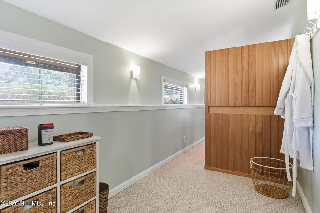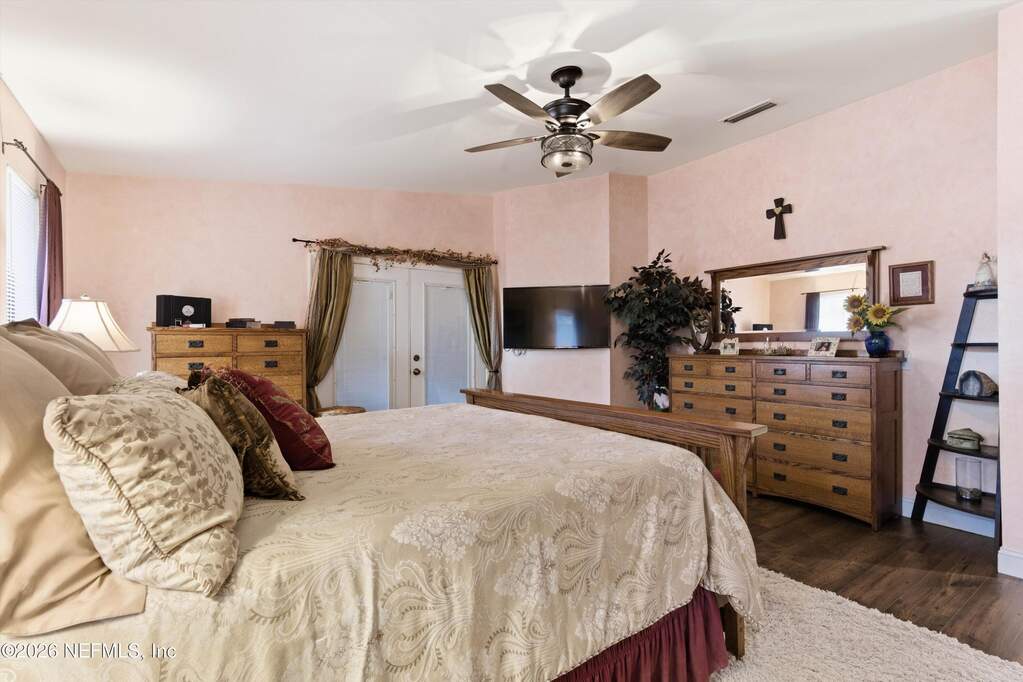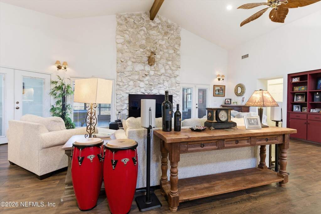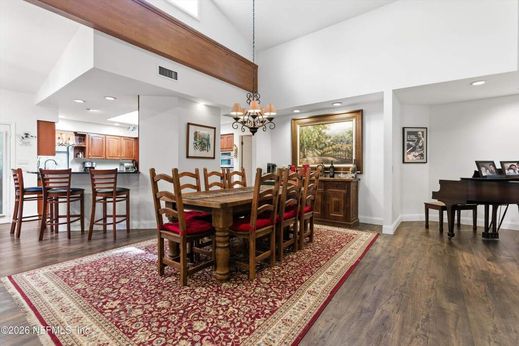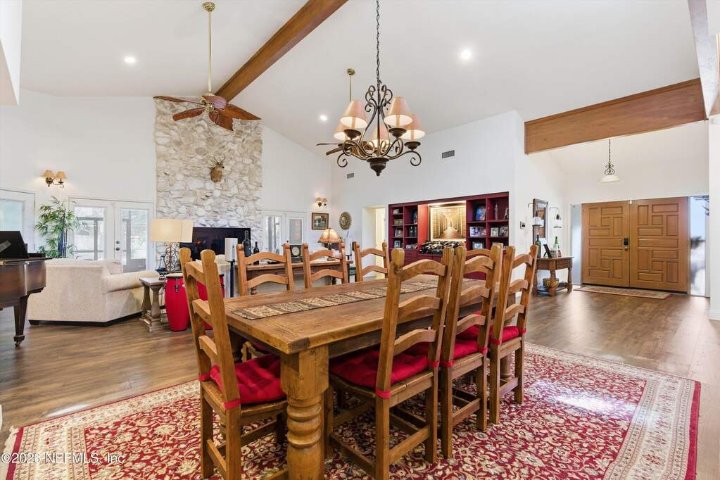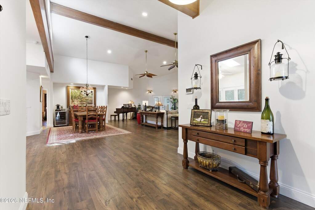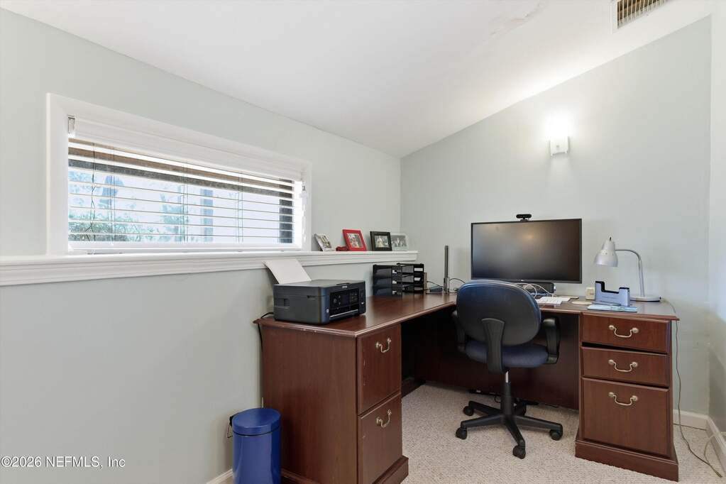 Embrace the coveted river lifestyle in Bayside! Cruise by golf cart to the community dock for unforgettable sunsets, or take your boat out from your very own boat slip along the St. Johns River for waterfront dining, fishing, or leisurely afternoons at the sandbar. Nestled on a quiet cul-de-sac street beneath a canopy of mature trees, this beautifully maintained residence creates an exceptional backdrop for riverfront living. Inside, an open layout with vaulted ceilings, all freshly painted feel light and bright. Great room transitions seamlessly to a generous screened lanai, extending your indoor-outdoor lifestyle year round. Thoughtfully designed floor plan features 3 bedrooms, 2 baths, plus a versatile 4th bedroom option or private office off the primary suite. A connected flex room between the guest bedrooms offers the perfect setting for a playroom, study, or secondary living space. Step outside to your private backyard oasis complete with a spa, fire pit, and fully fenced for added privacy. A brand NEW roof (2026) provides peace of mind and lasting value. 220v EV fast charger and a whole house water filtration system. Water included in HOA. Charming, gated community of only 60 homes offers neighborhood pool, tennis courts, playground, clubhouse, and dock access to the St. Johns River. Deep water boat slip and boat lift also included! Truly a boater's paradise. Zoned for A-rated schools and surrounded by natural beauty, this home offers a rare opportunity to experience life by river with all the perks of a waterfront home!