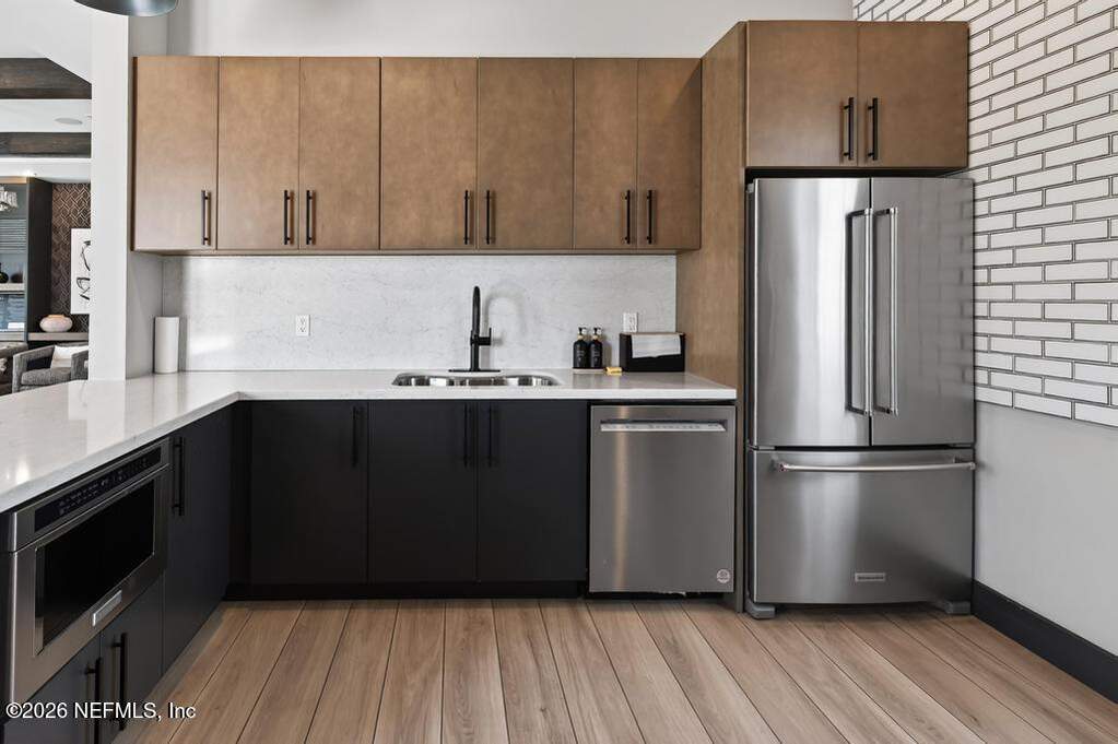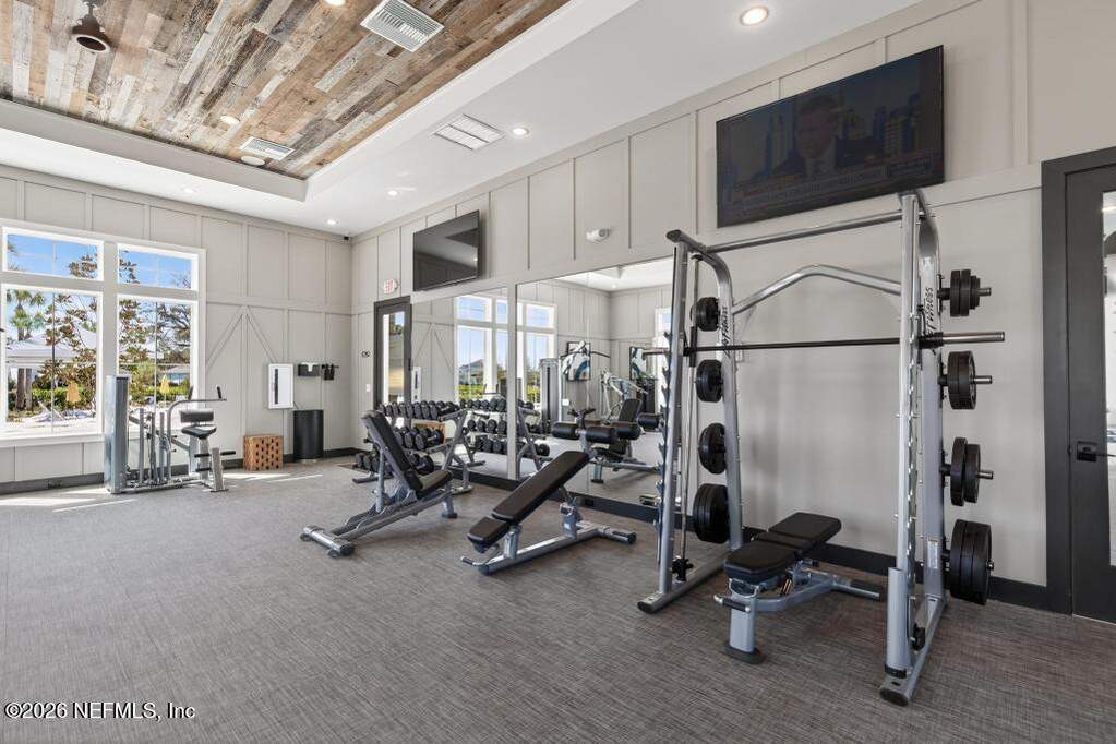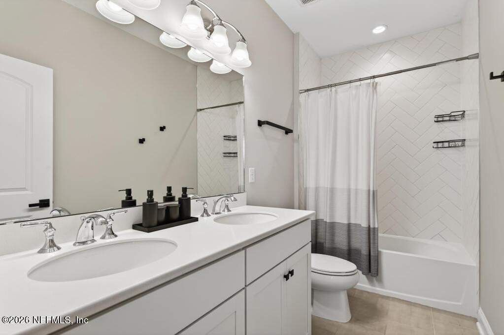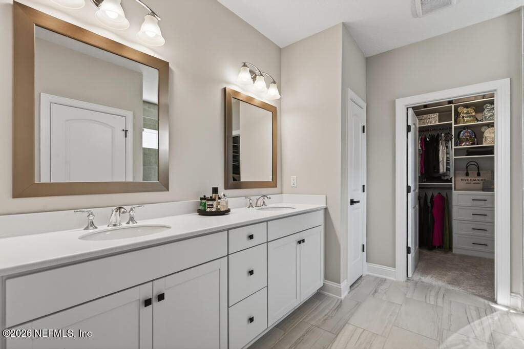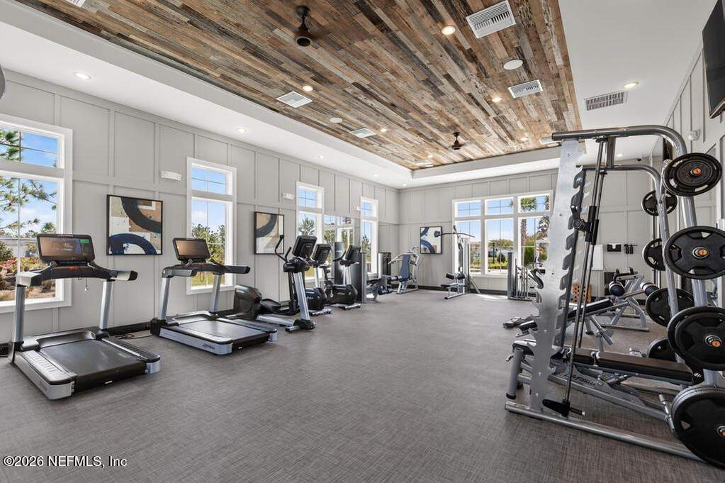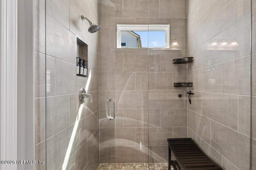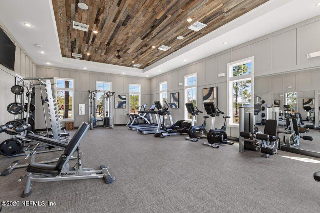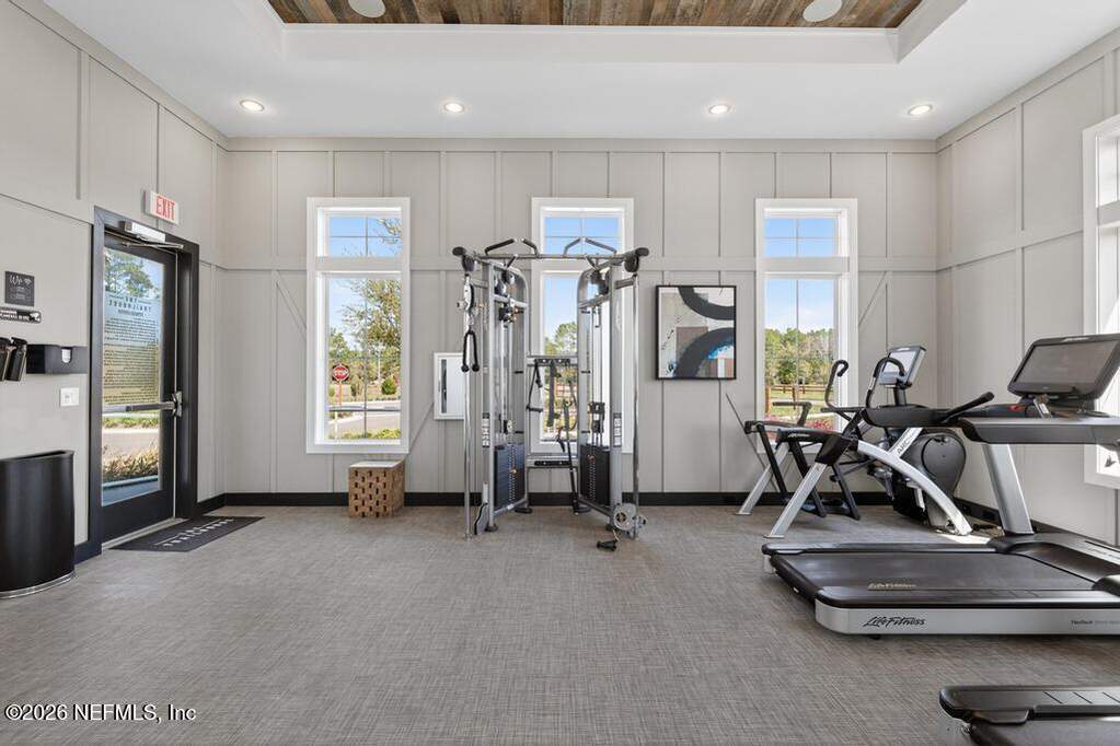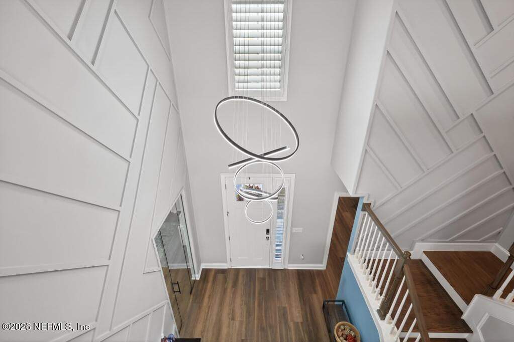 Built in 2023 by Toll Brothers in Bartram Ranch, this upgraded 2,893 sq ft home offers 4 bedrooms and 3.5 baths with refined design and luxury touches. The backyard is a showpiece with water views, custom saltwater pool and spa, built-in firepit, and expansive screened enclosure with 1,026 sq ft of sealed pavers for entertaining. Interior upgrades include LVP flooring, plantation shutters, designer lighting, wood feature walls, wainscoting, private office with frameless glass doors, and built-in closet systems. Kitchen features Whirlpool stainless appliances, gas cooktop, pull-out cabinetry, backsplash, and under/over cabinet lighting. Patio is gas-plumbed for a future outdoor kitchen. Amenities include pool, fitness center, dog park and recreation center.