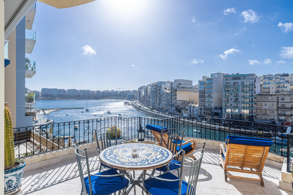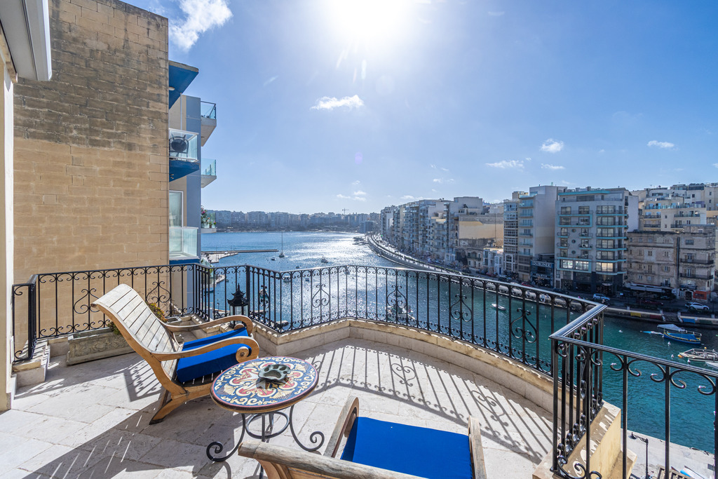 The last remaining Townhouse on quaint Spinola Bay and in walking distance to hotels, restaurants, cafes, and shops is being offered for sale. This luxurious townhouse is situated in a prime location overlooking the bay with sunshine from morning to night on three spectacular bay view terraces on separated floors. Two large master bedrooms on separate floors and the third is located off a very large living room. The opposite view from the Townhouse is looking directly at the majestic Spinola Palace.