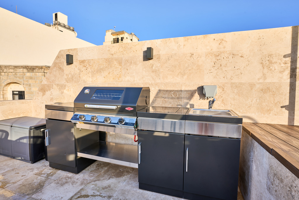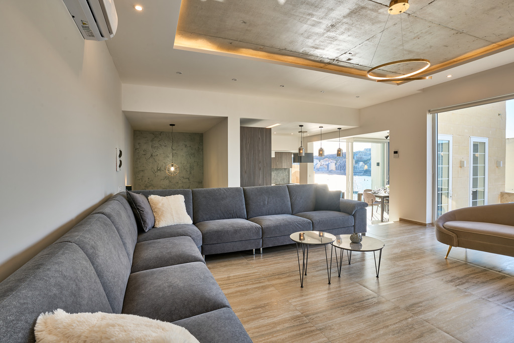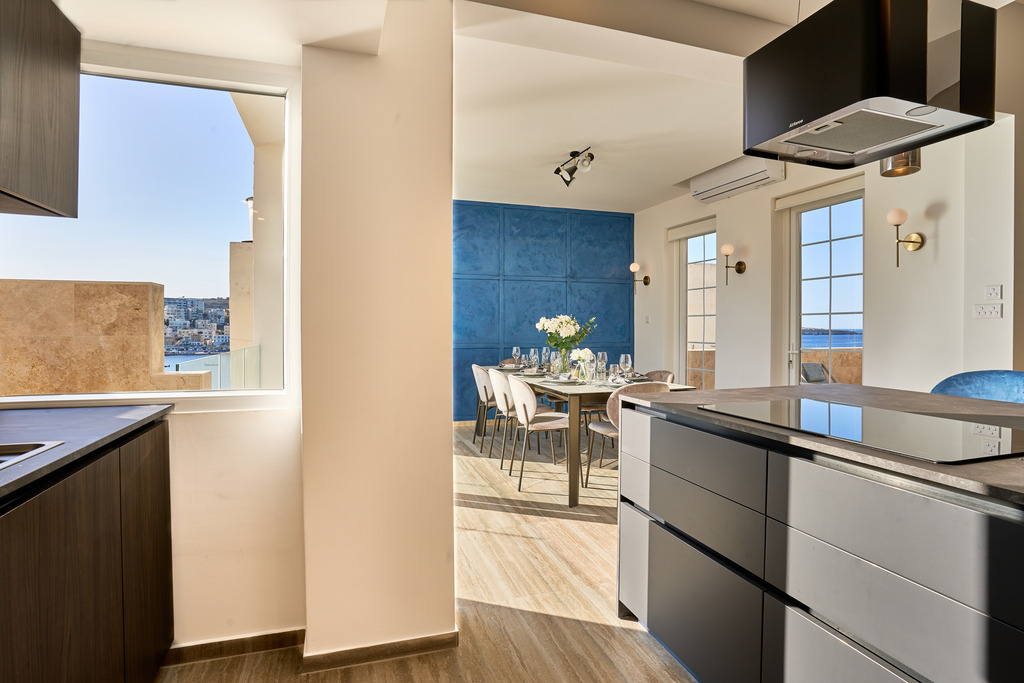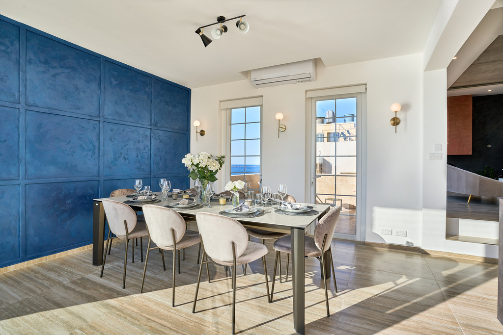 The highlight of this exceptional property is undoubtedly the rooftop level. Here, a stunning private pool and outdoor lounge area create a luxurious sanctuary ideal for enjoying Malta’s warm climate. Whether hosting summer barbecues with family and friends or simply unwinding in total privacy, this space delivers an unparalleled lifestyle experience. From the rooftop, one can admire spectacular 180-degree panoramic views stretching from Xemxija all the way to St Paul's Islands, providing a truly captivating backdrop.
