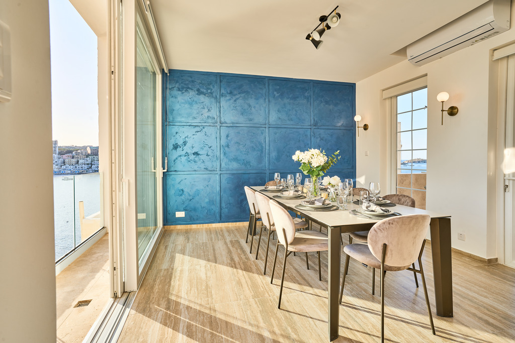 This furnished 4-bedroom townhouse is a classical residence set in a quiet and highly sought-after area of St Paul's Bay, offering refined living spaces, exceptional amenities, and breathtaking views.